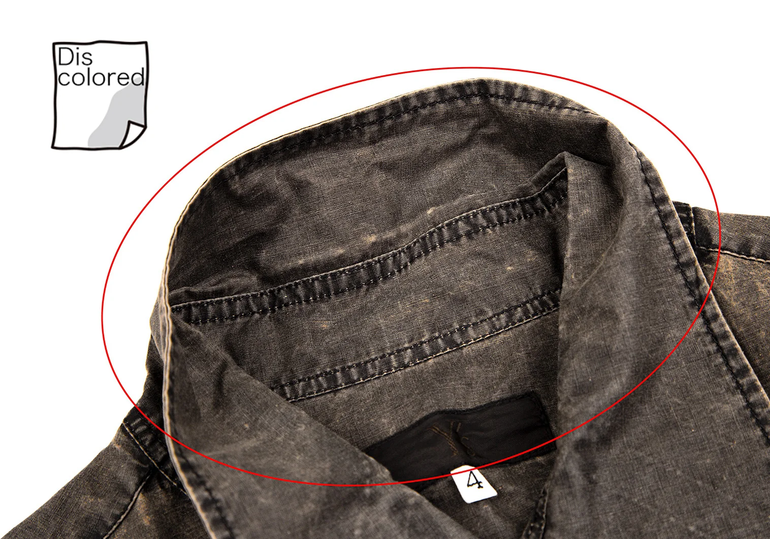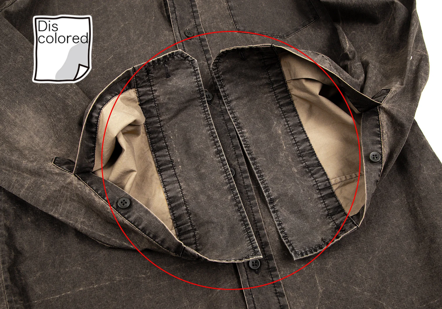 元々色あせのあるデザインですが、襟裏・袖裏に少し色あせがあります。(画像参照)。その他目立ったシミ、汚れ、ほつれ等なくいい状態です。クリーニング済み