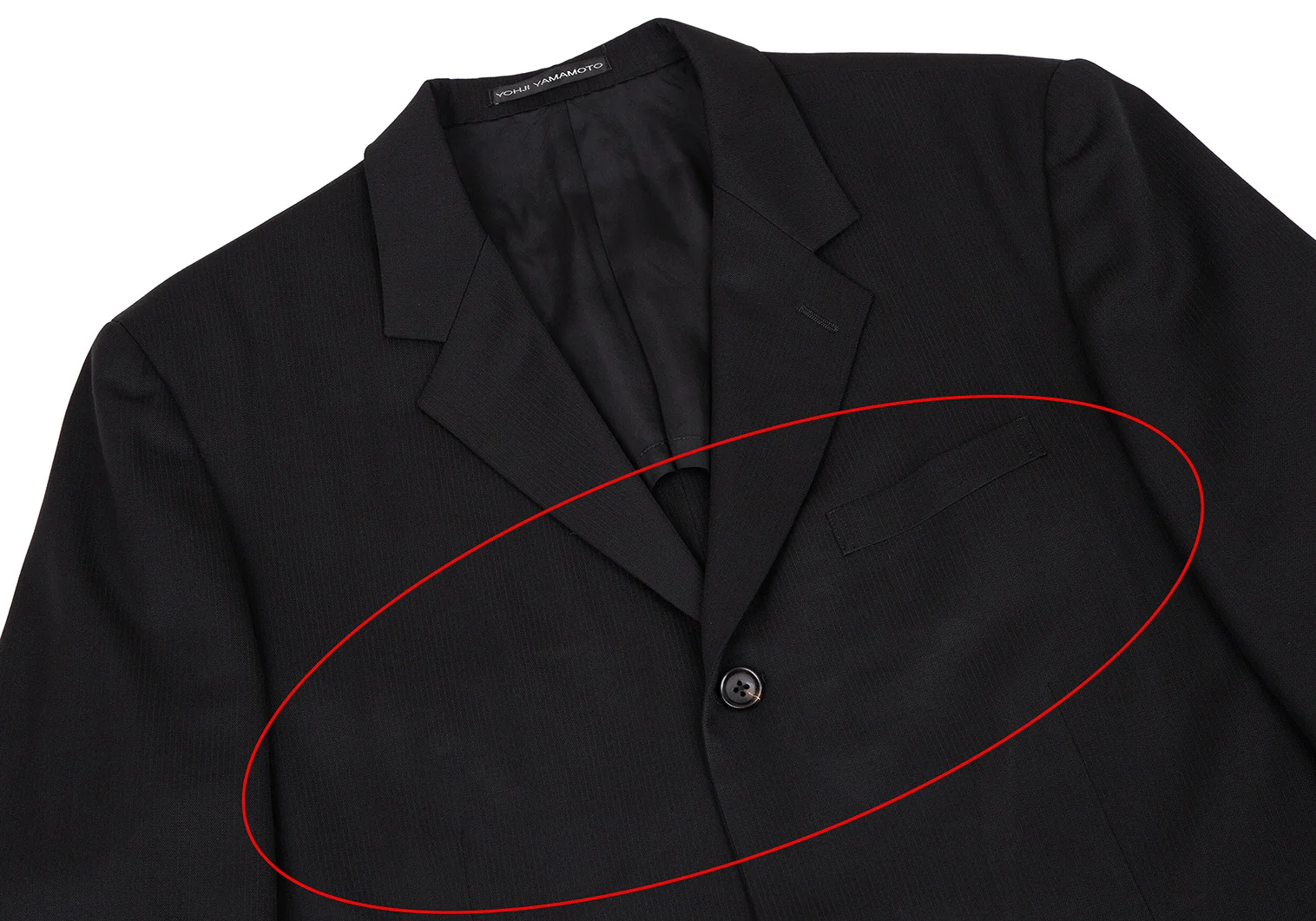 ジャケット肩パッドあり。襟元に多少色褪せ、前身頃に多少テカリがあります。パンツヒップにテカリ 、スレがあります。(写真参照)その他目立ったシミ、汚れ、ほつれ等なくいい状態です。クリーニング済み