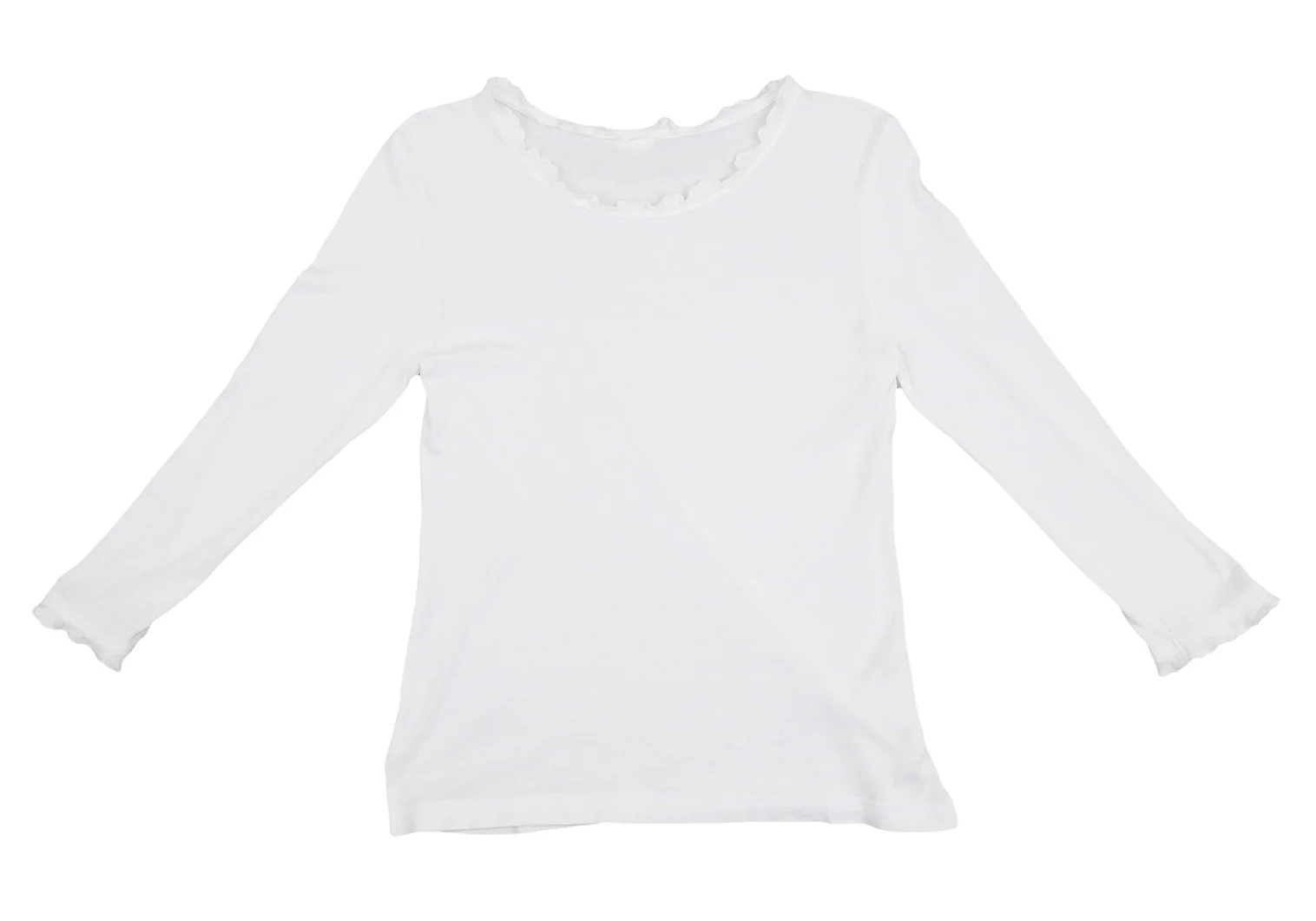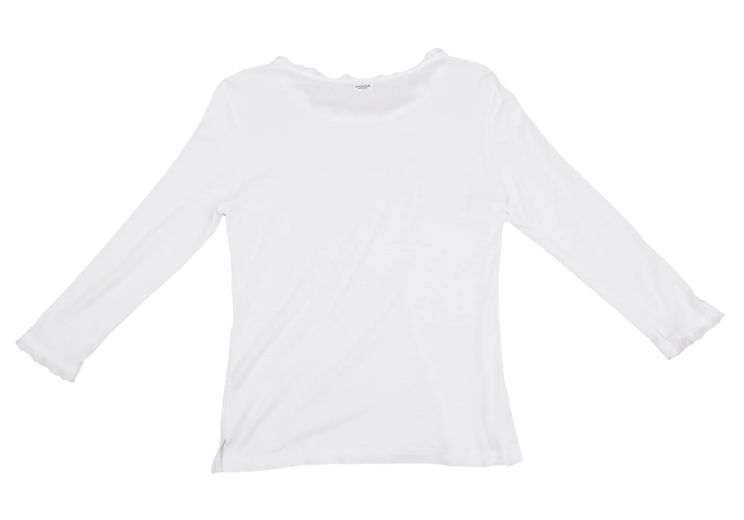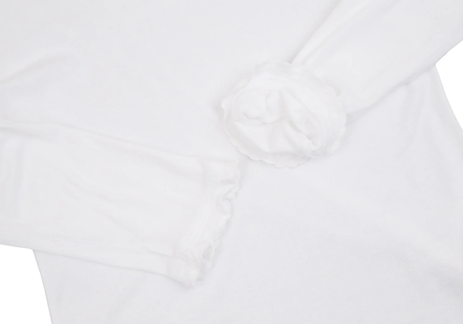 マドモアゼルノンノンMademoiselle NON NONレーヨンコットンフリルカットソー 白M