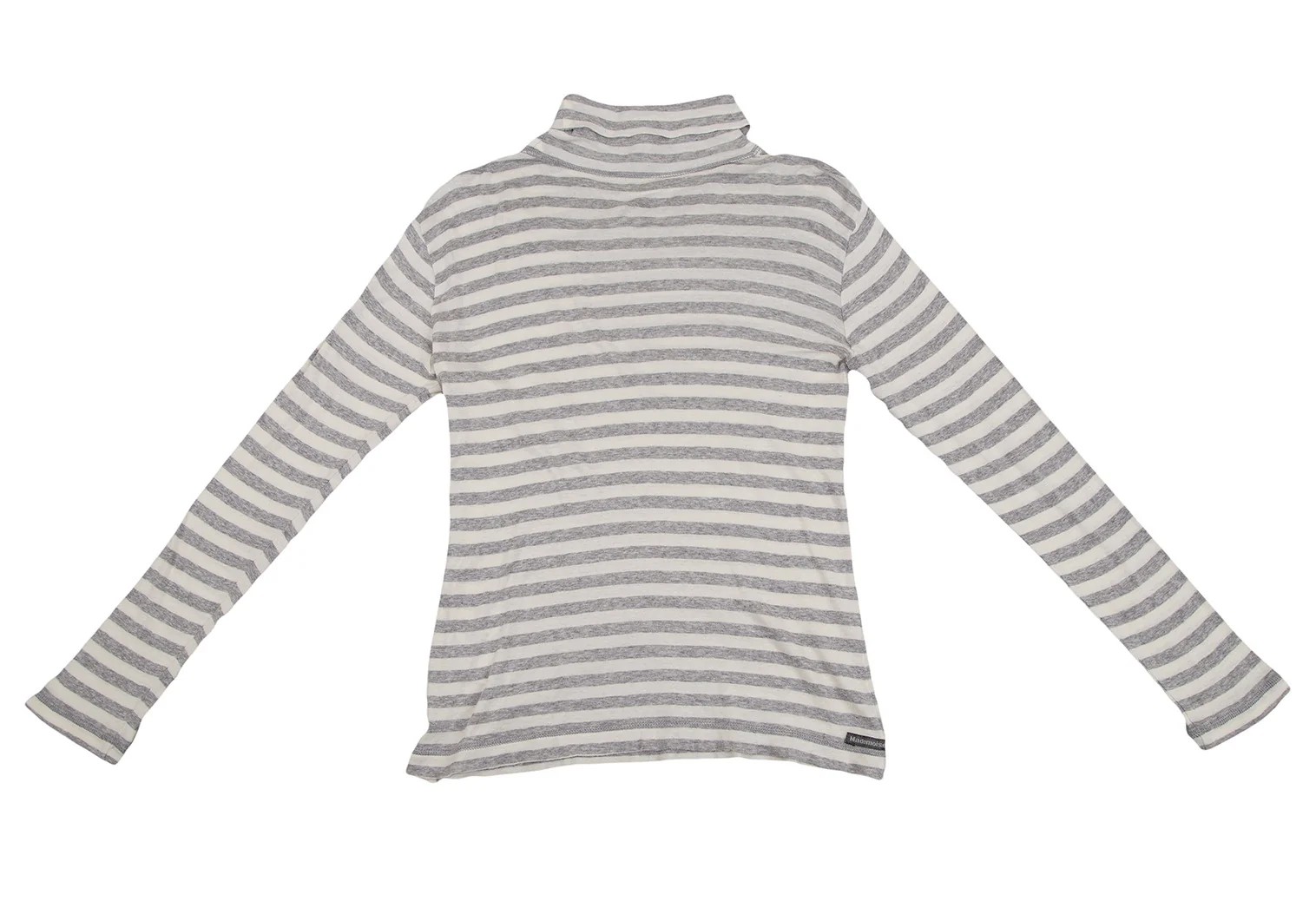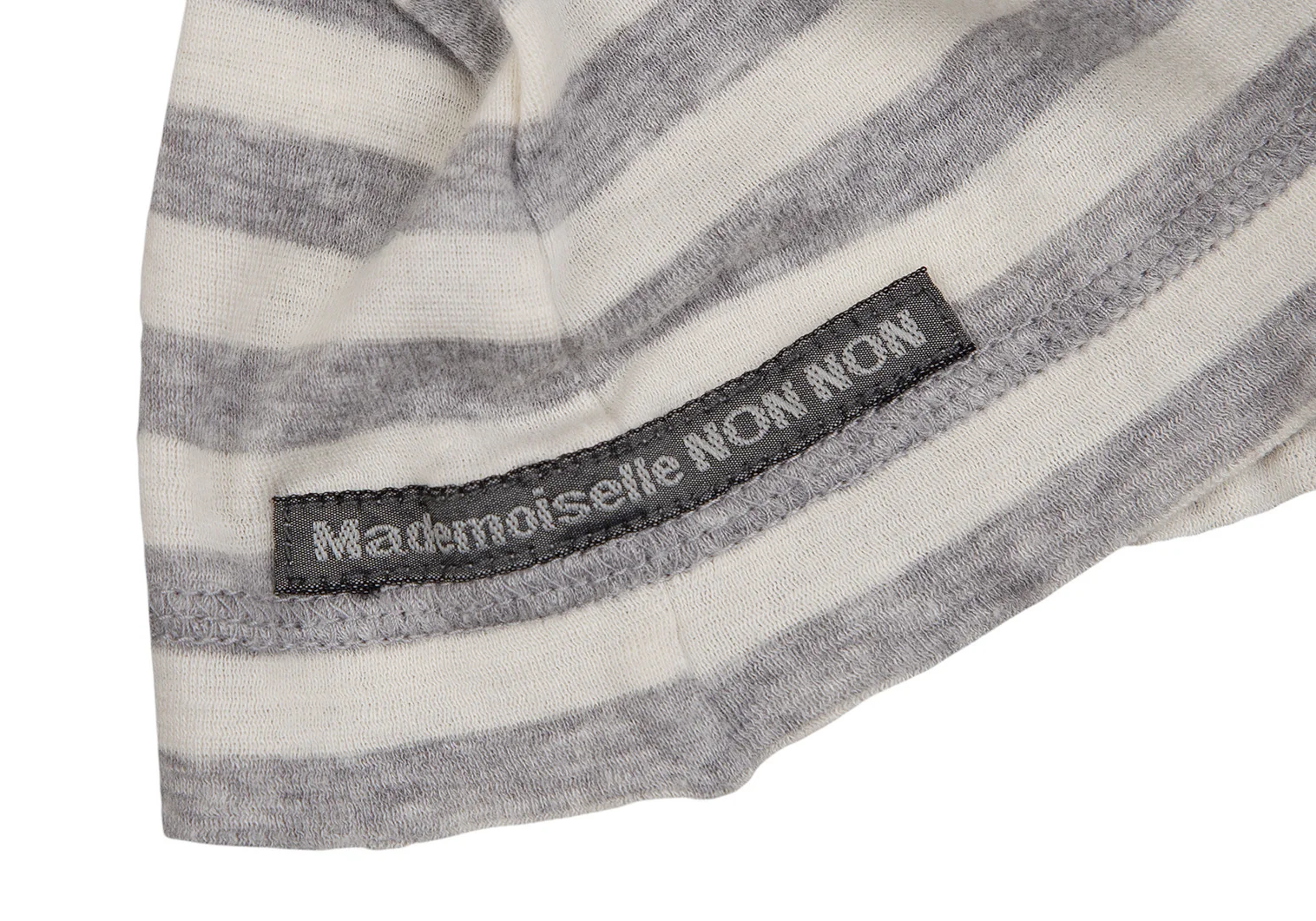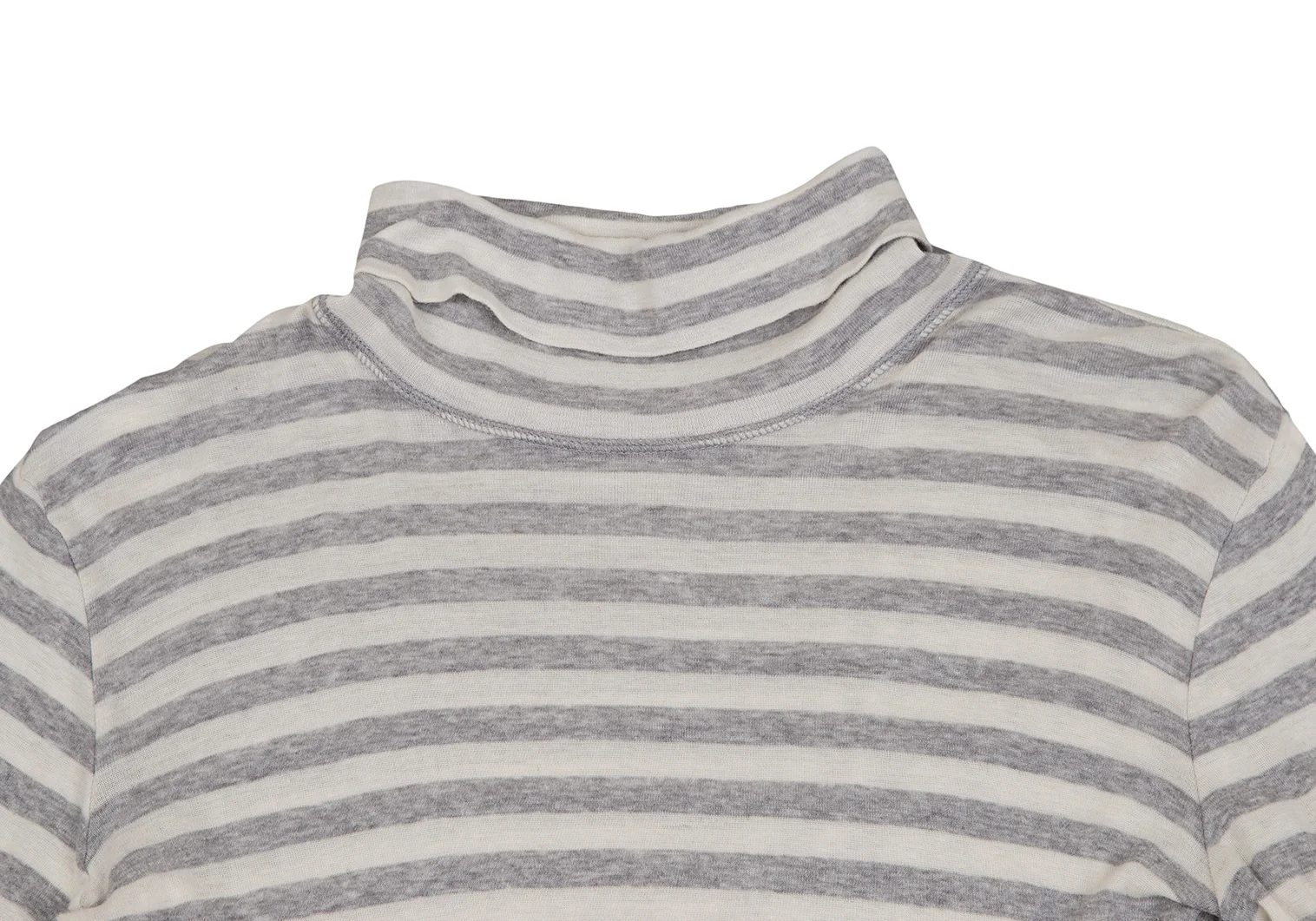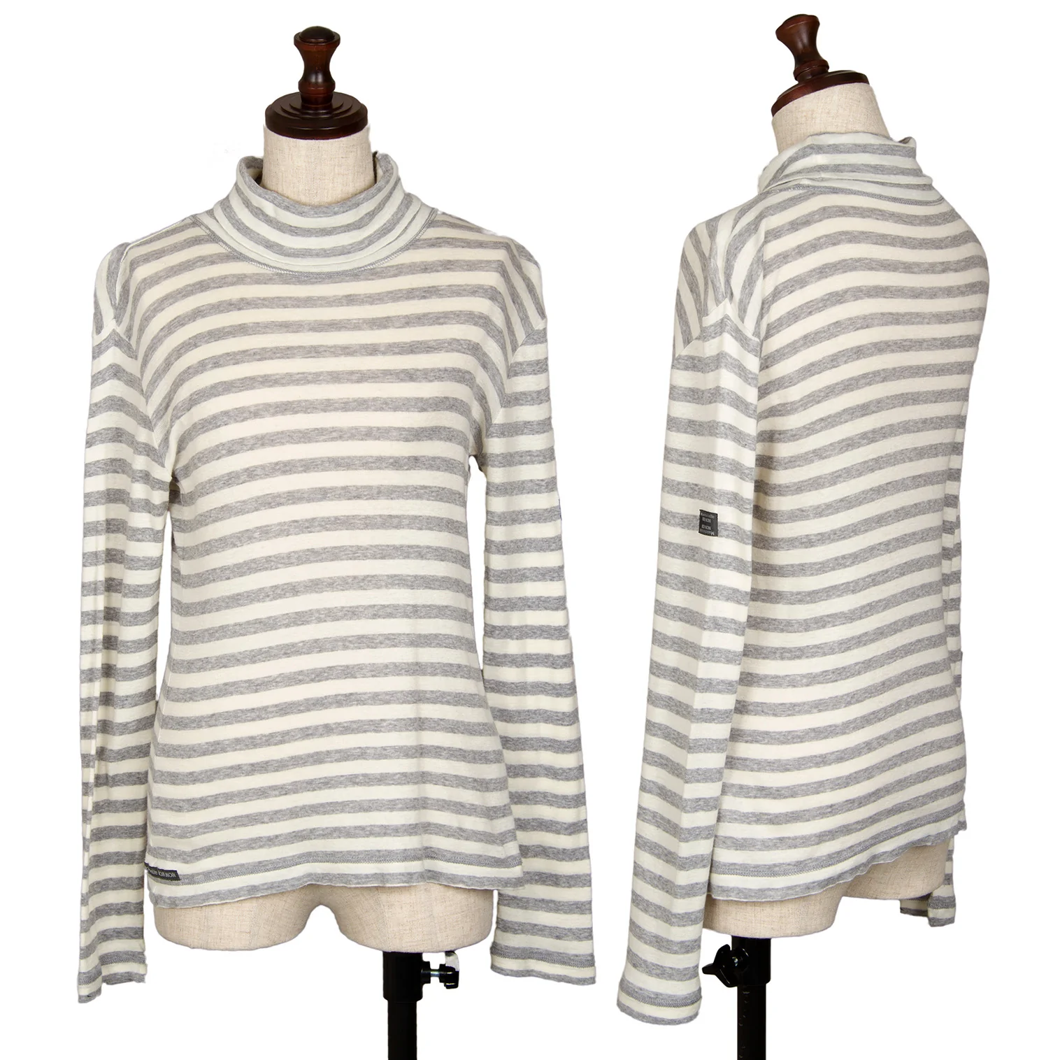 マドモアゼルノンノンMademoiselle NON NON コットンタートルネックボーダーカットソー グレー生成りM位