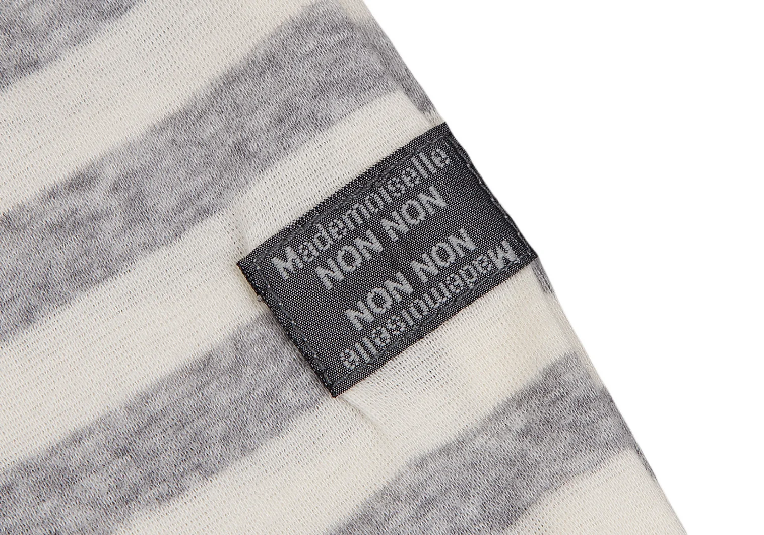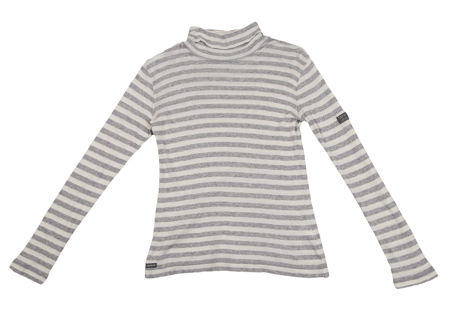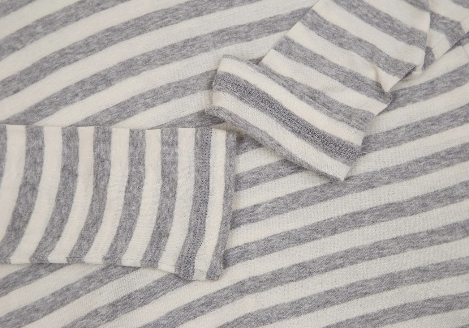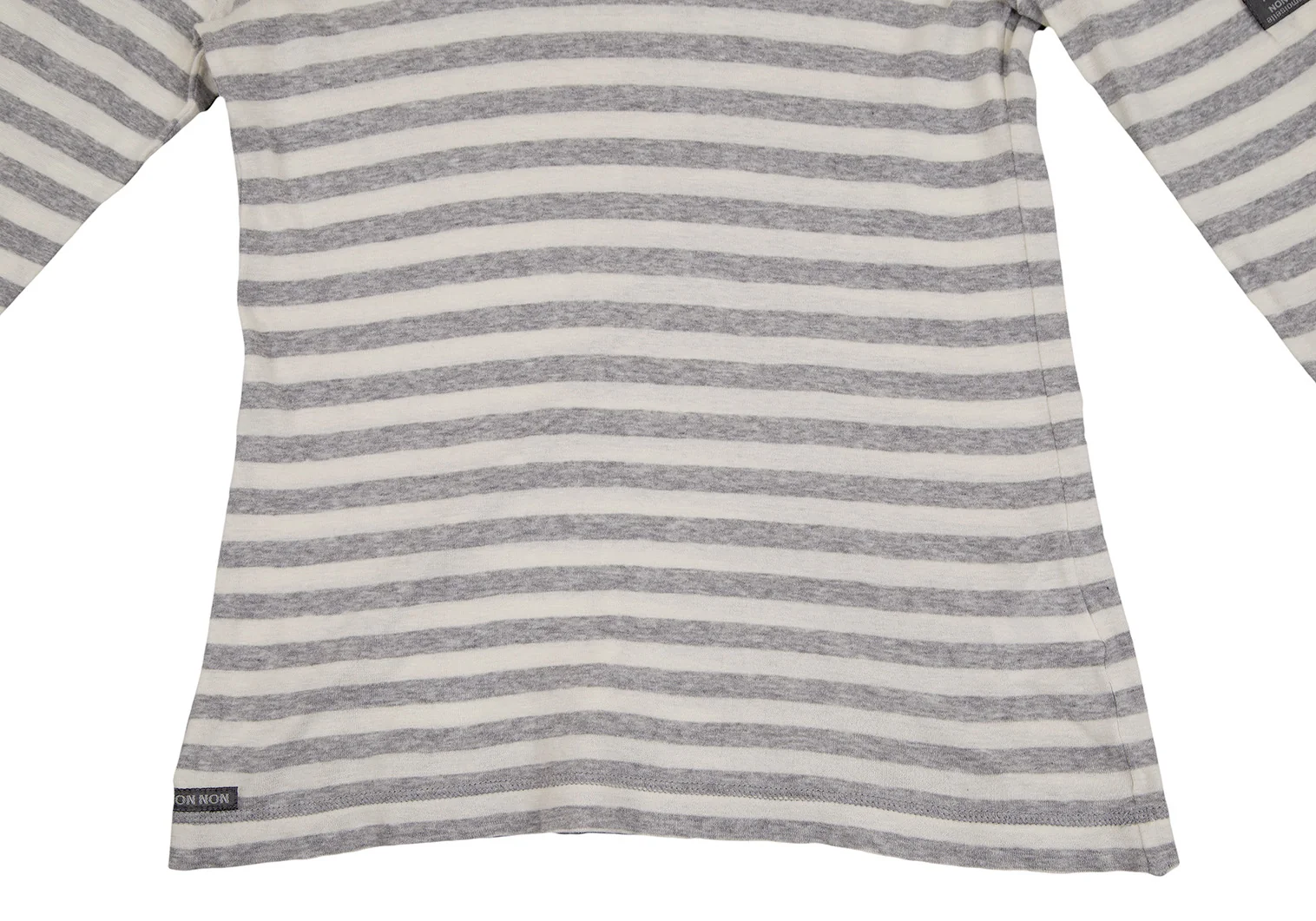 マドモアゼルノンノンMademoiselle NON NON コットンタートルネックボーダーカットソー グレー生成りM位