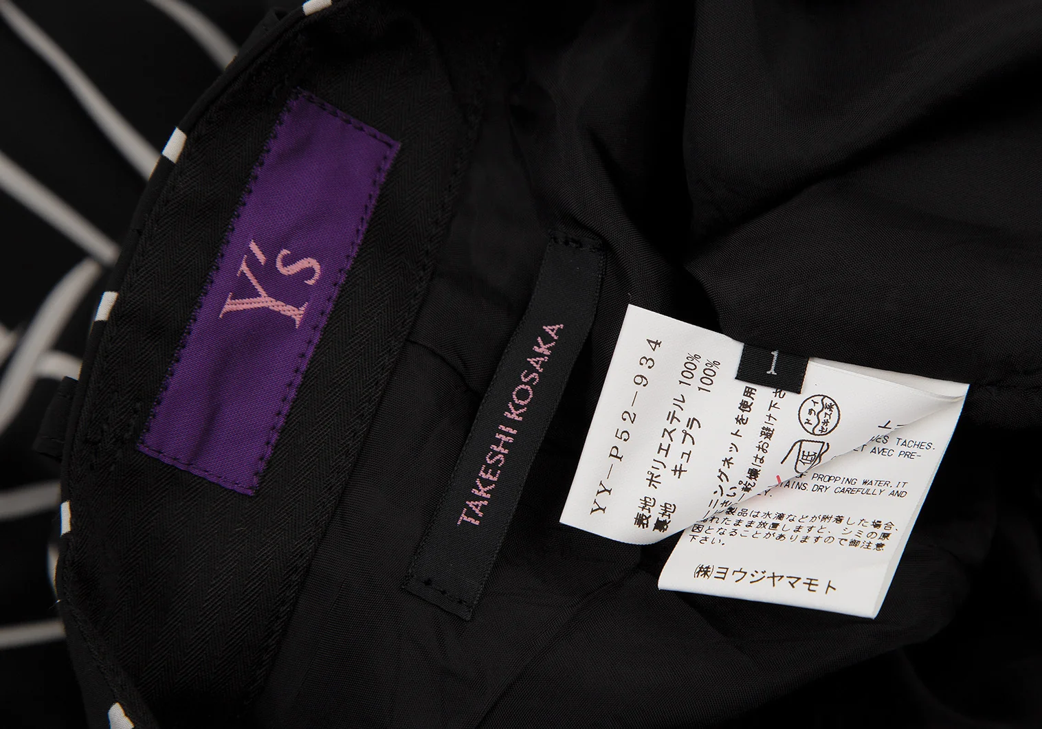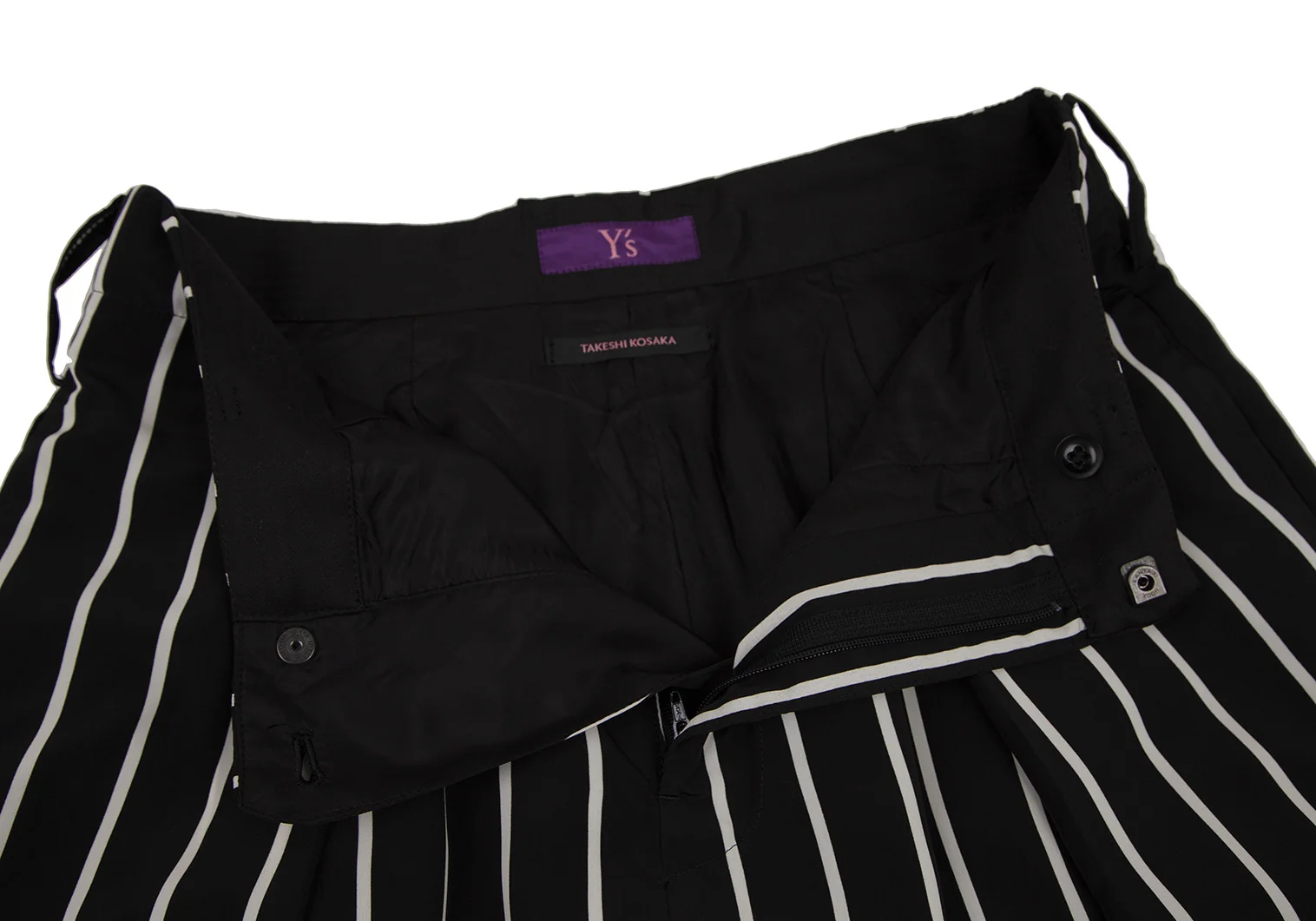 タケシコウサカバイ ワイズ ピンクレーベルTAKESHI KOSAKA by Y's Pink Label ストライプタックテーパードパンツ 黒1