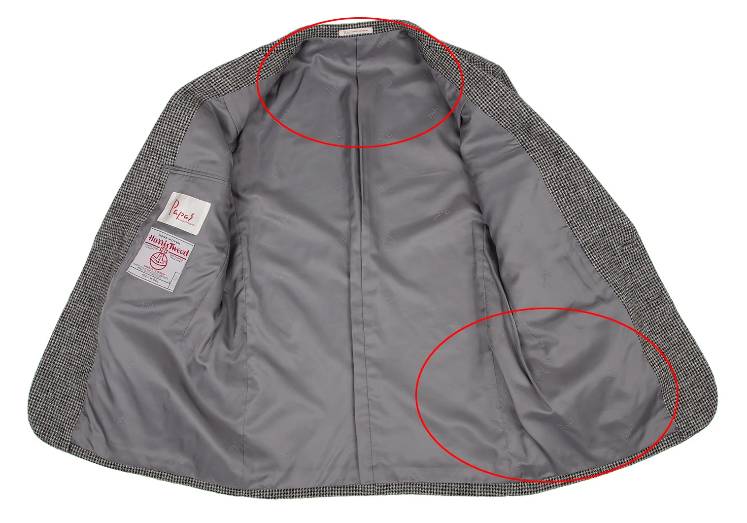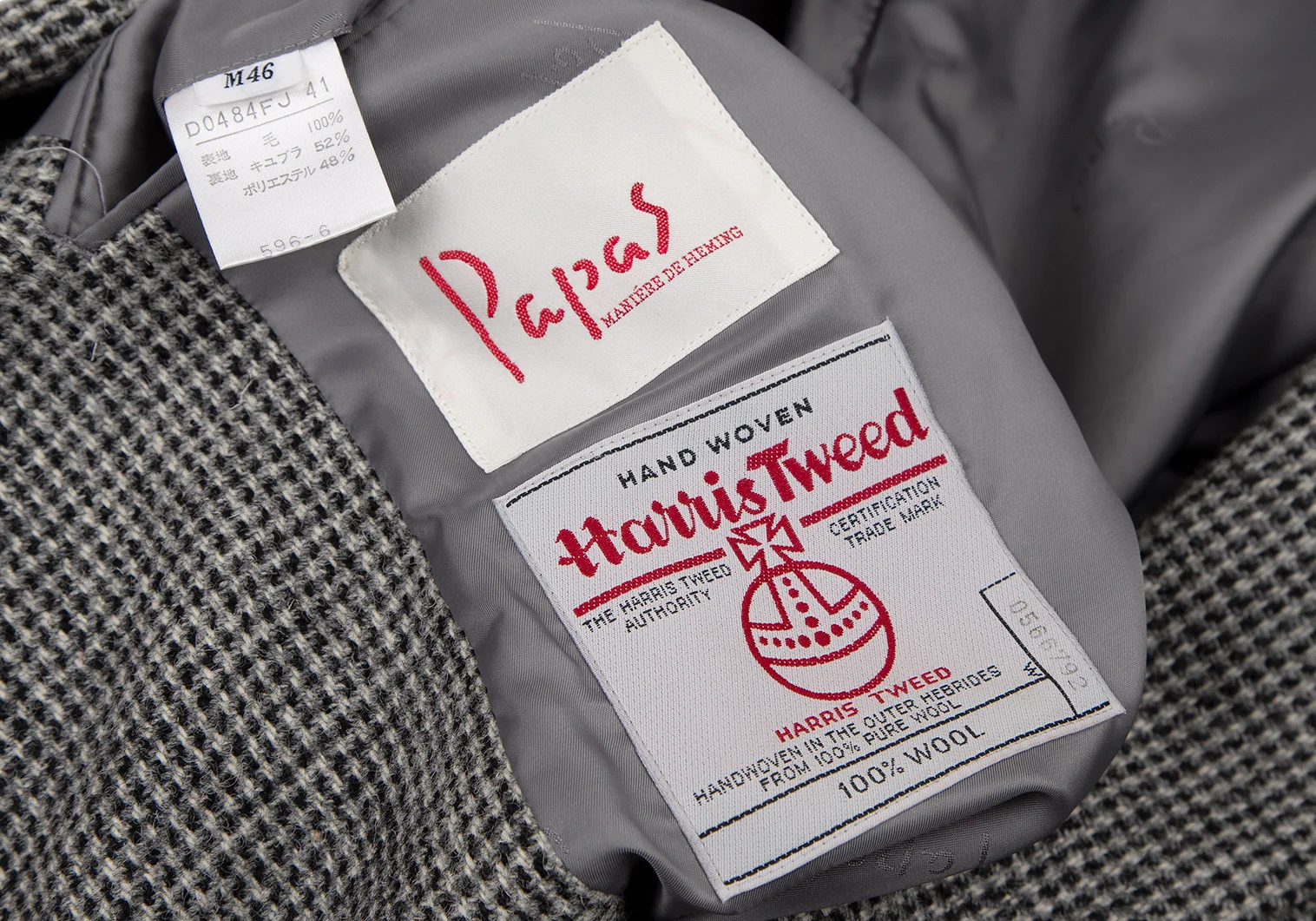 パパスPapas ハリスツイード2Bジャケット グレーM46