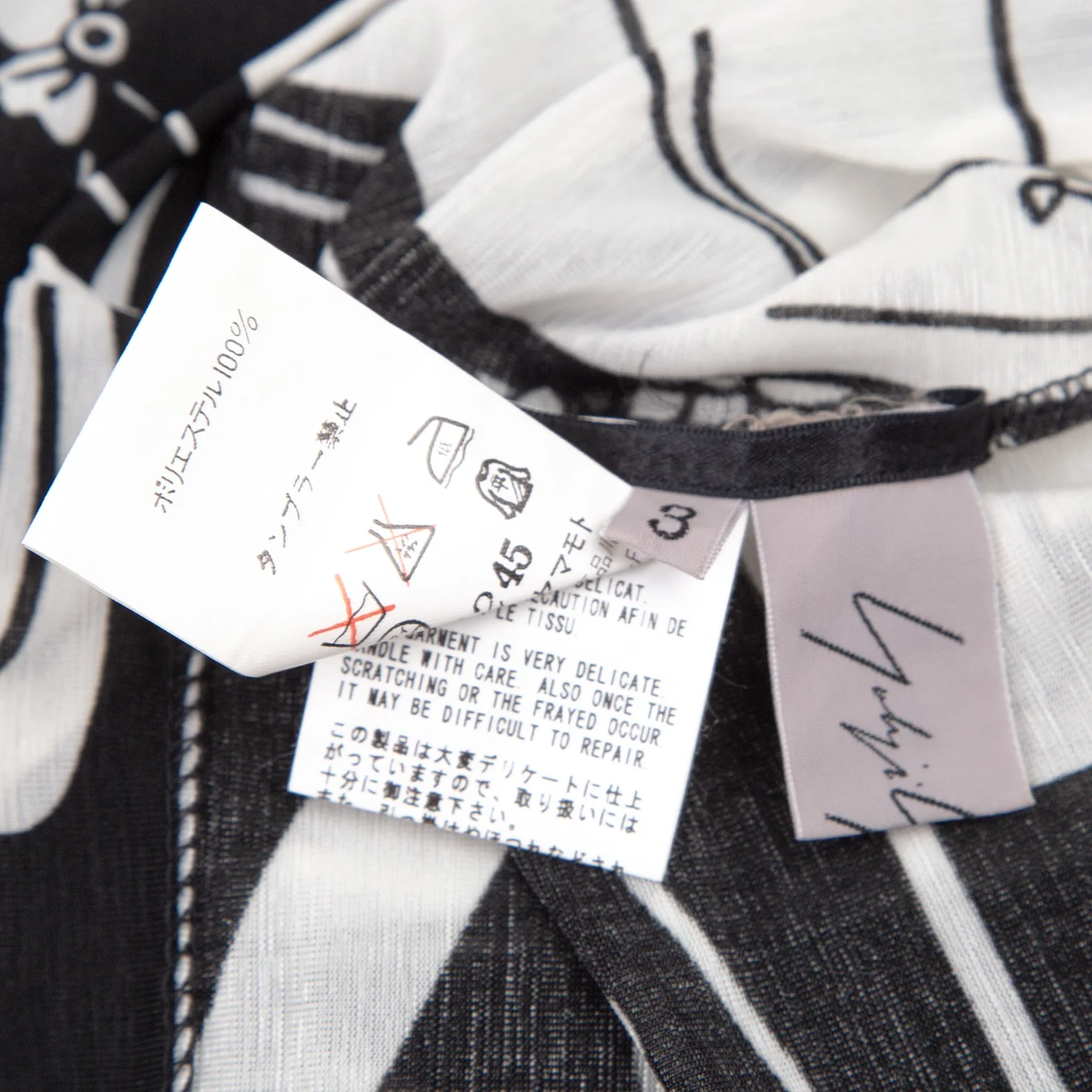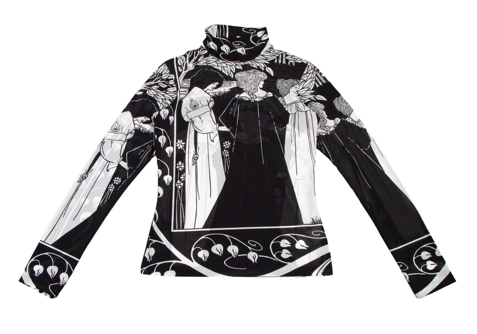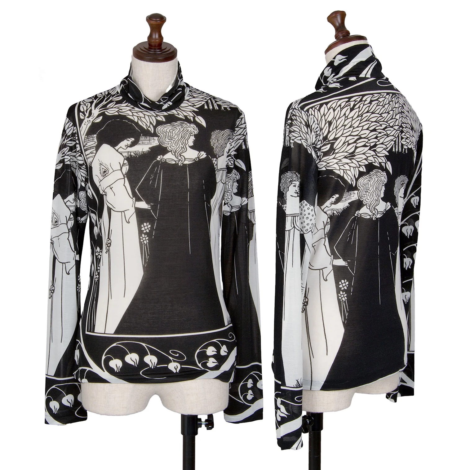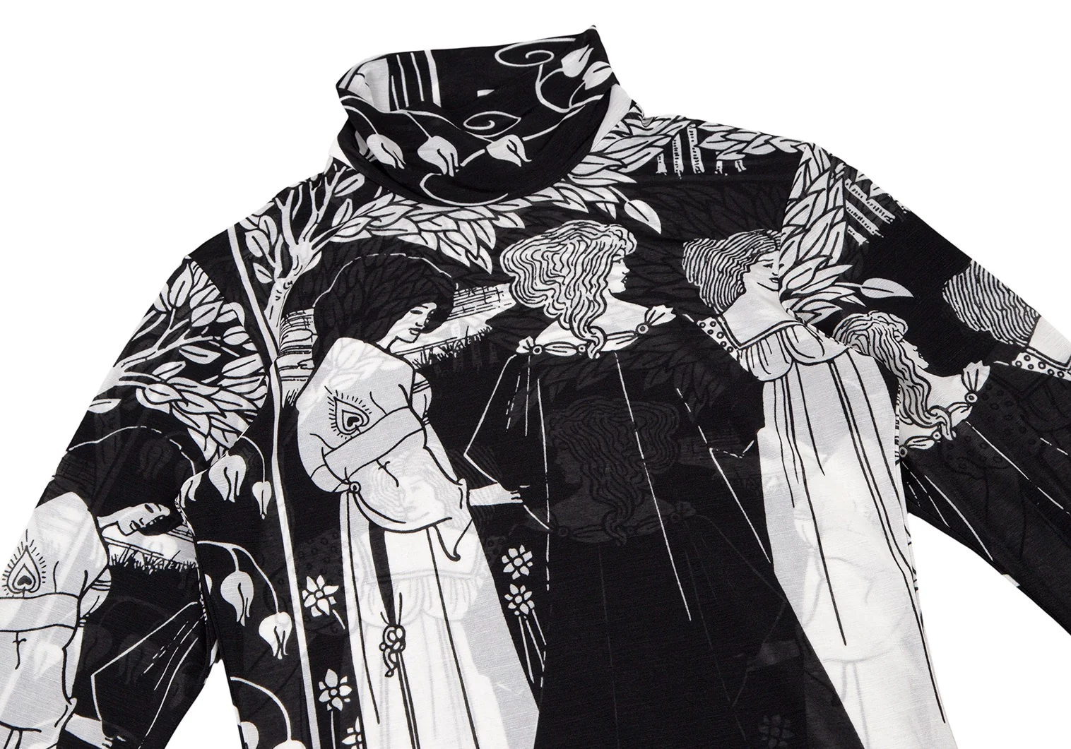 ヨウジヤマモト ファムYohji Yamamoto FEMME モノクログラフィックプリントシースルーハイネックカットソー 黒白3
