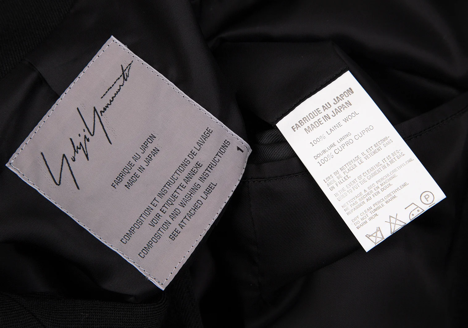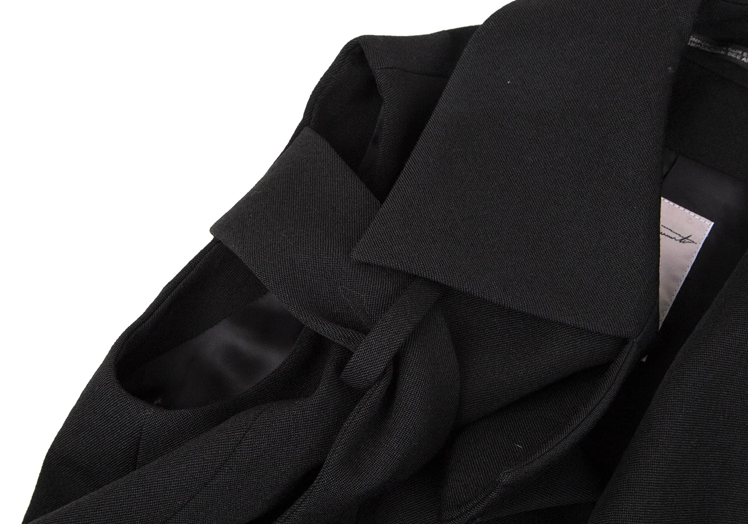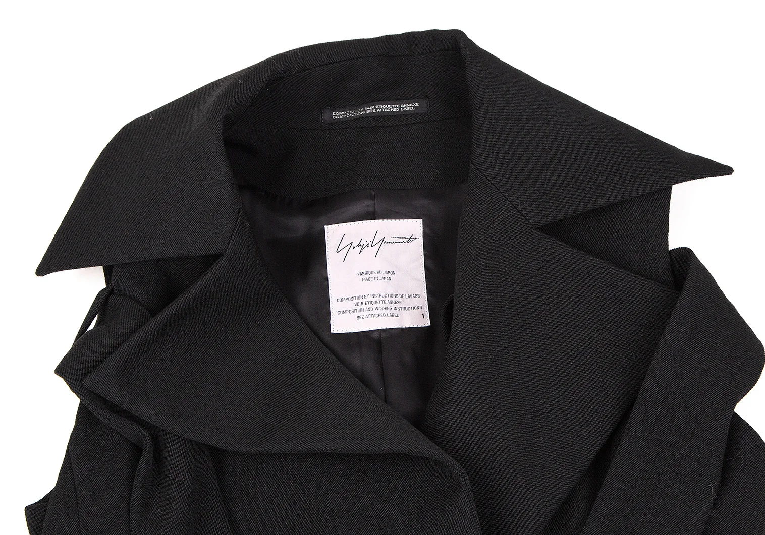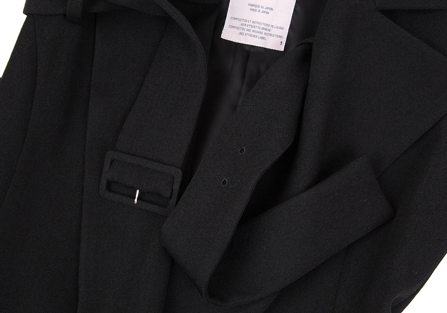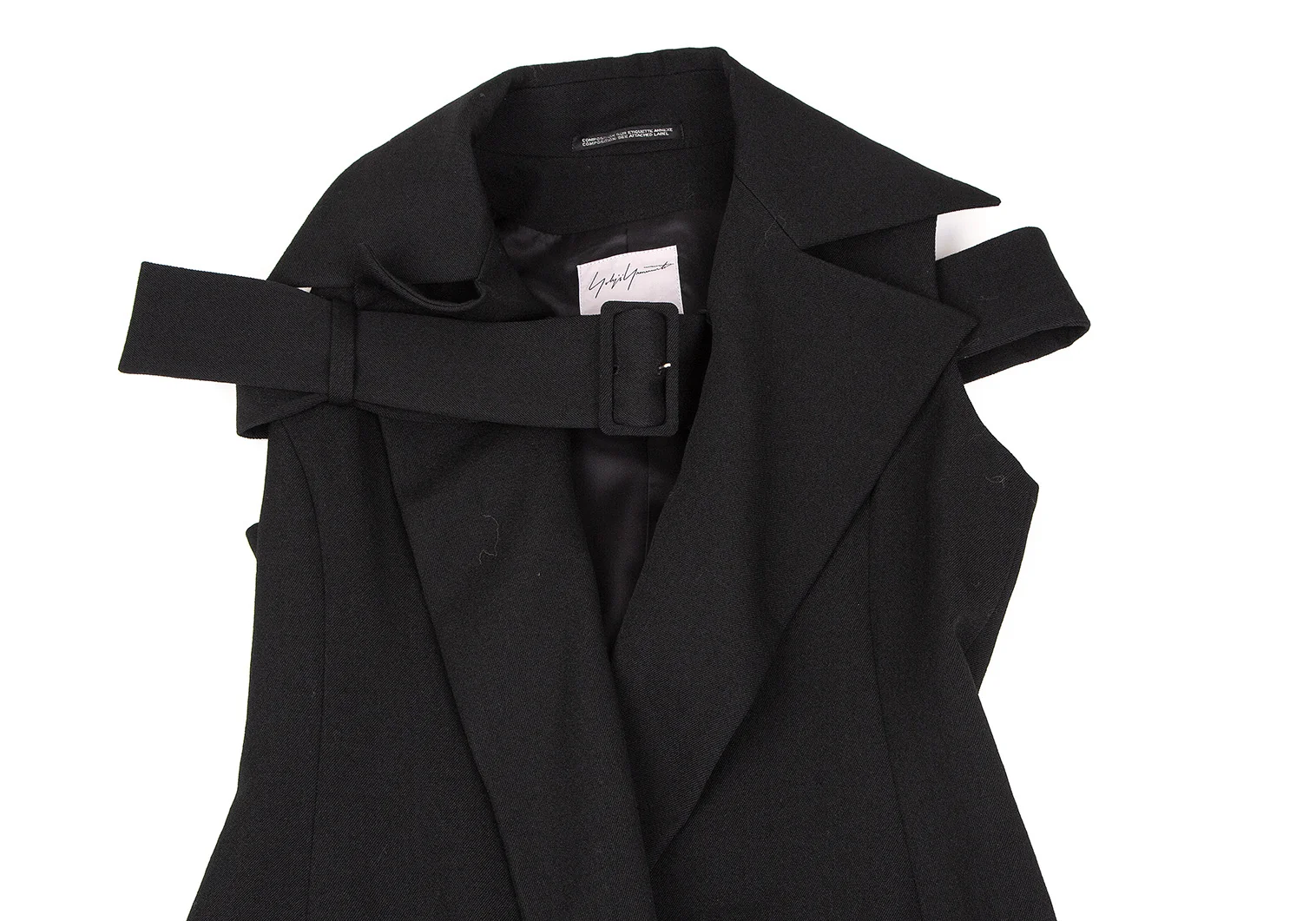 ヨウジヤマモト ファムYohji Yamamoto FEMME オールドギャバショルダーベルテッドノースリーブロングジャケット 黒1