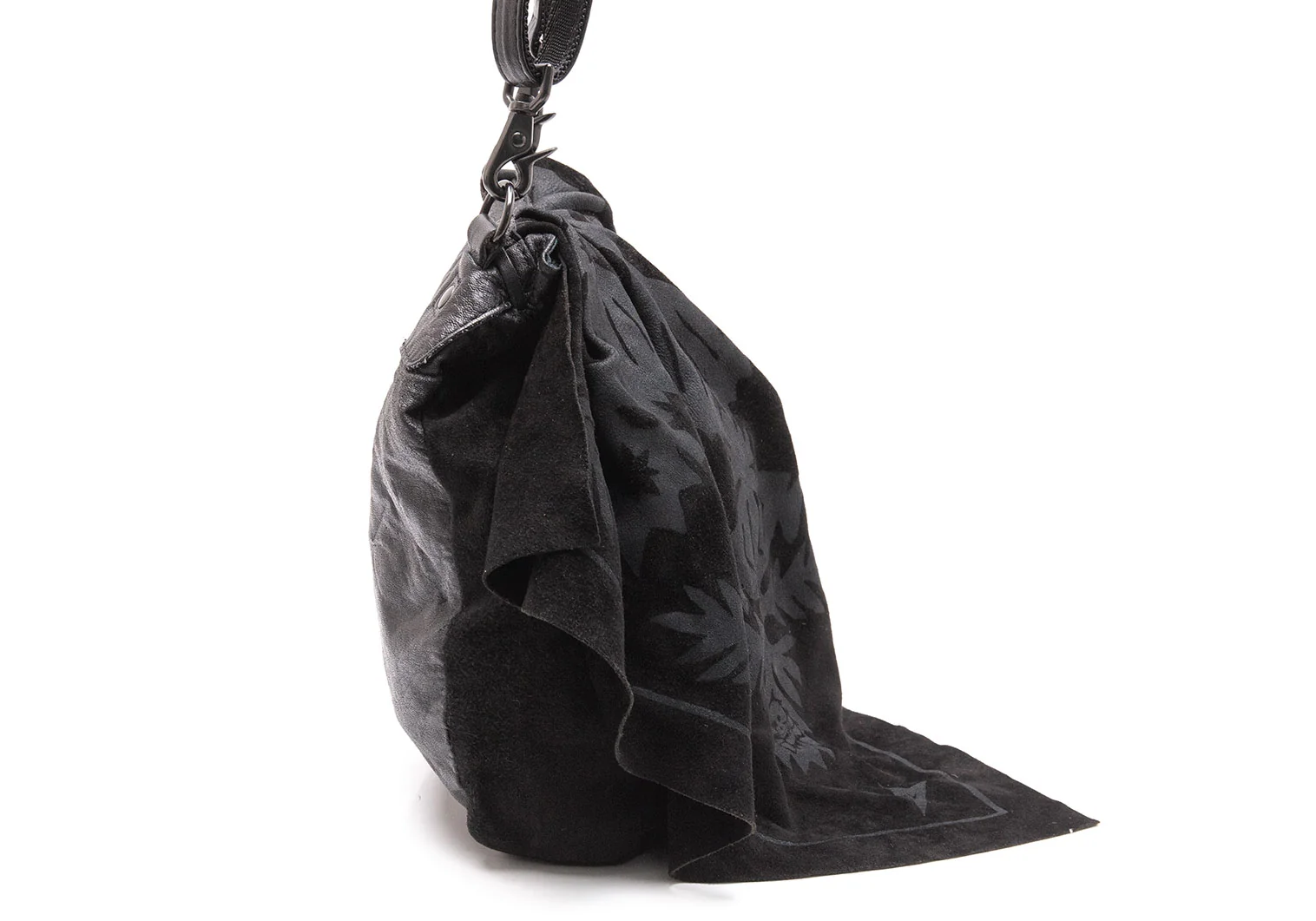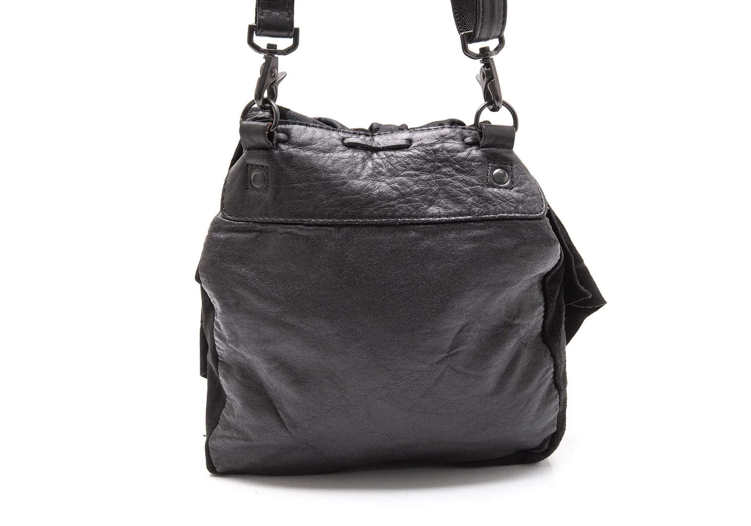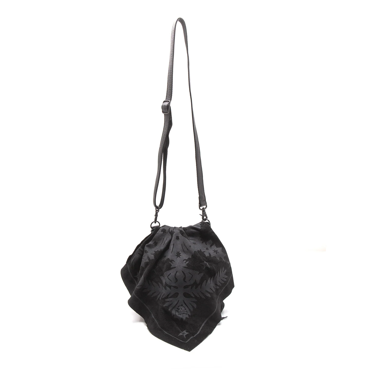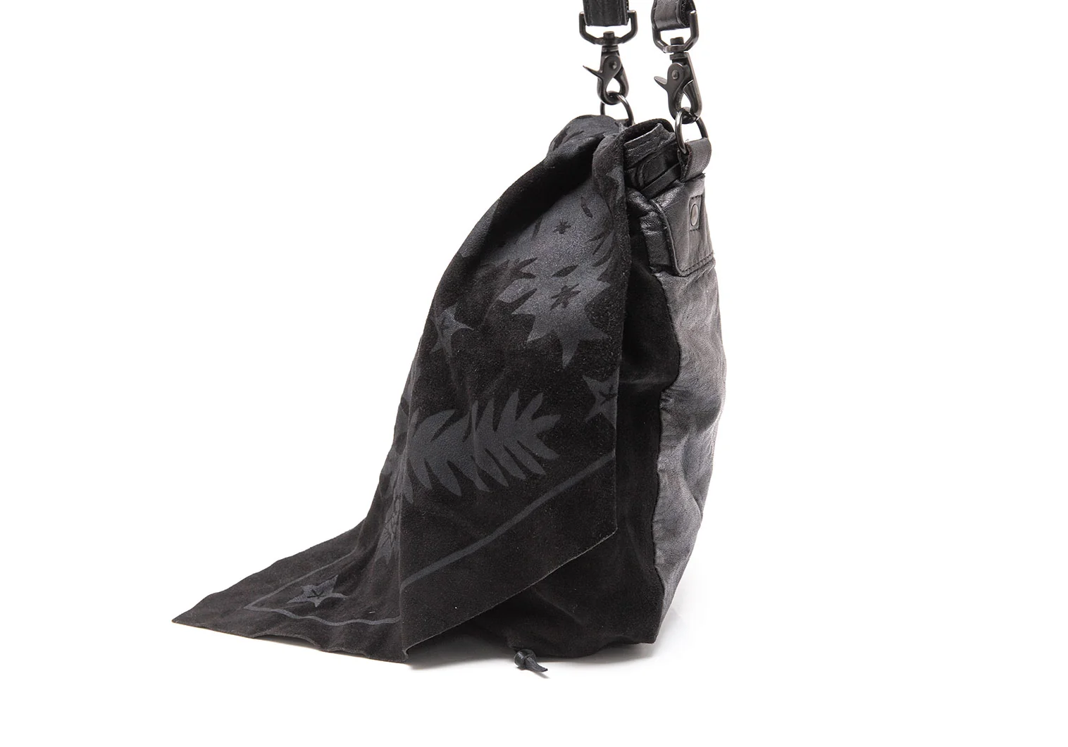 リミフゥLIMI feu スウェードレザー切替スカルスタープリントフラップショルダーバッグ 黒グレー