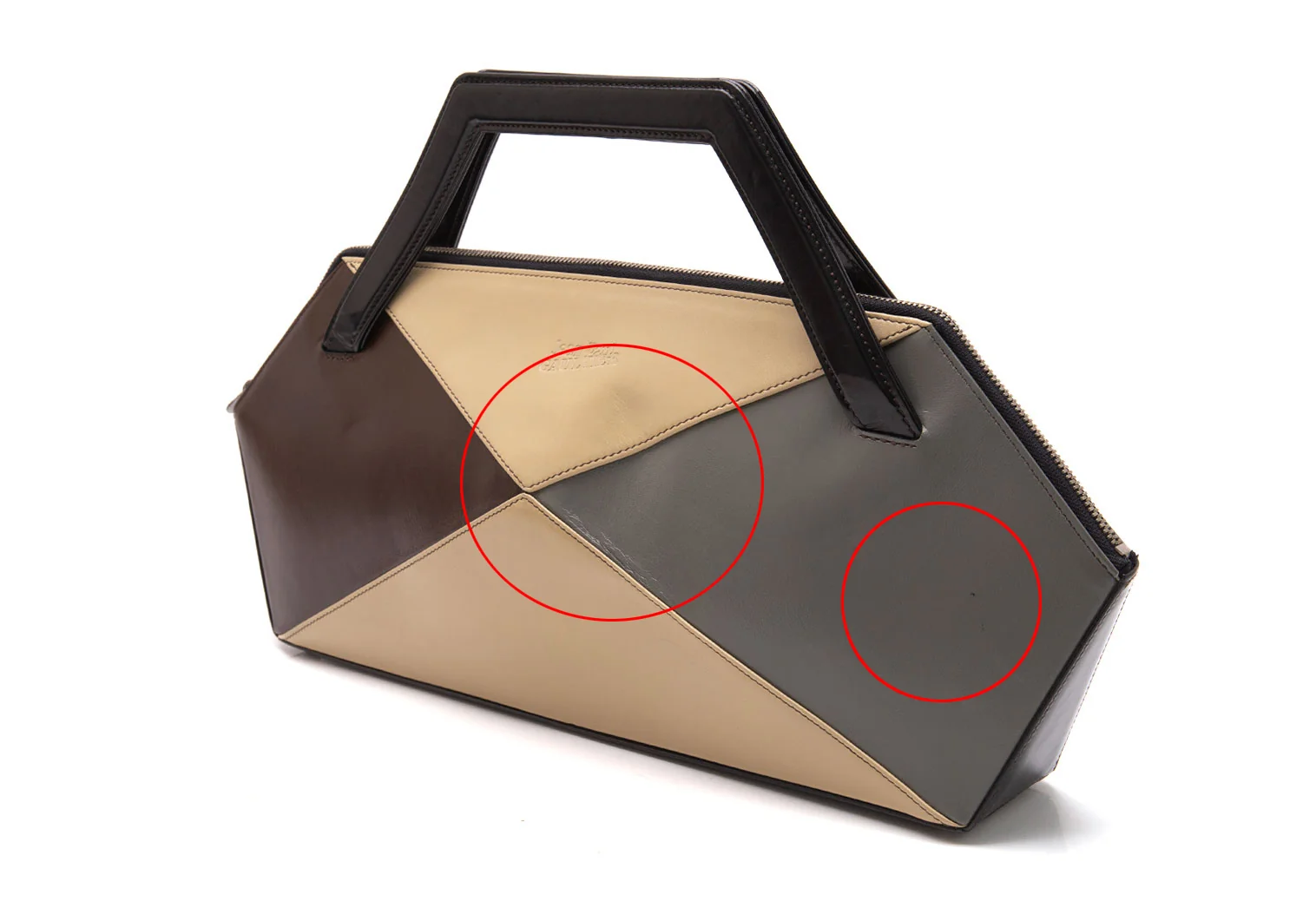 ジャンポールゴルチエJean Paul GAULTIER 配色切替レザーハンドバッグ 茶他