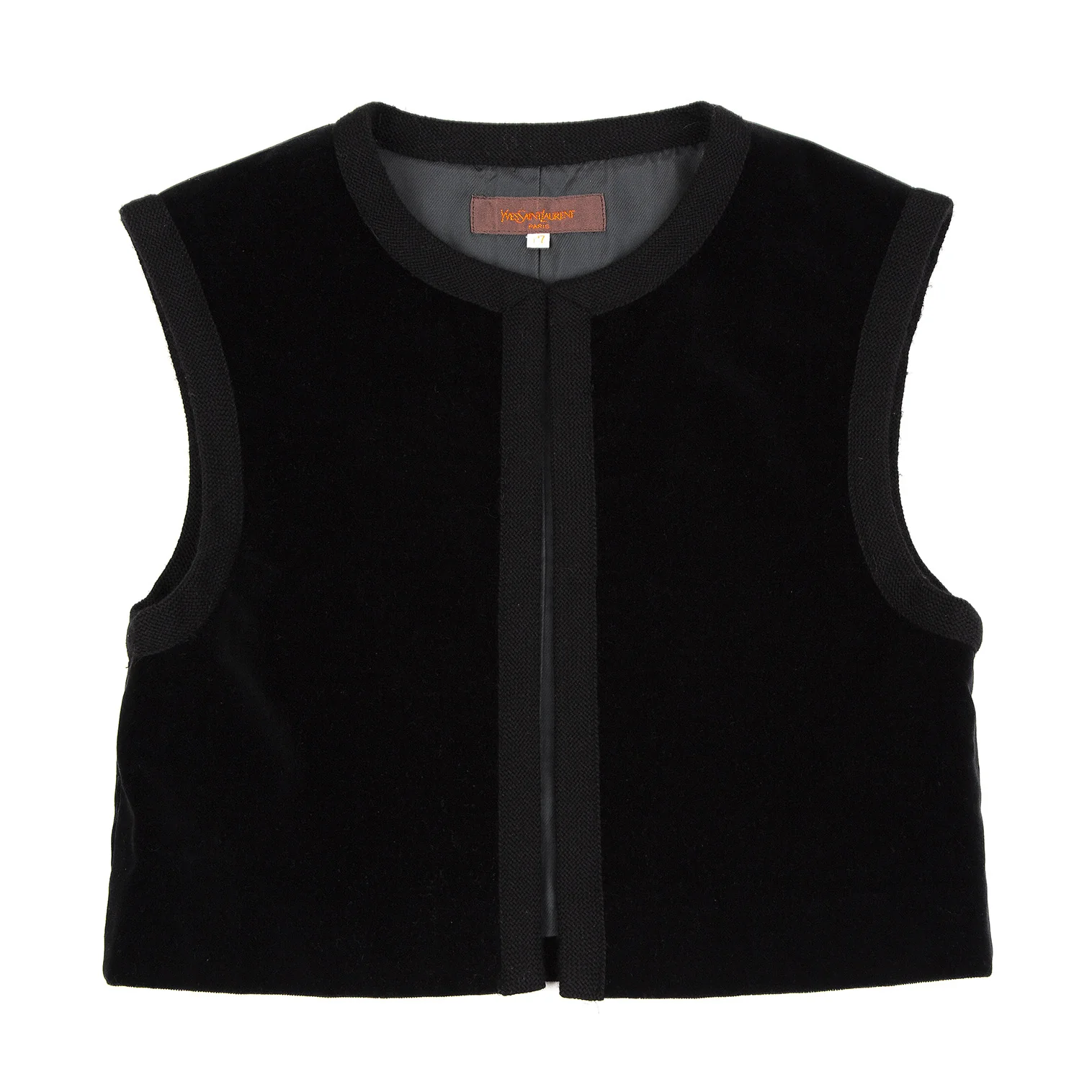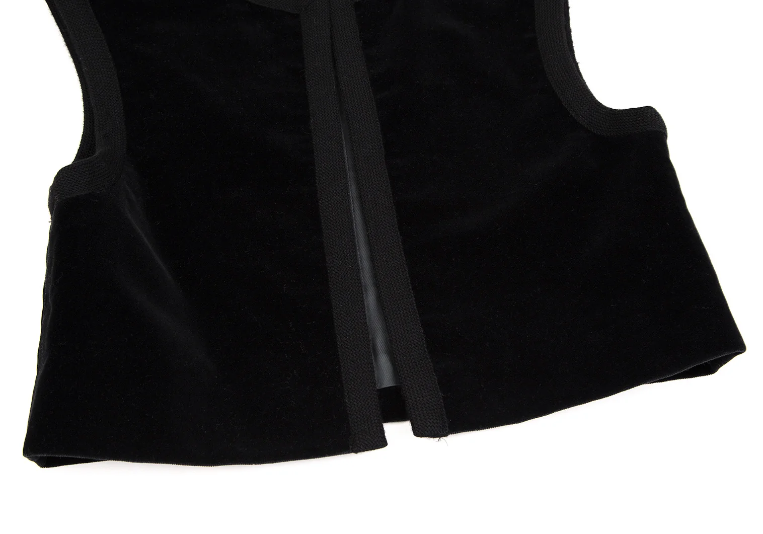 イヴサンローランYves Saint Laurent ベロアパイピングボタンレスショートベスト 黒7