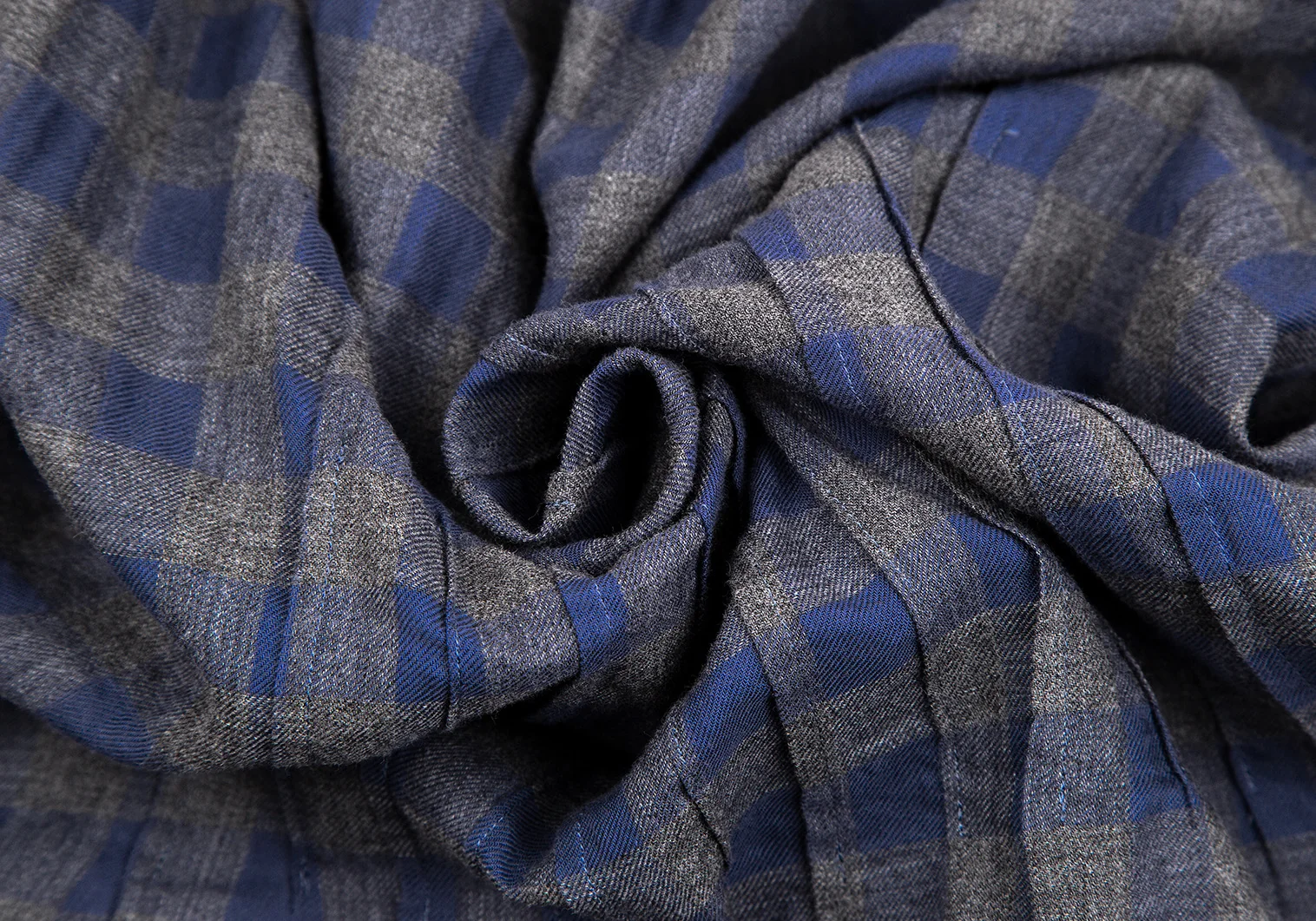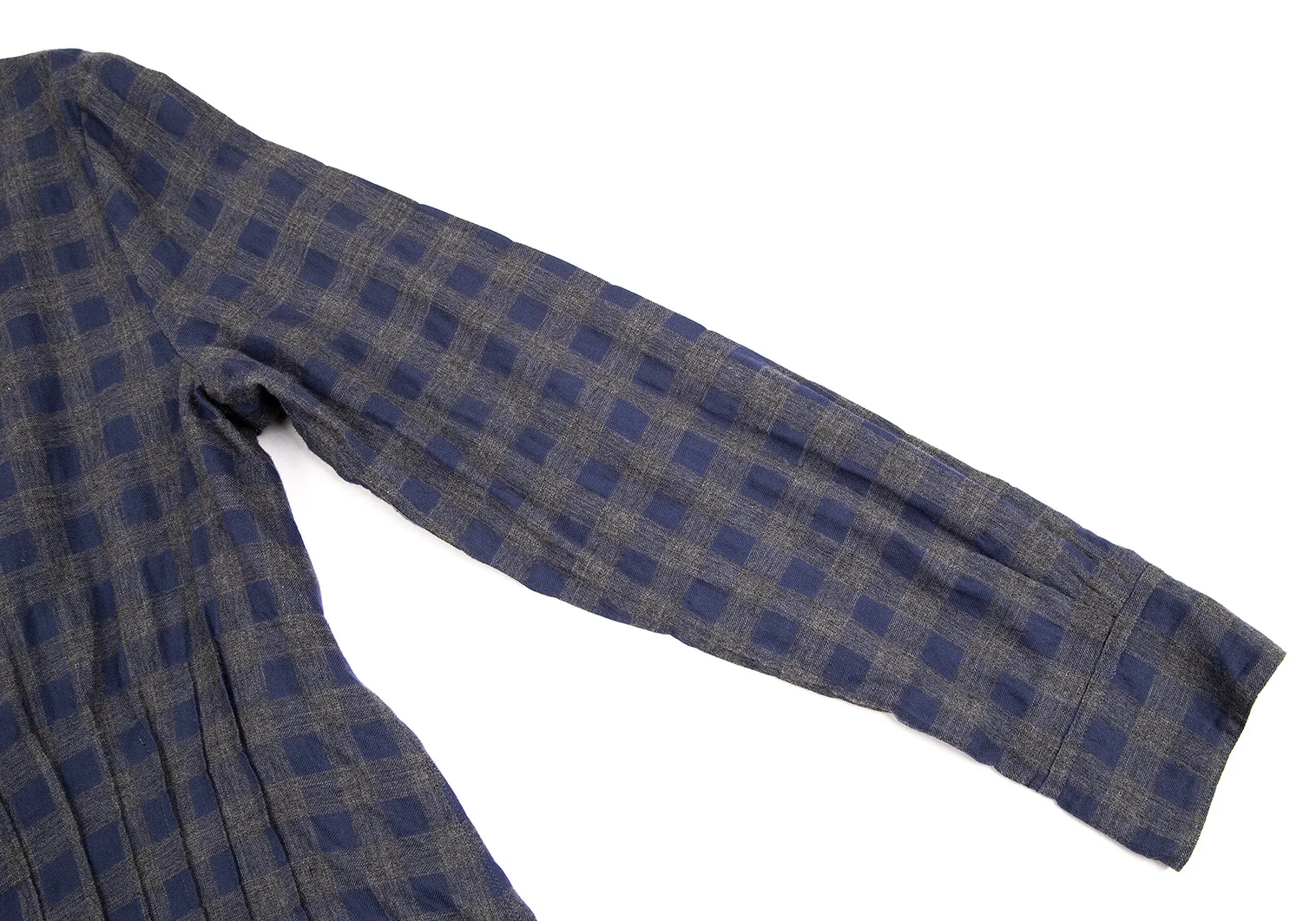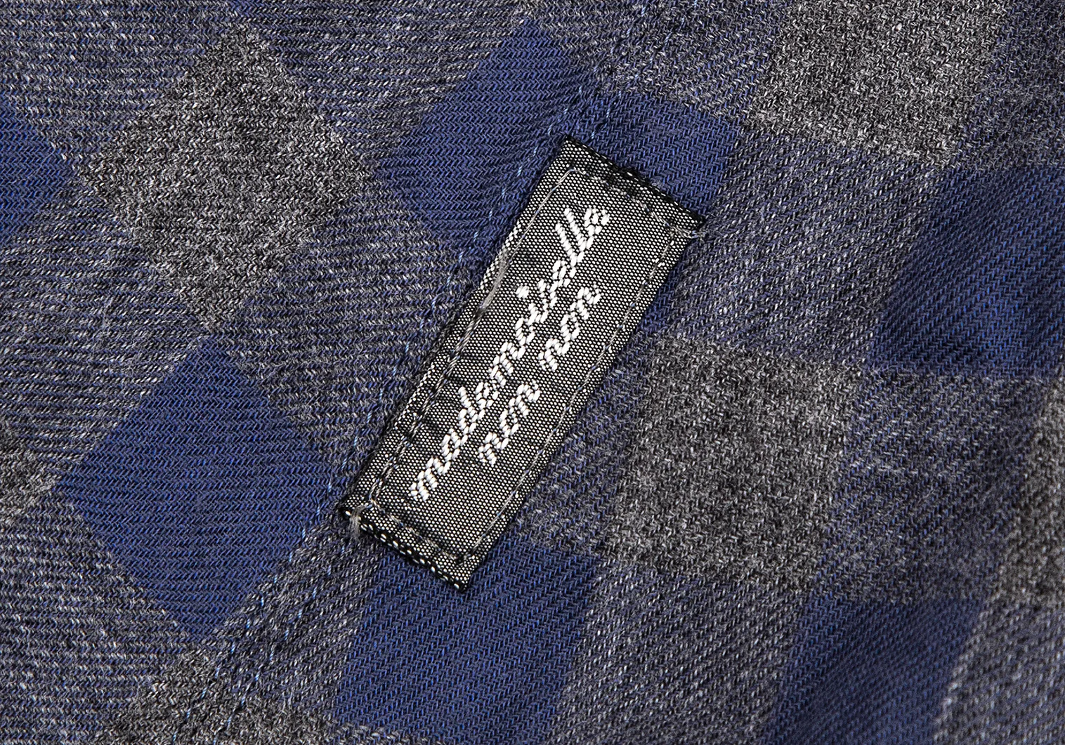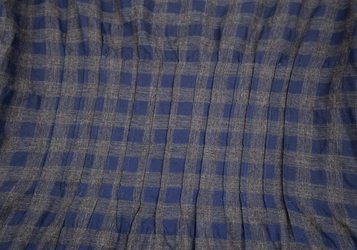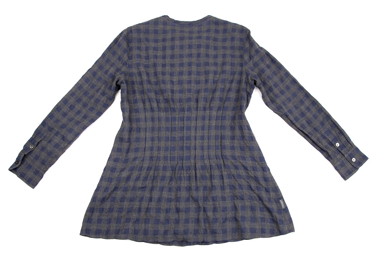 マドモアゼルノンノンMademoiselle NON NON コットンブロックチェックリボンデザインギャザーシャツ グレー青40L