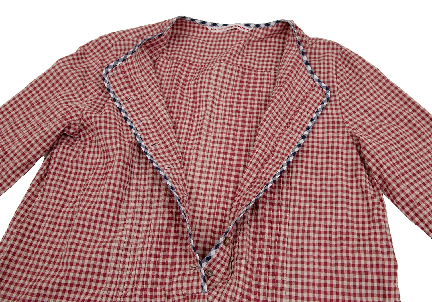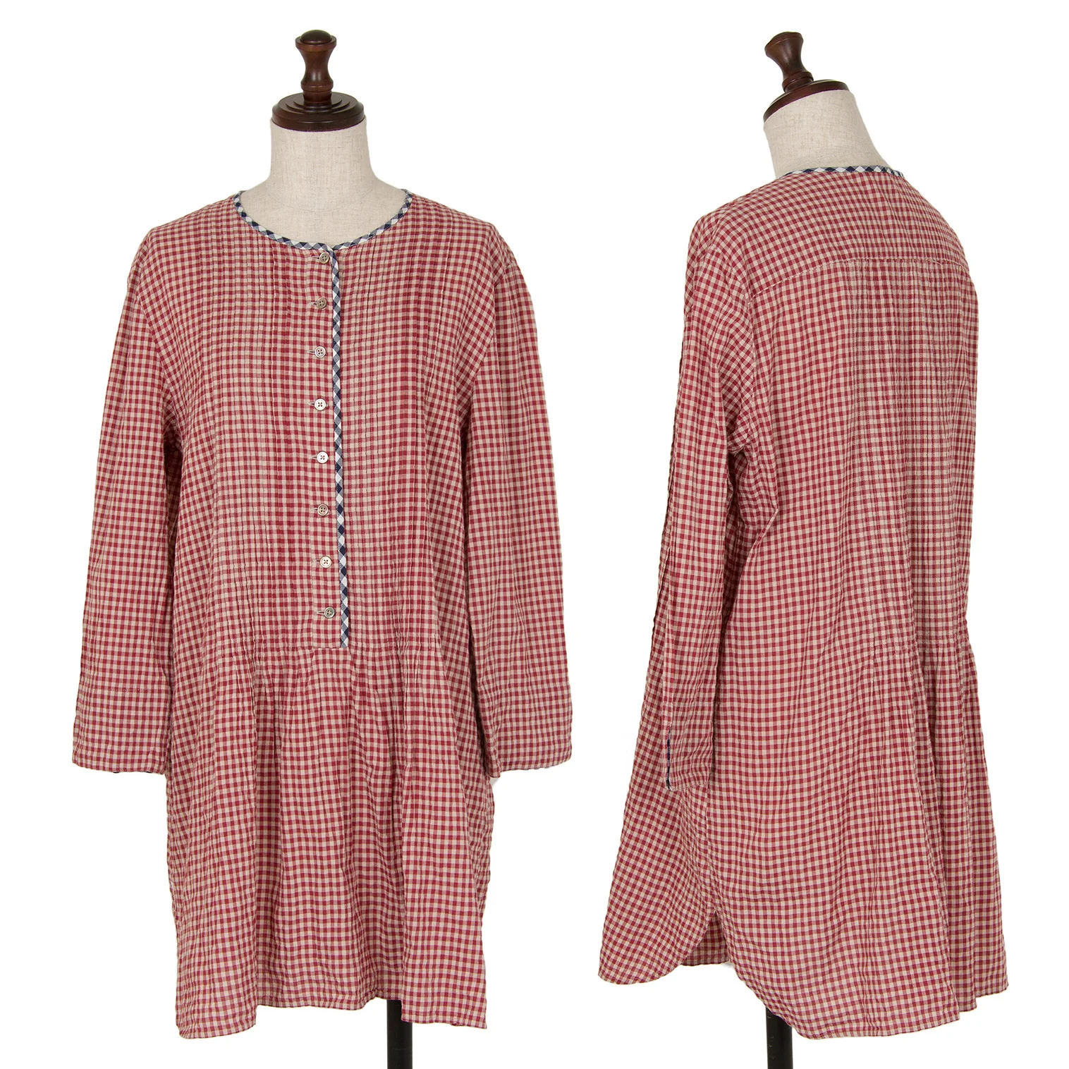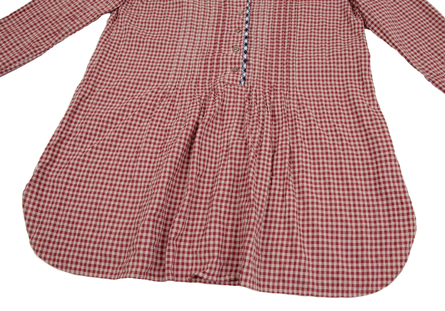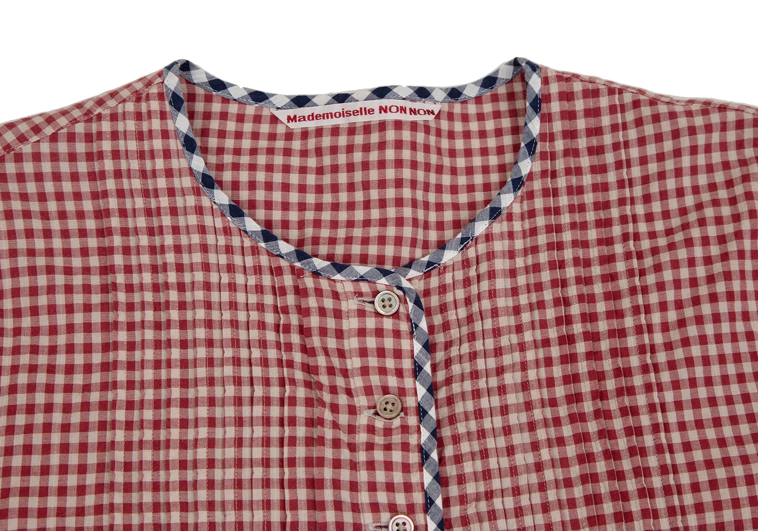 マドモアゼルノンノンMademoiselle NON NON コットンギンガムチェックパイピングプルオーバープリーツシャツチュニック エンジベージュ40L