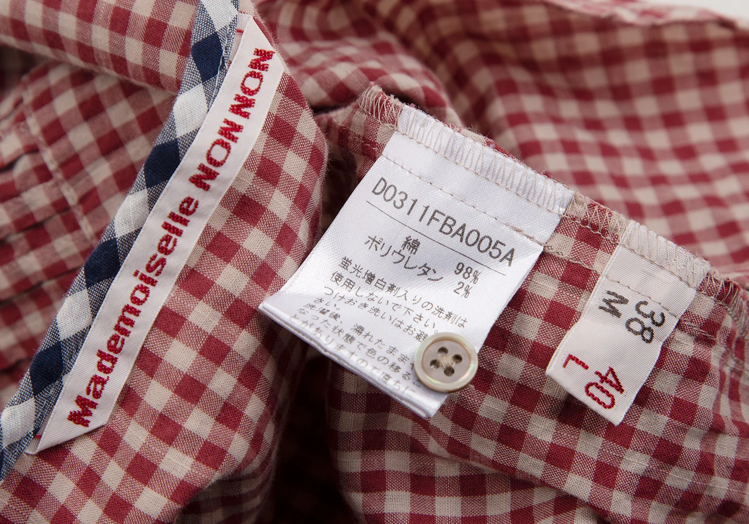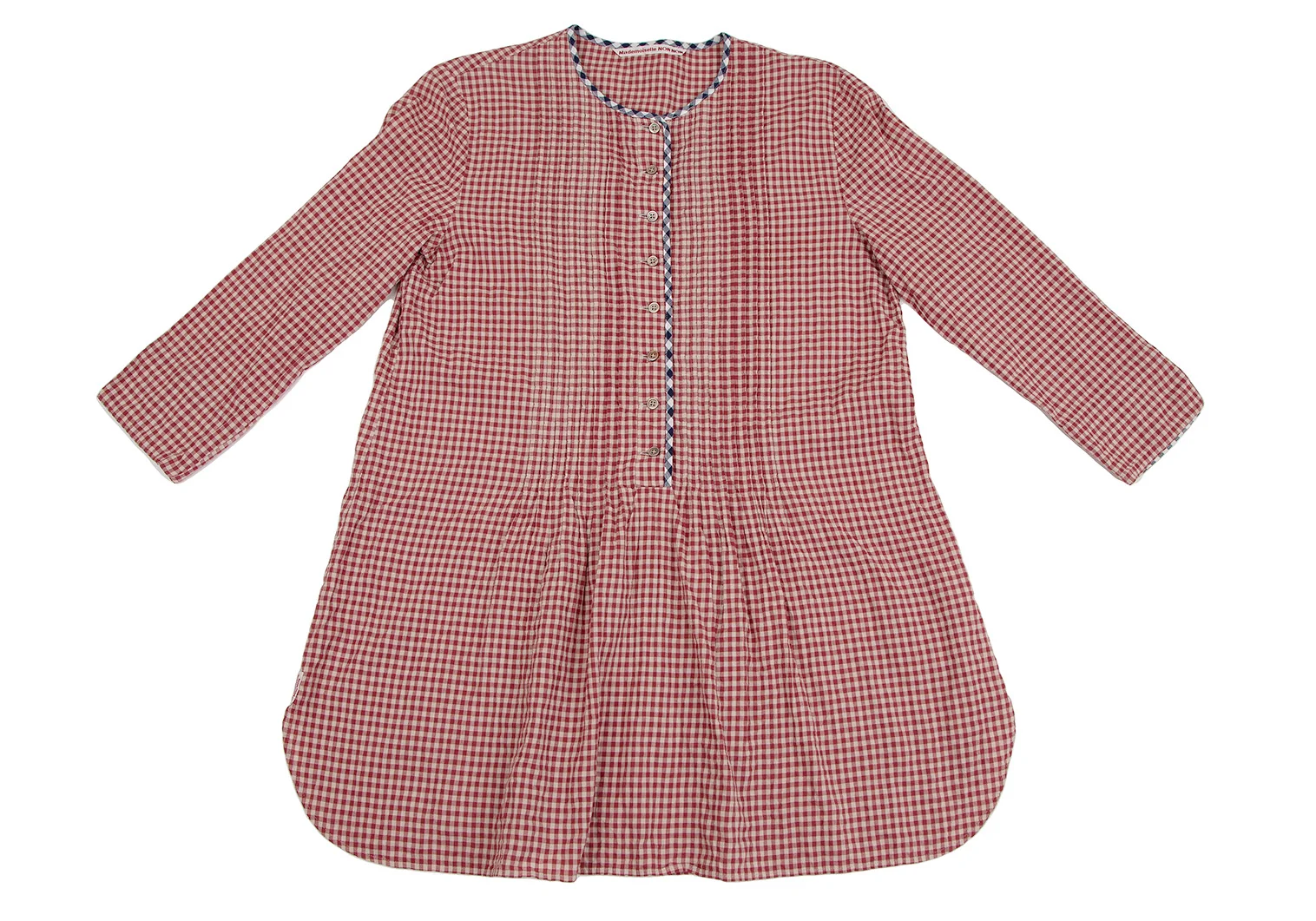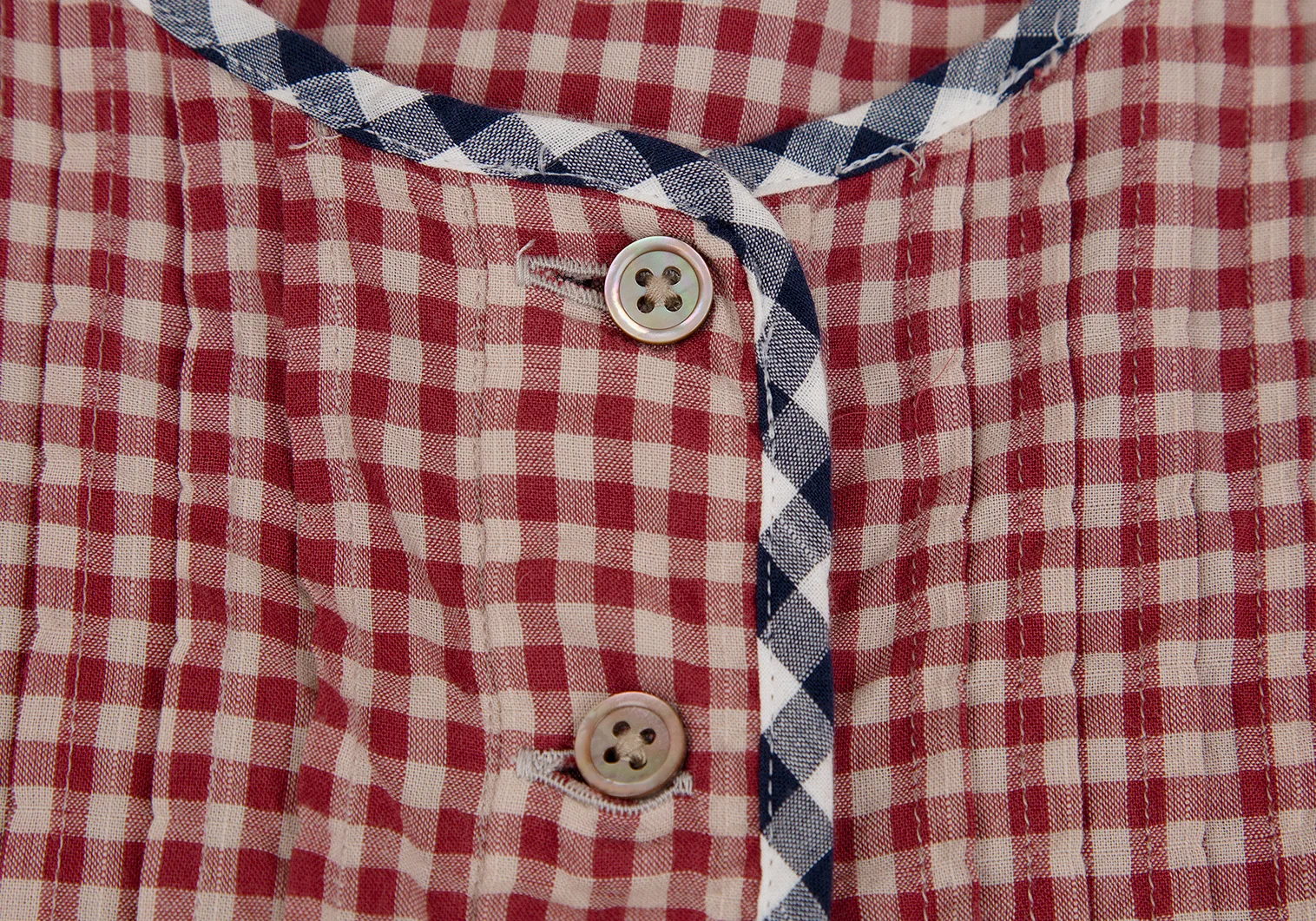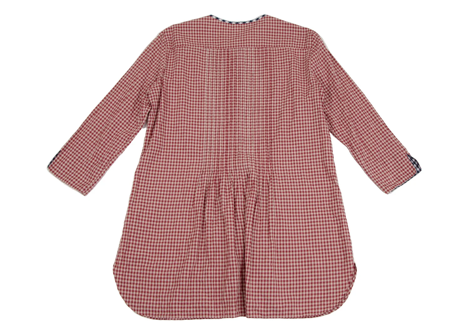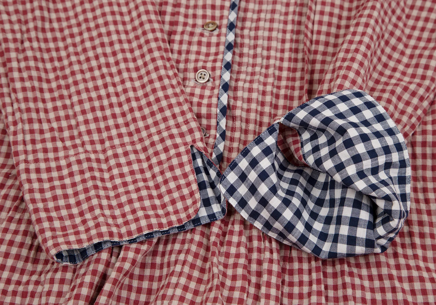 マドモアゼルノンノンMademoiselle NON NON コットンギンガムチェックパイピングプルオーバープリーツシャツチュニック エンジベージュ40L