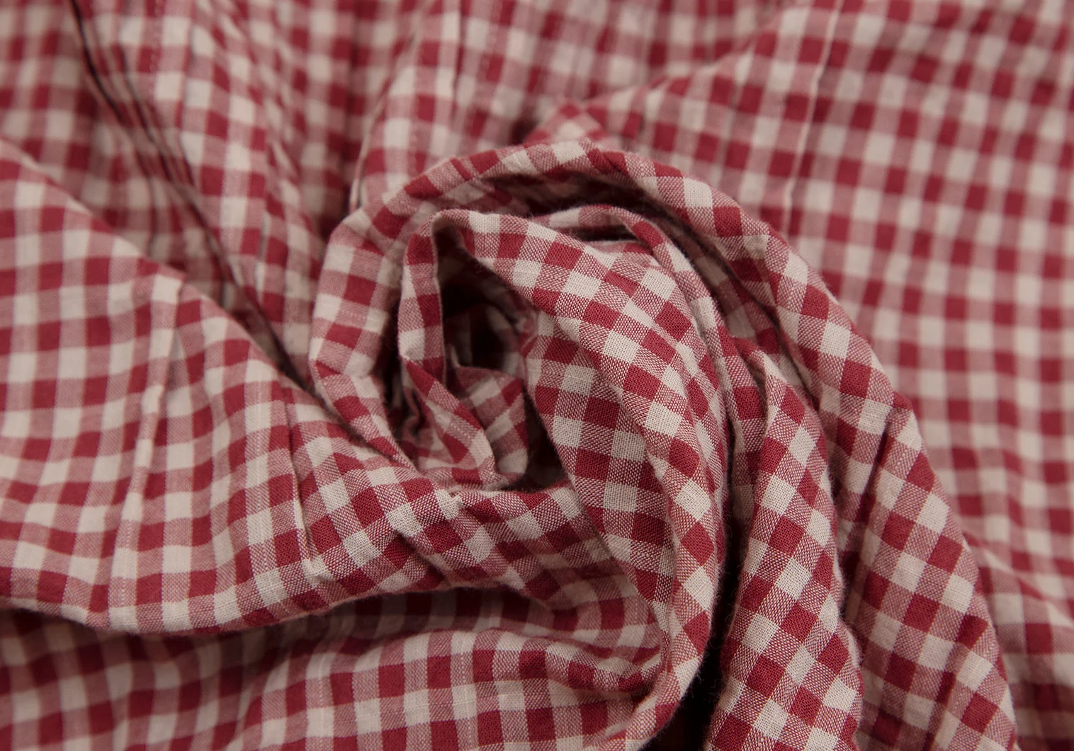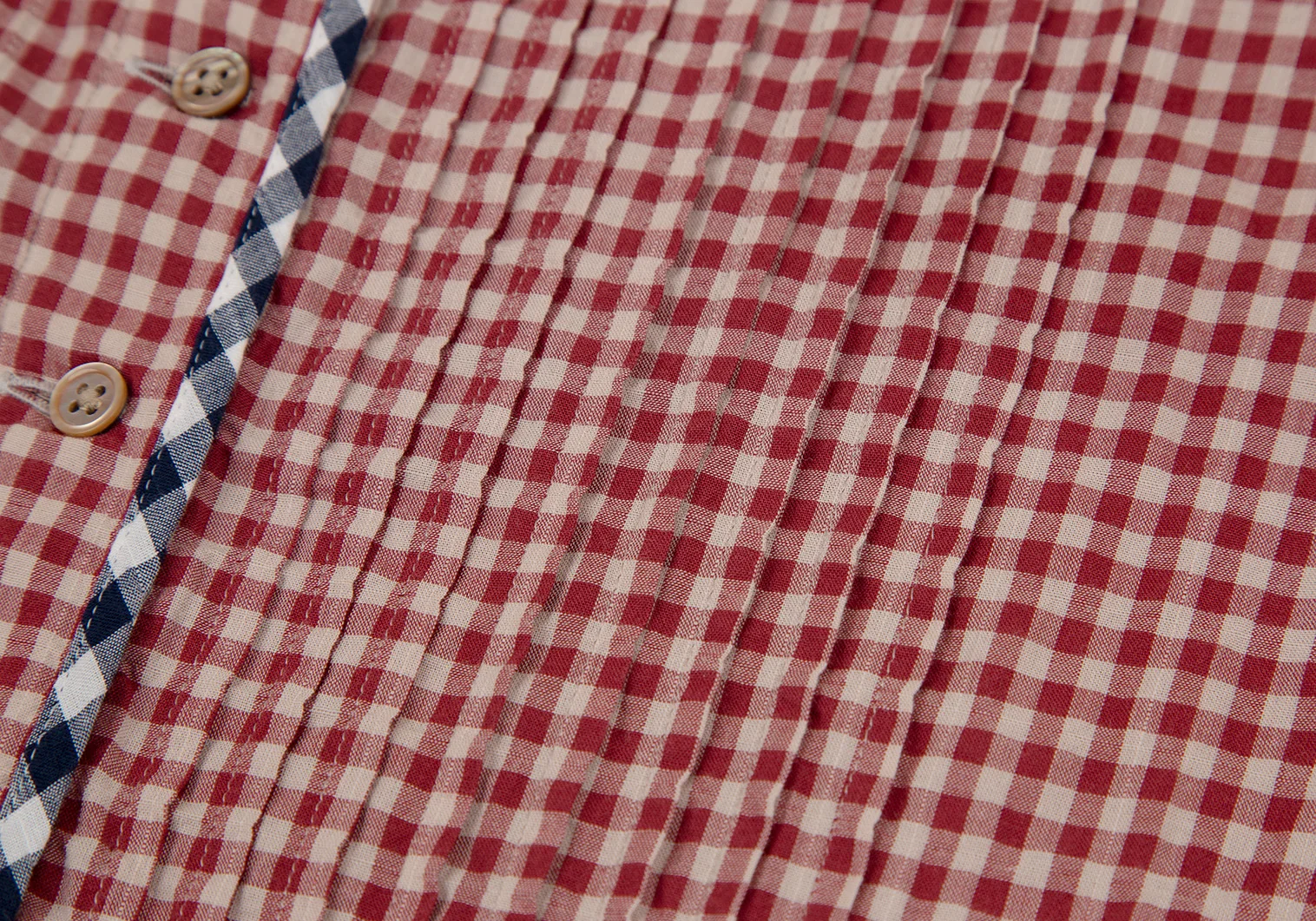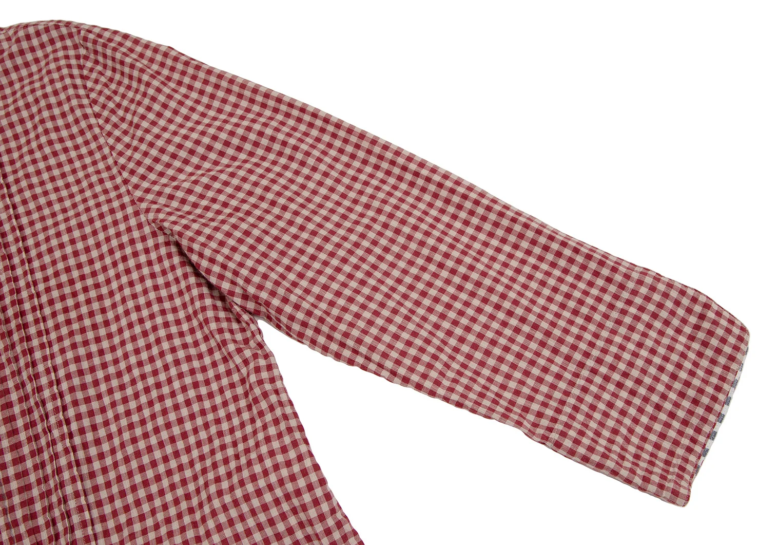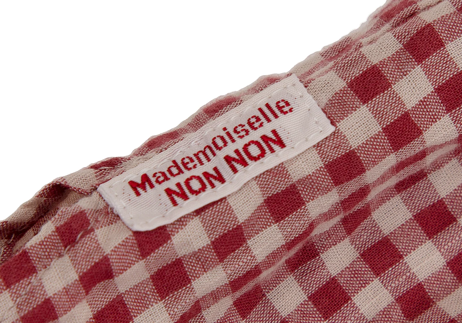 マドモアゼルノンノンMademoiselle NON NON コットンギンガムチェックパイピングプルオーバープリーツシャツチュニック エンジベージュ40L