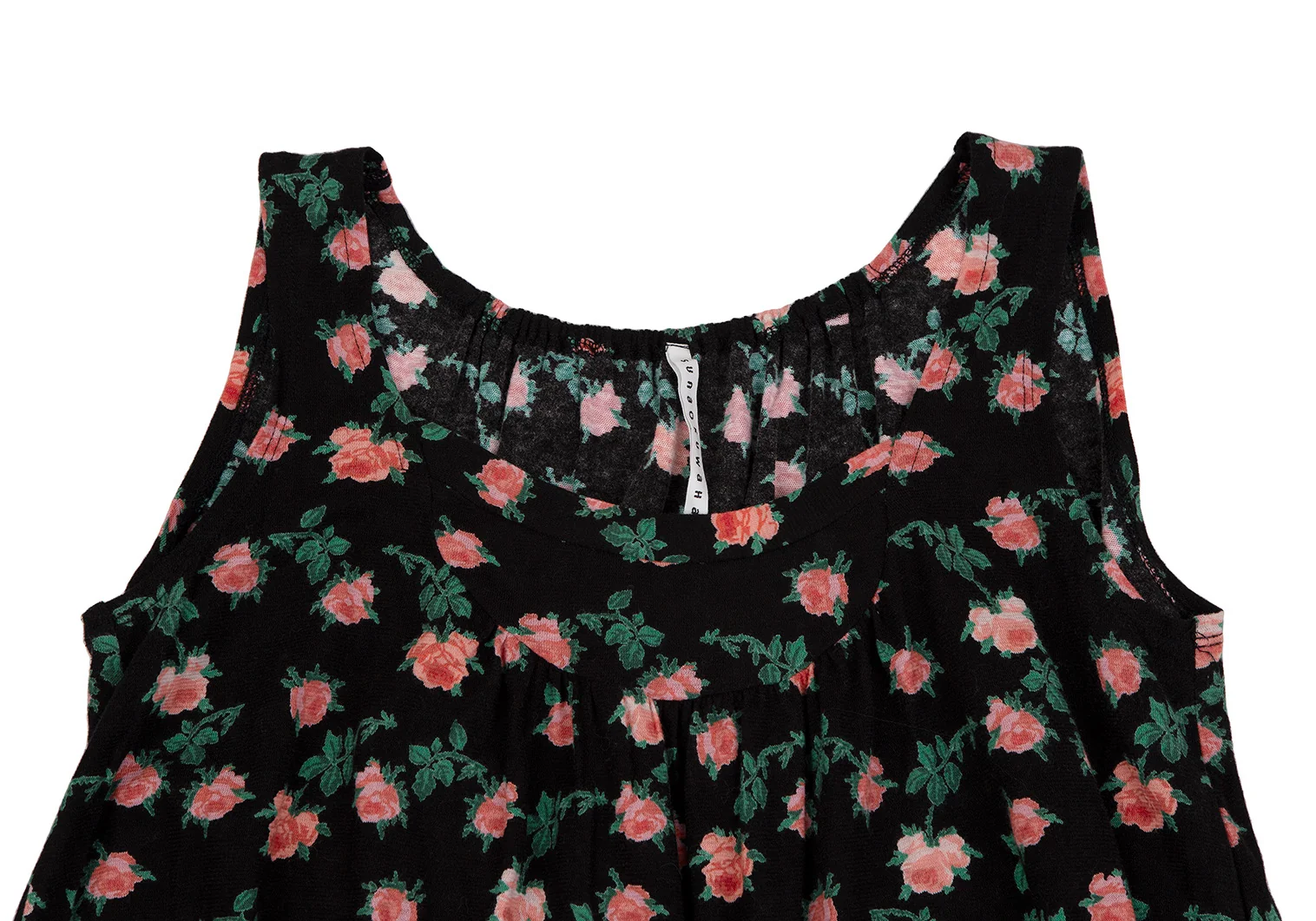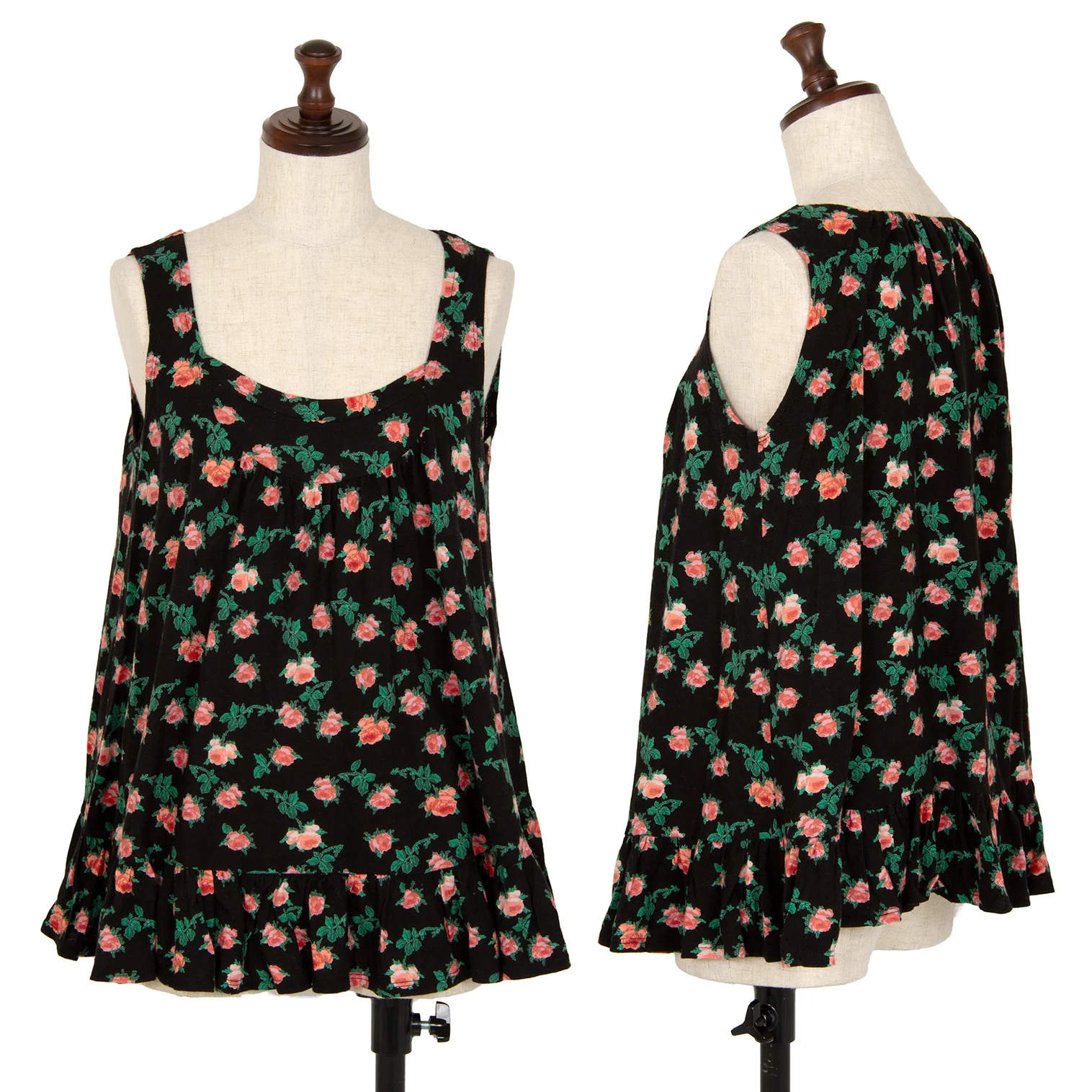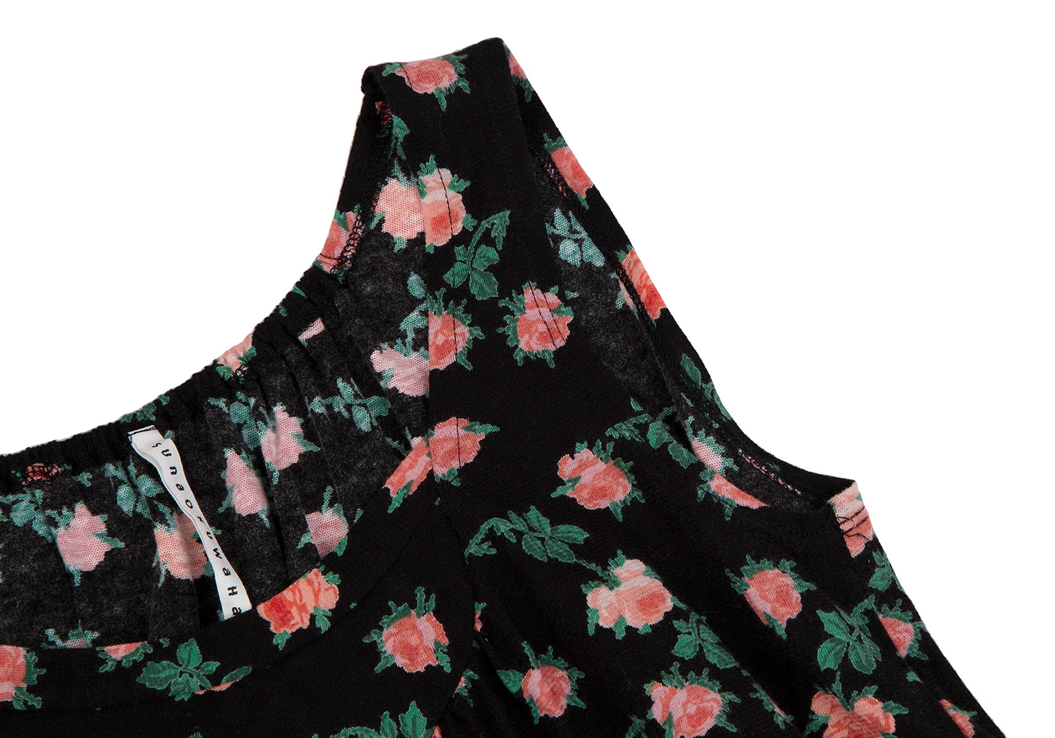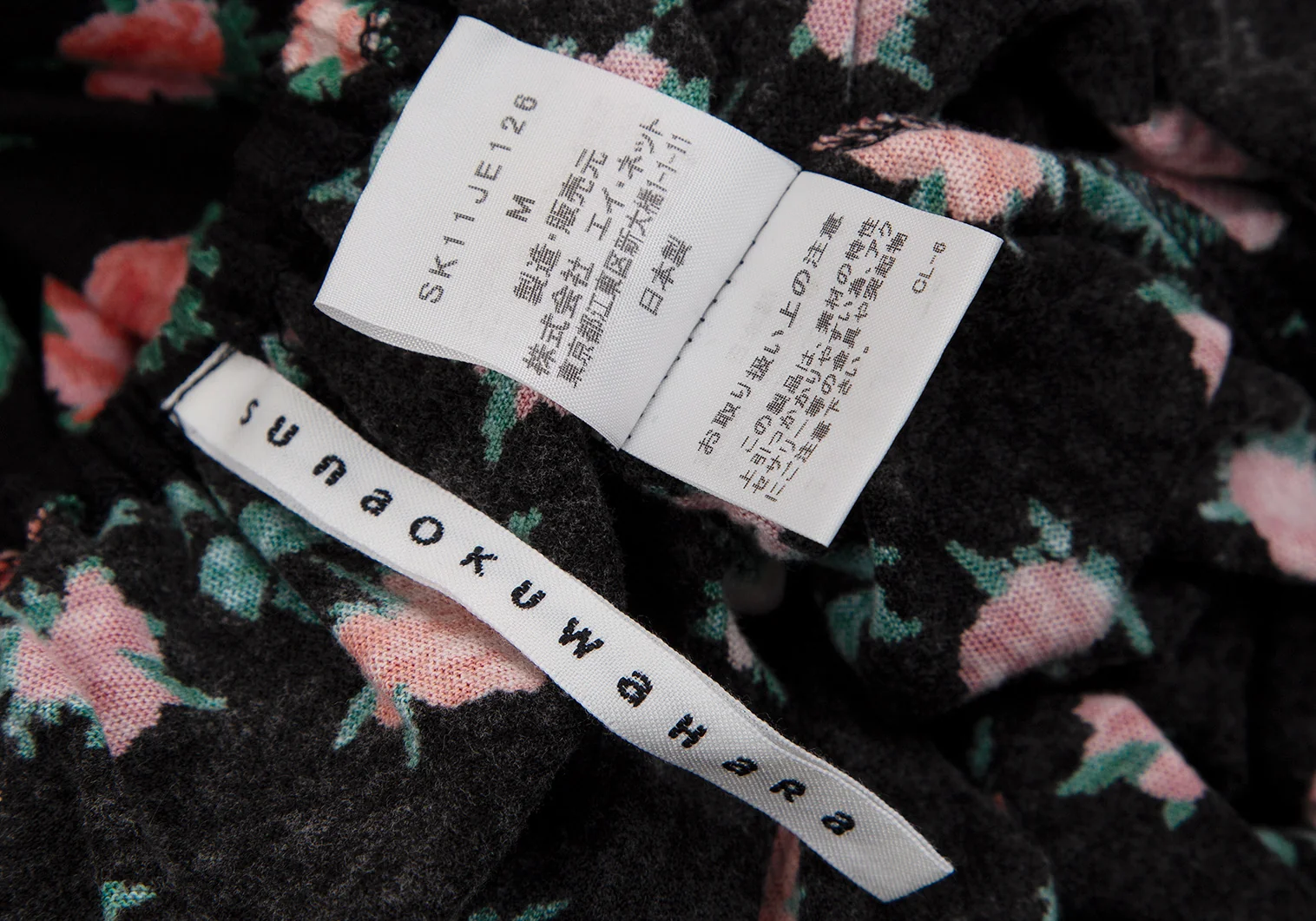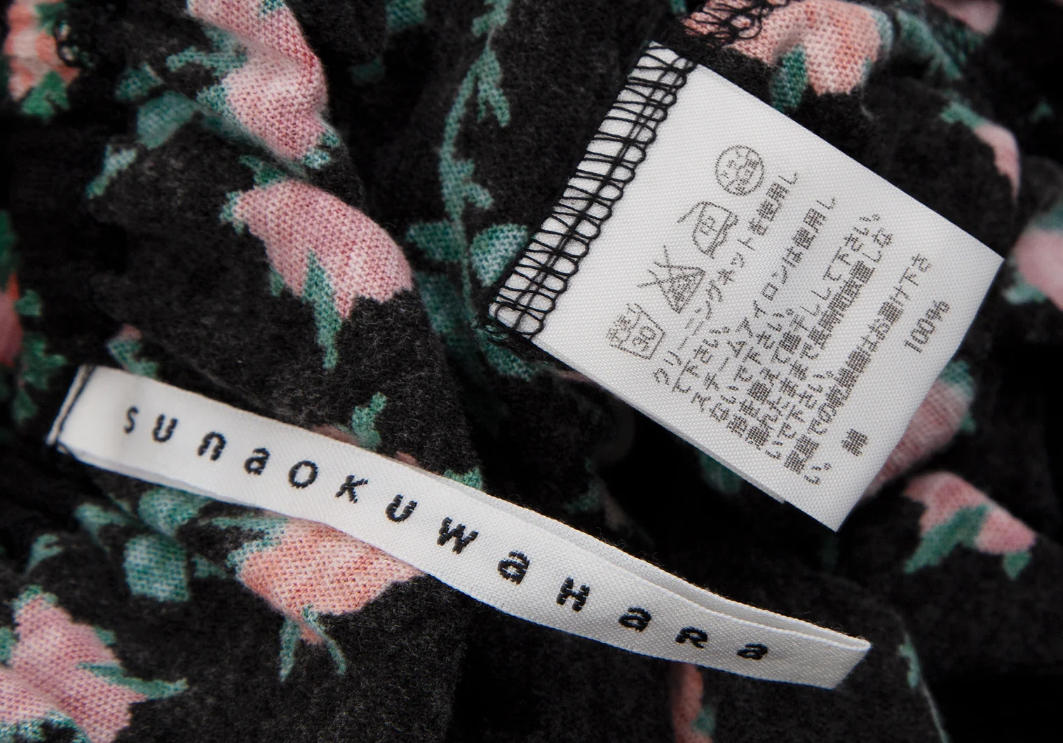 スナオクワハラsunao kuwahara コットンローズ裾フリルノースリーブトップス 黒ピンク緑M