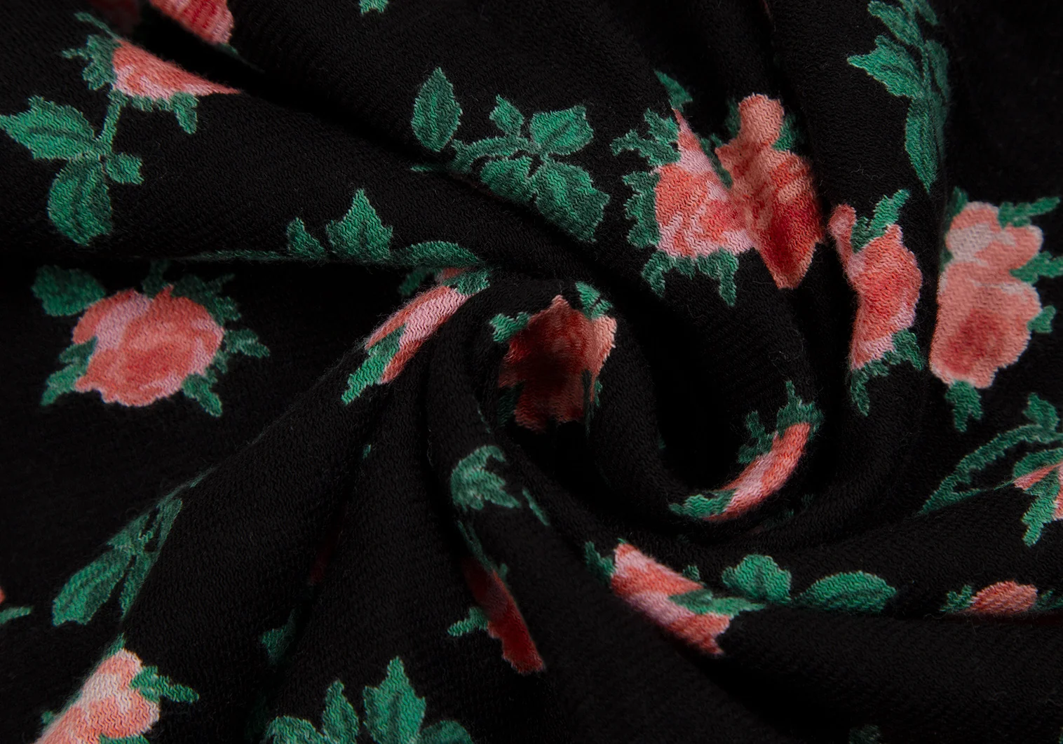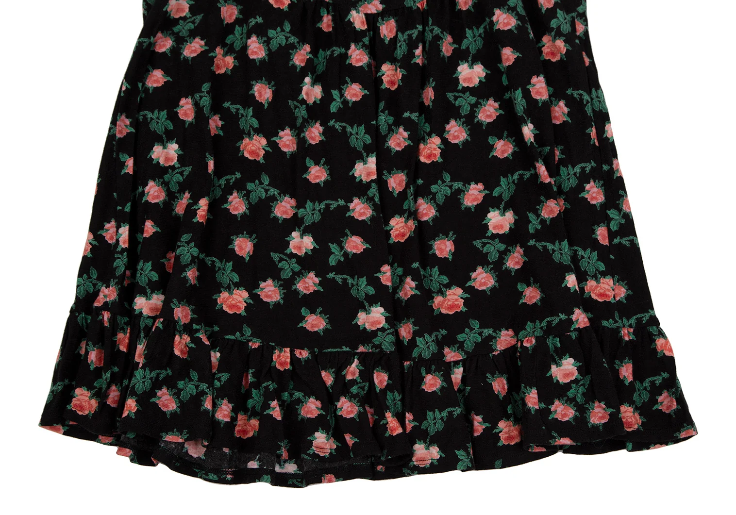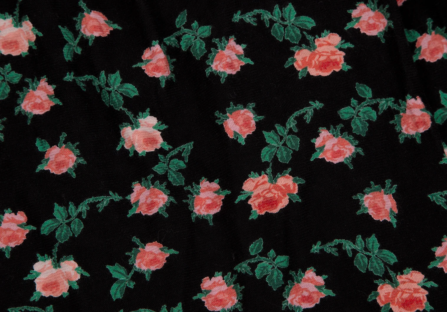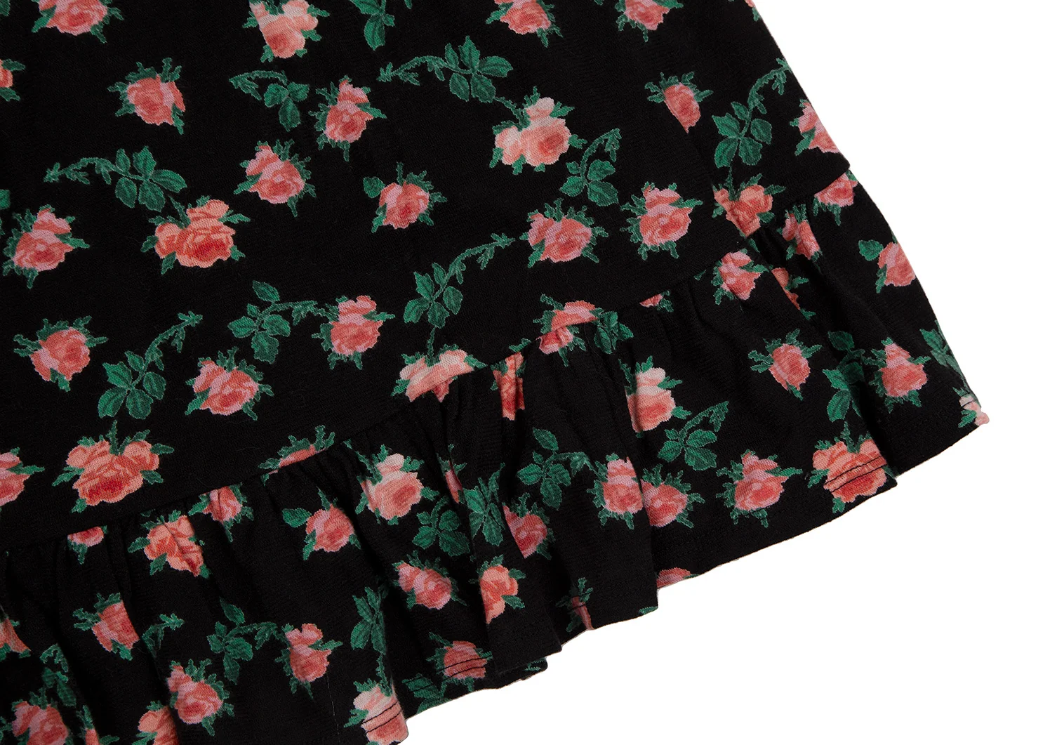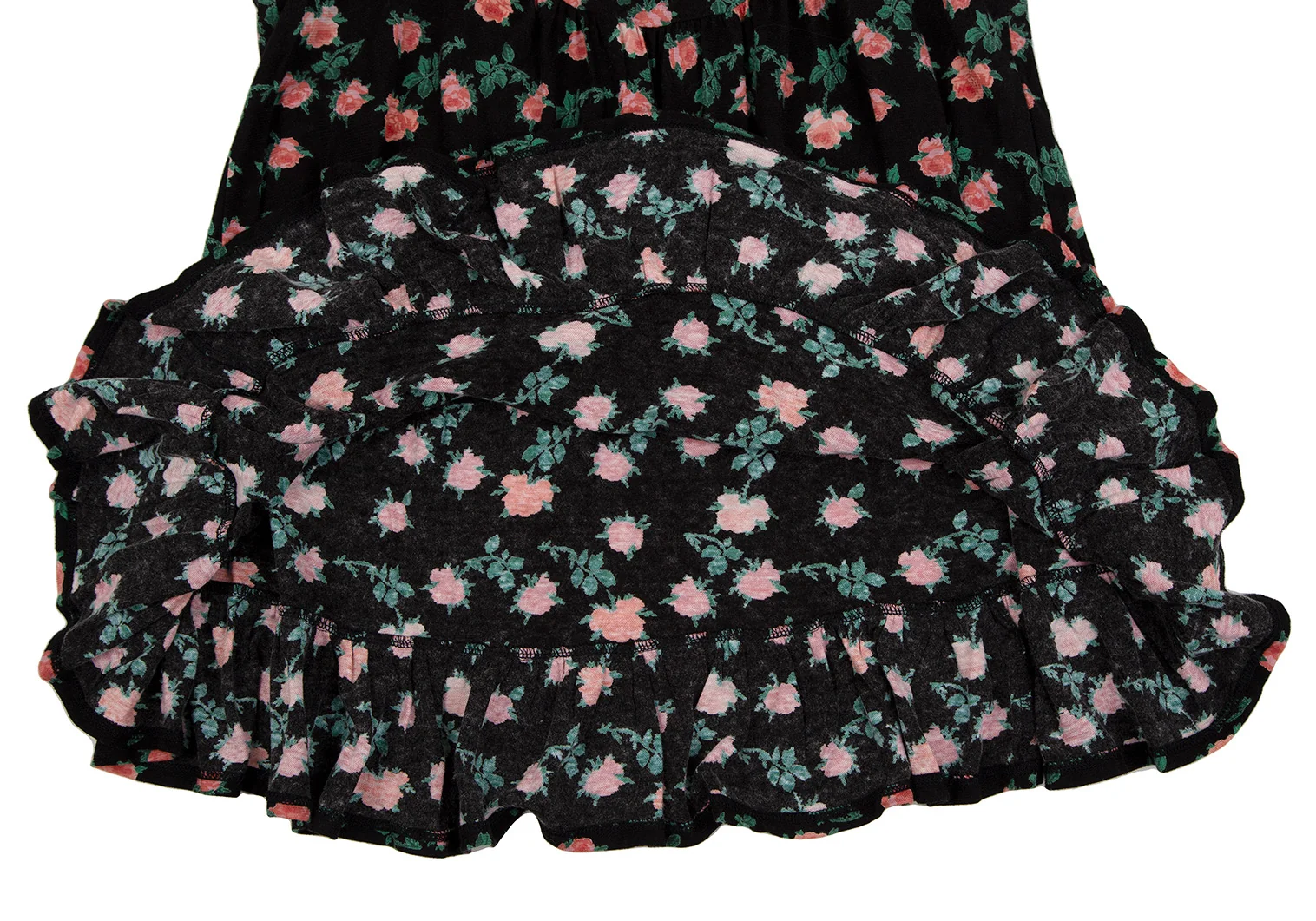 スナオクワハラsunao kuwahara コットンローズ裾フリルノースリーブトップス 黒ピンク緑M