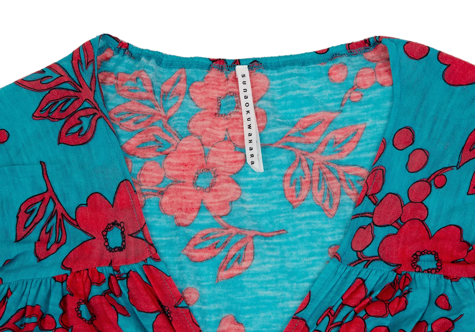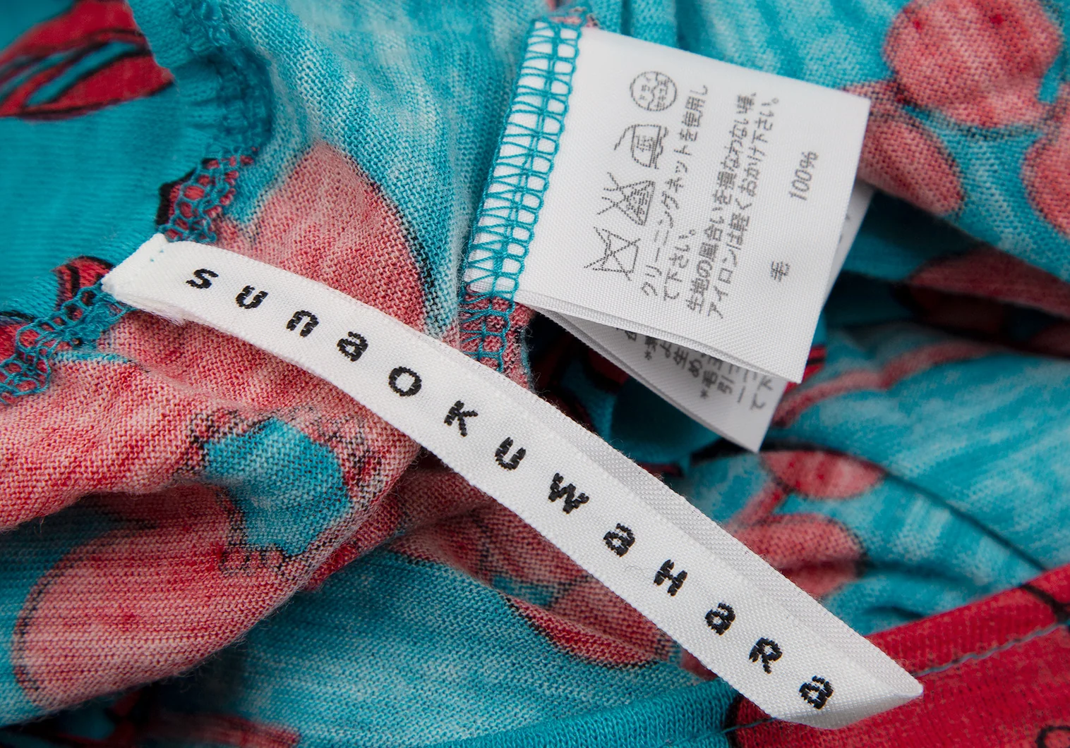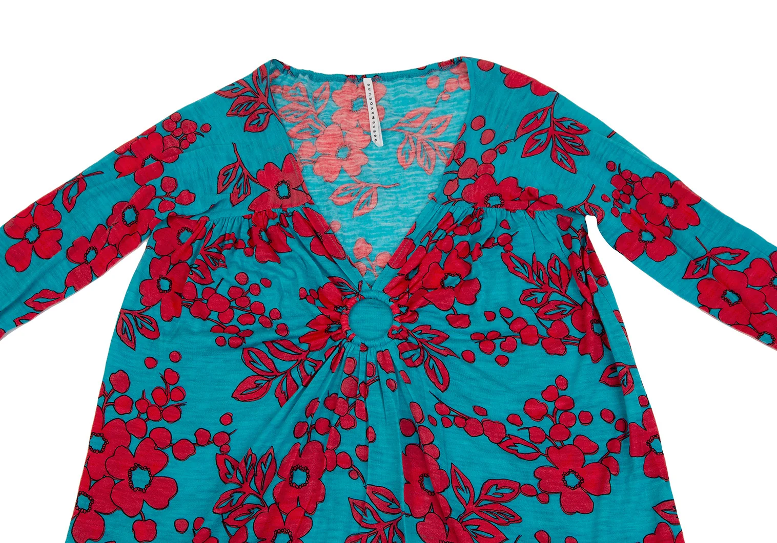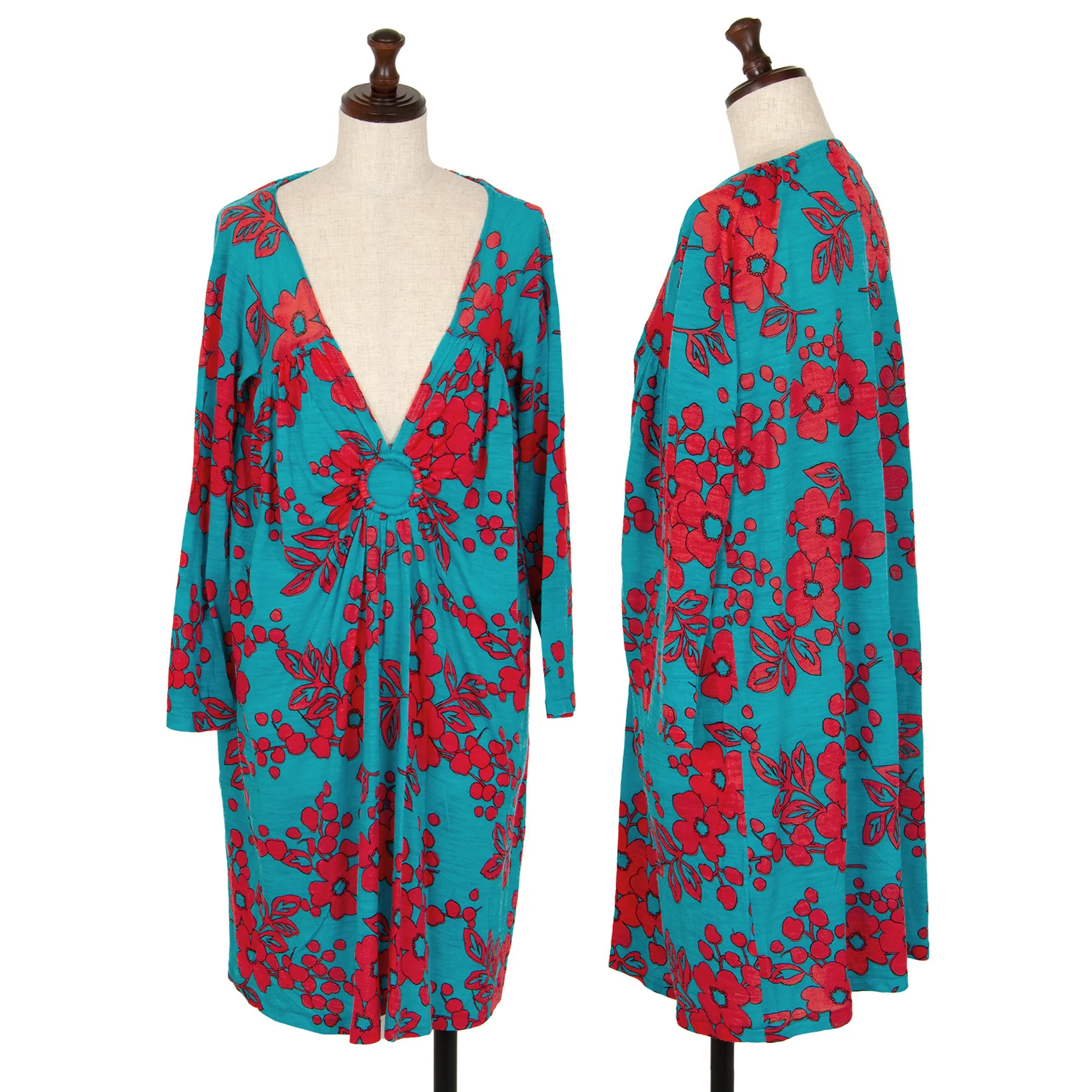 スナオクワハラsunao kuwahara ウール花柄リング装飾ワンピース ターコイズ赤M