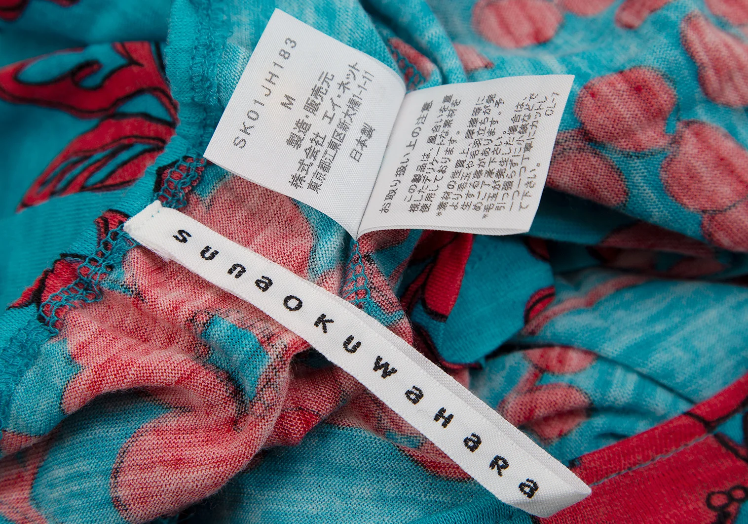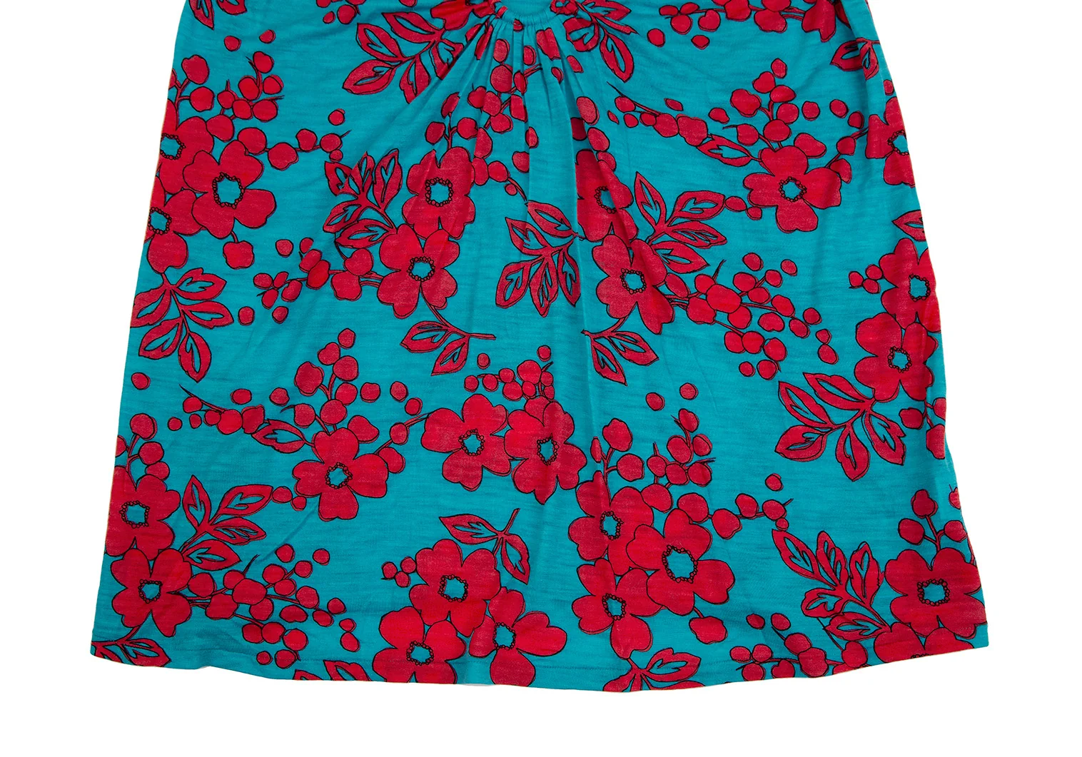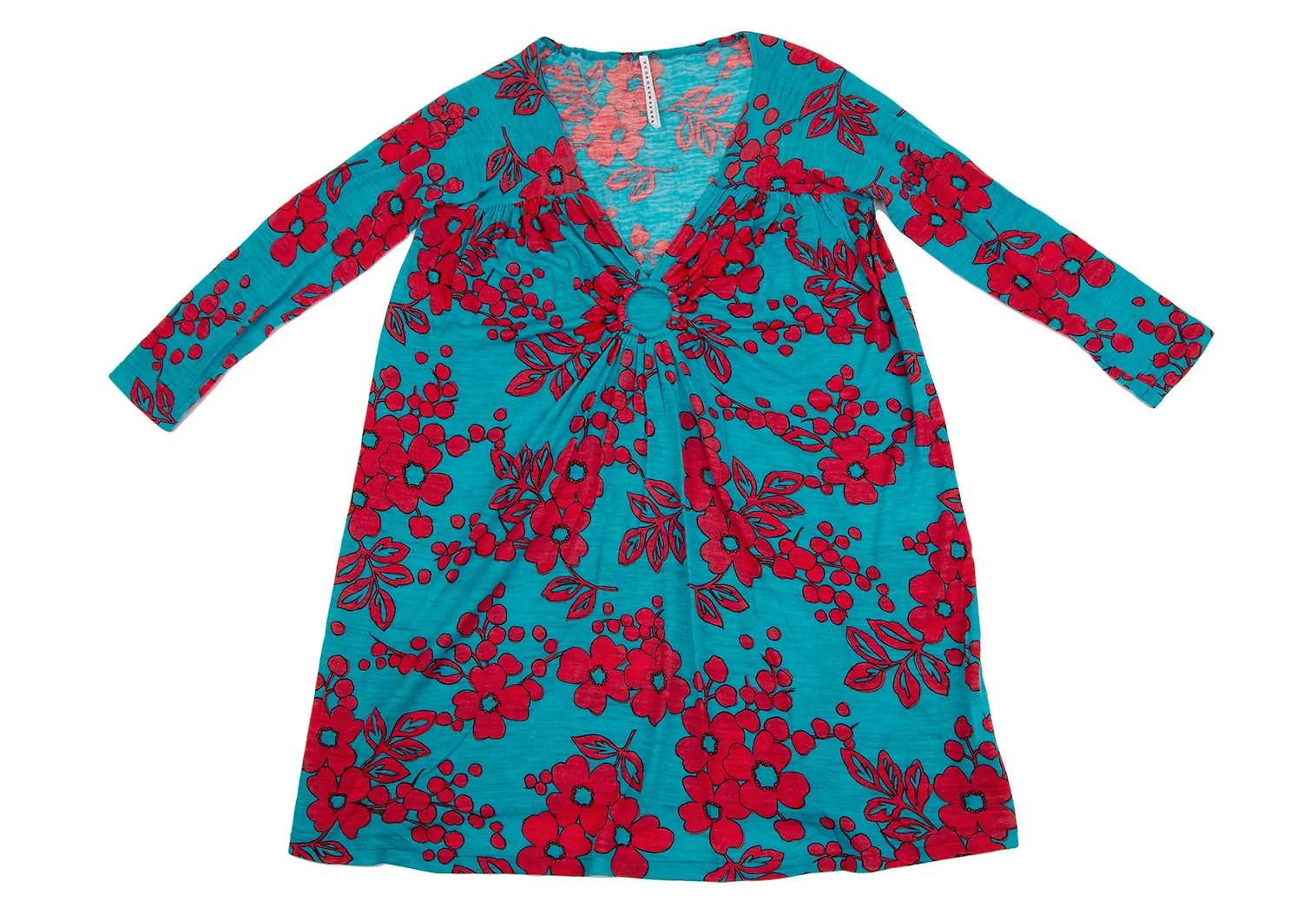 スナオクワハラsunao kuwahara ウール花柄リング装飾ワンピース ターコイズ赤M