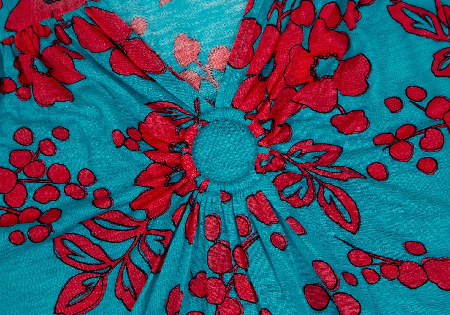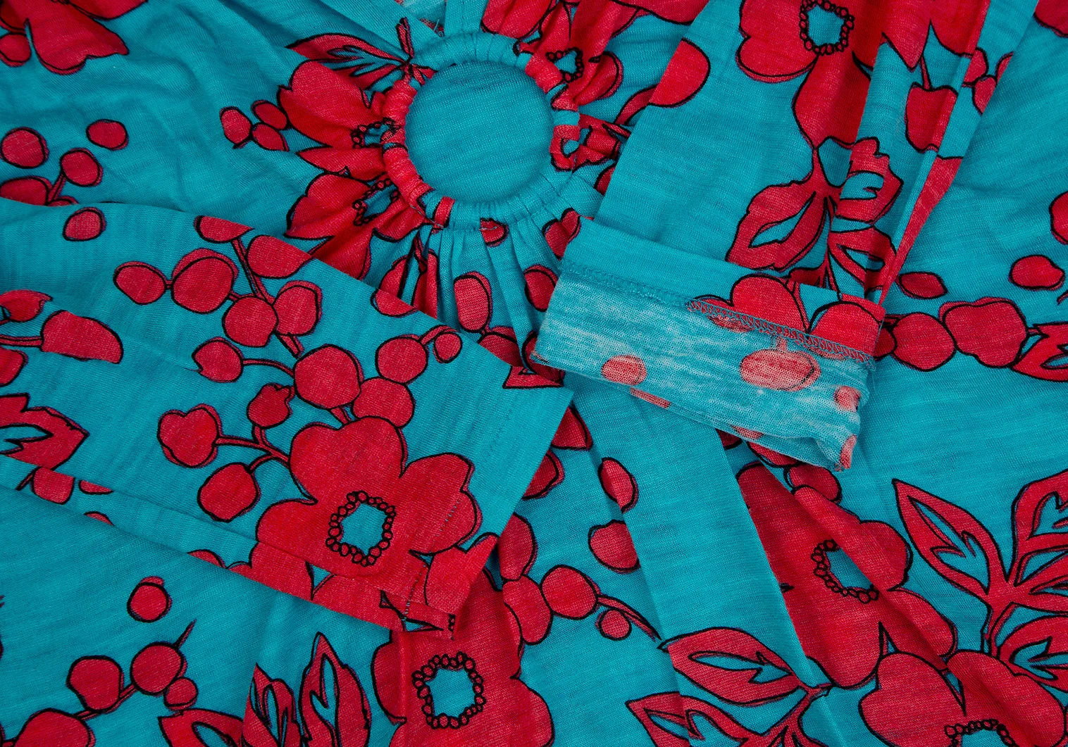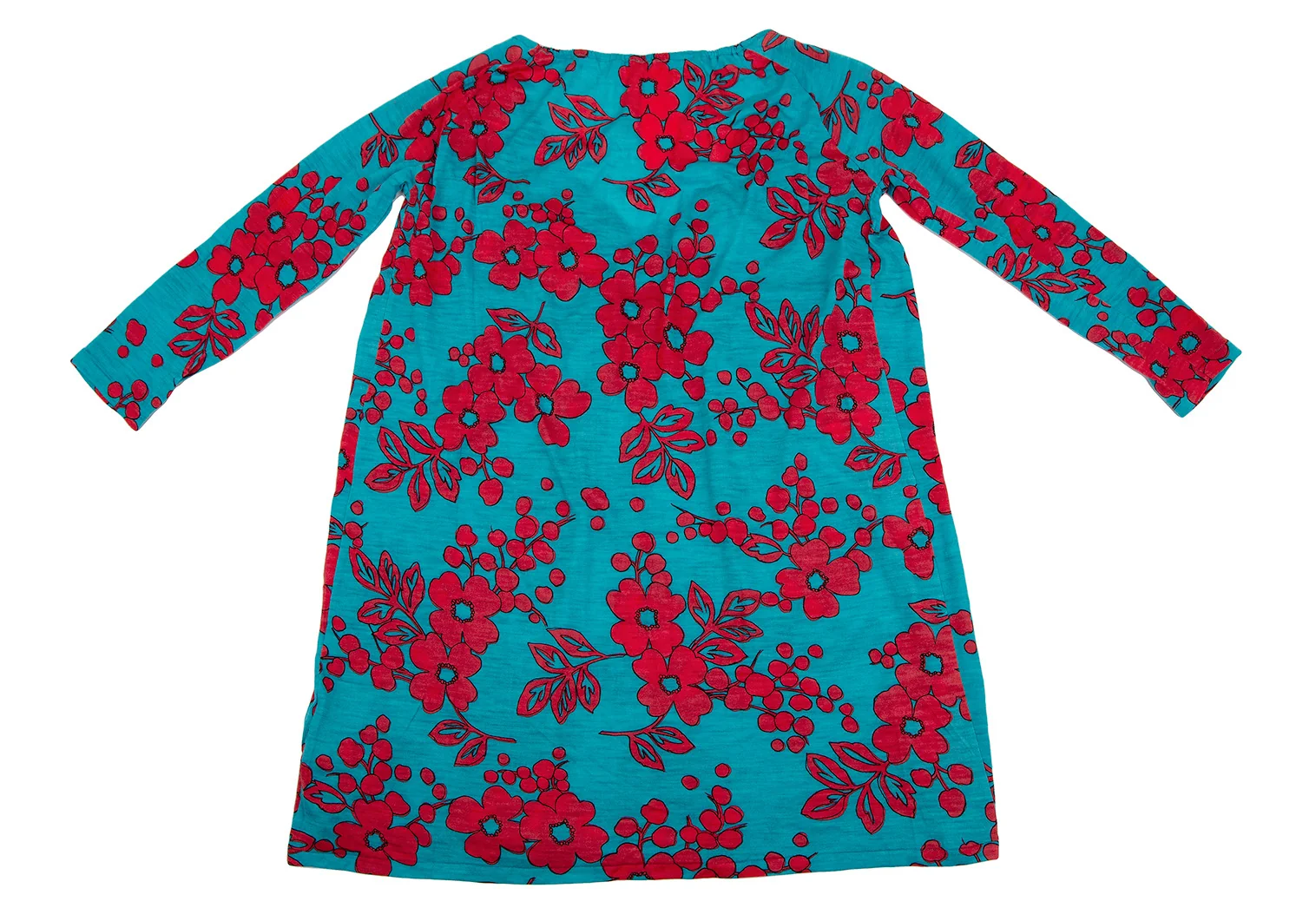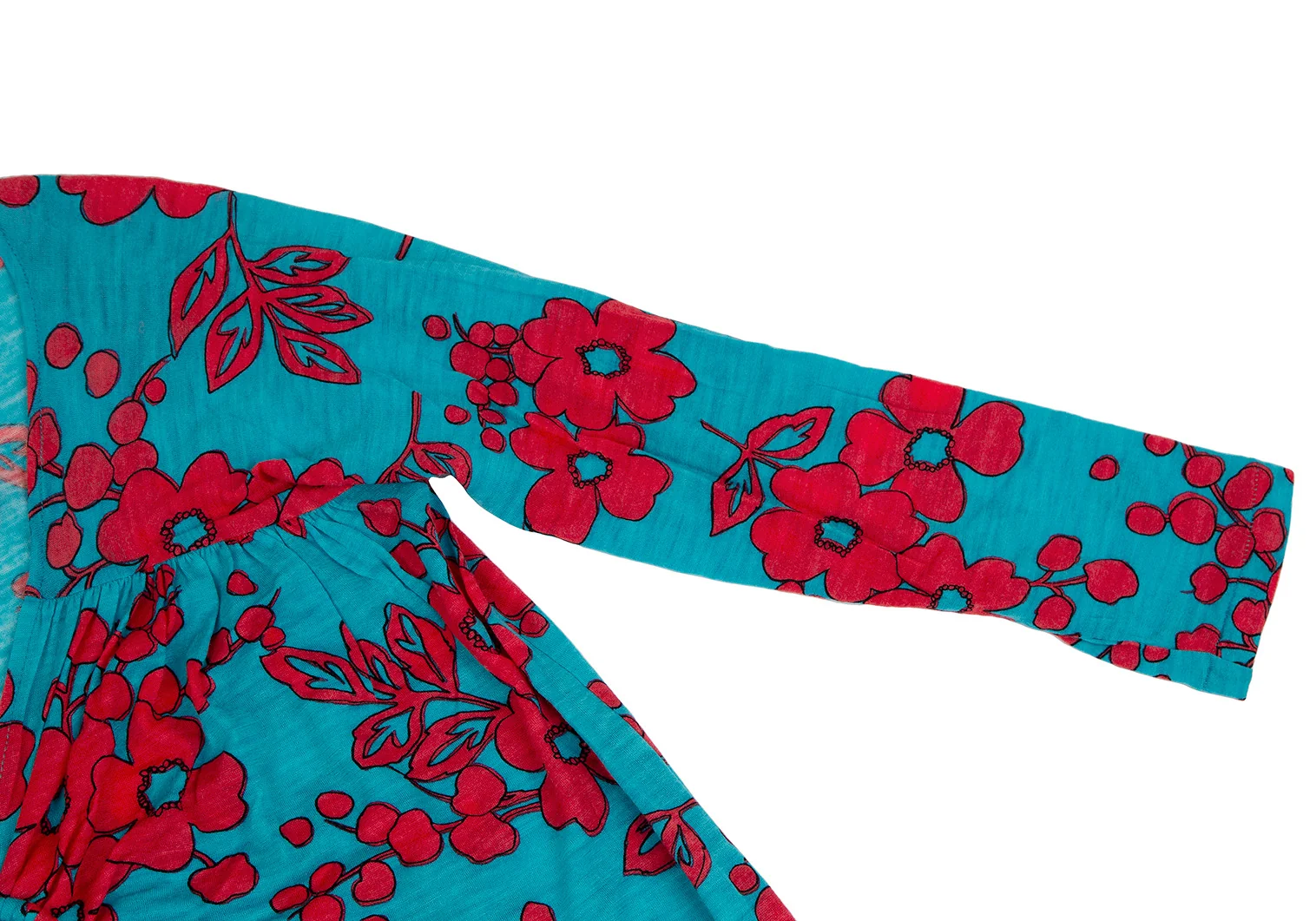 スナオクワハラsunao kuwahara ウール花柄リング装飾ワンピース ターコイズ赤M