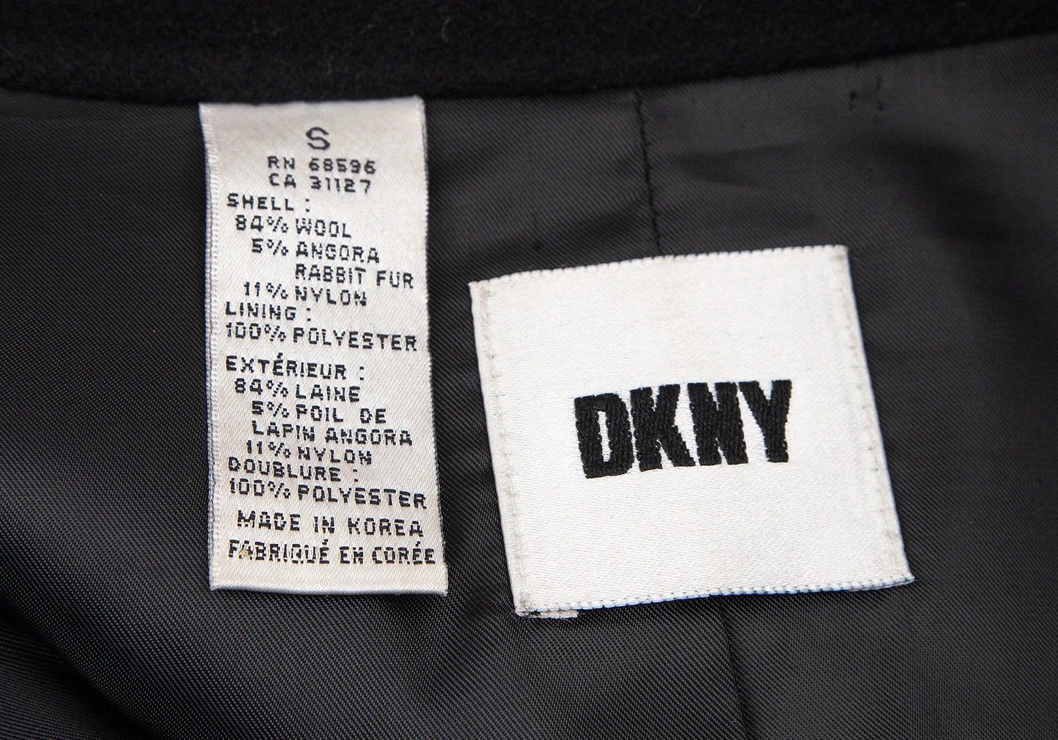 ダナキャランDKNY ウールアンゴラチェスターコート 黒S