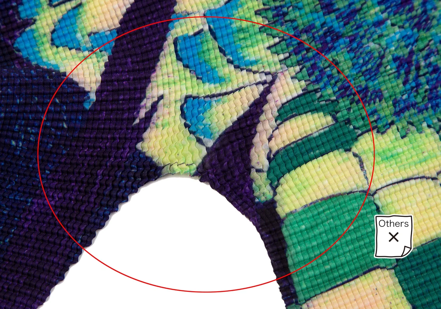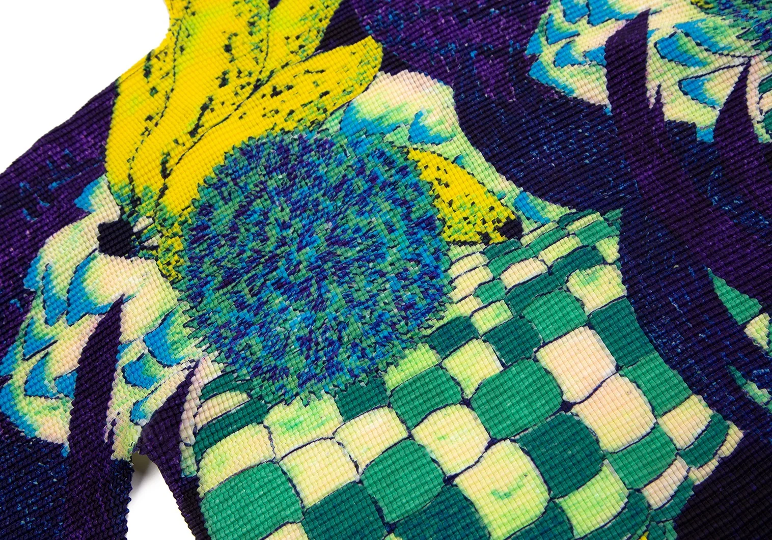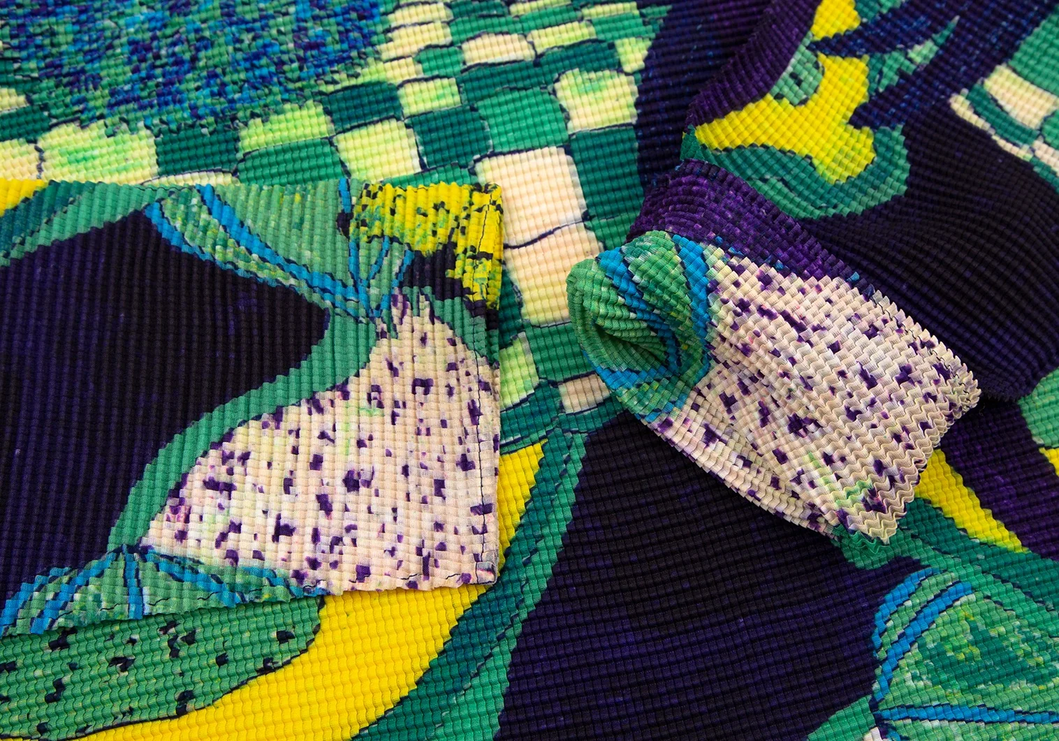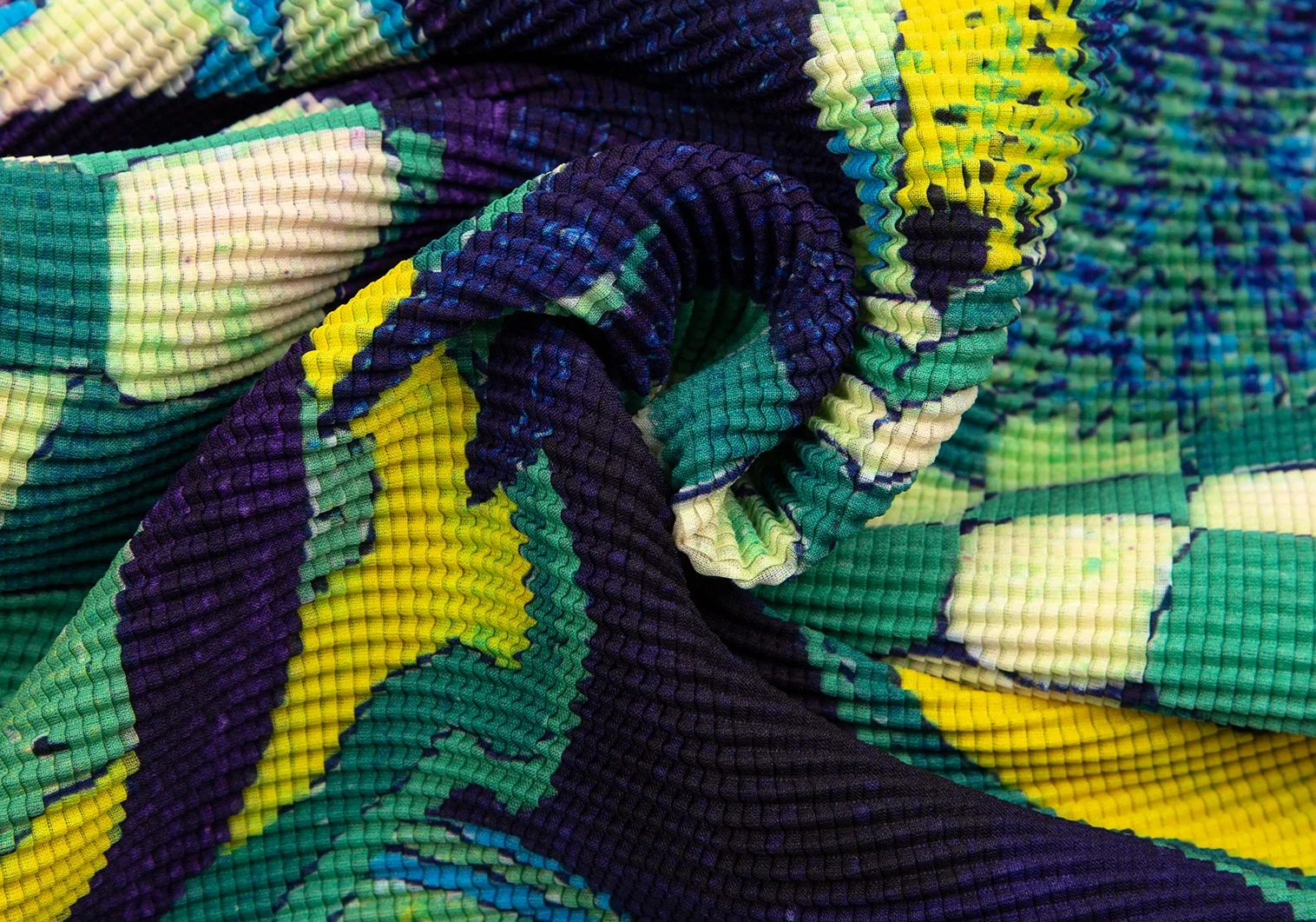 イッセイミヤケ ミーISSEY MIYAKE me トロピカルフルーツプリントストレッチプリーツハイネックカットソー 紺黄他F