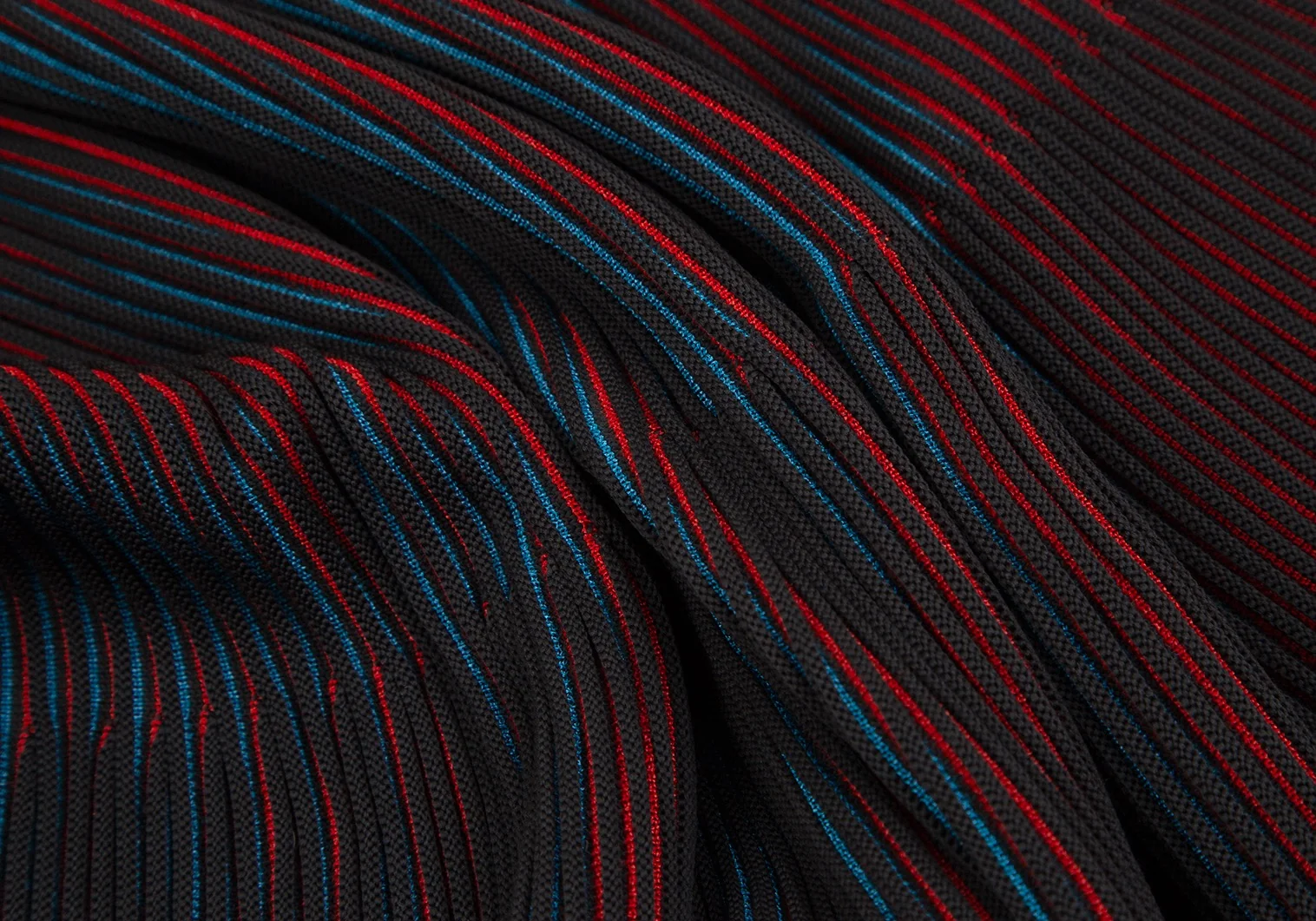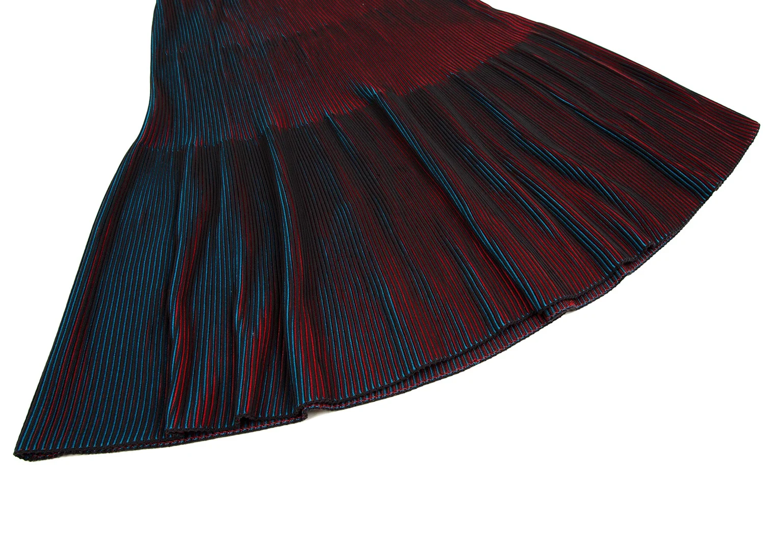 イッセイミヤケ ミーISSEY MIYAKE me ストライプリブフレアスカート 黒赤青F