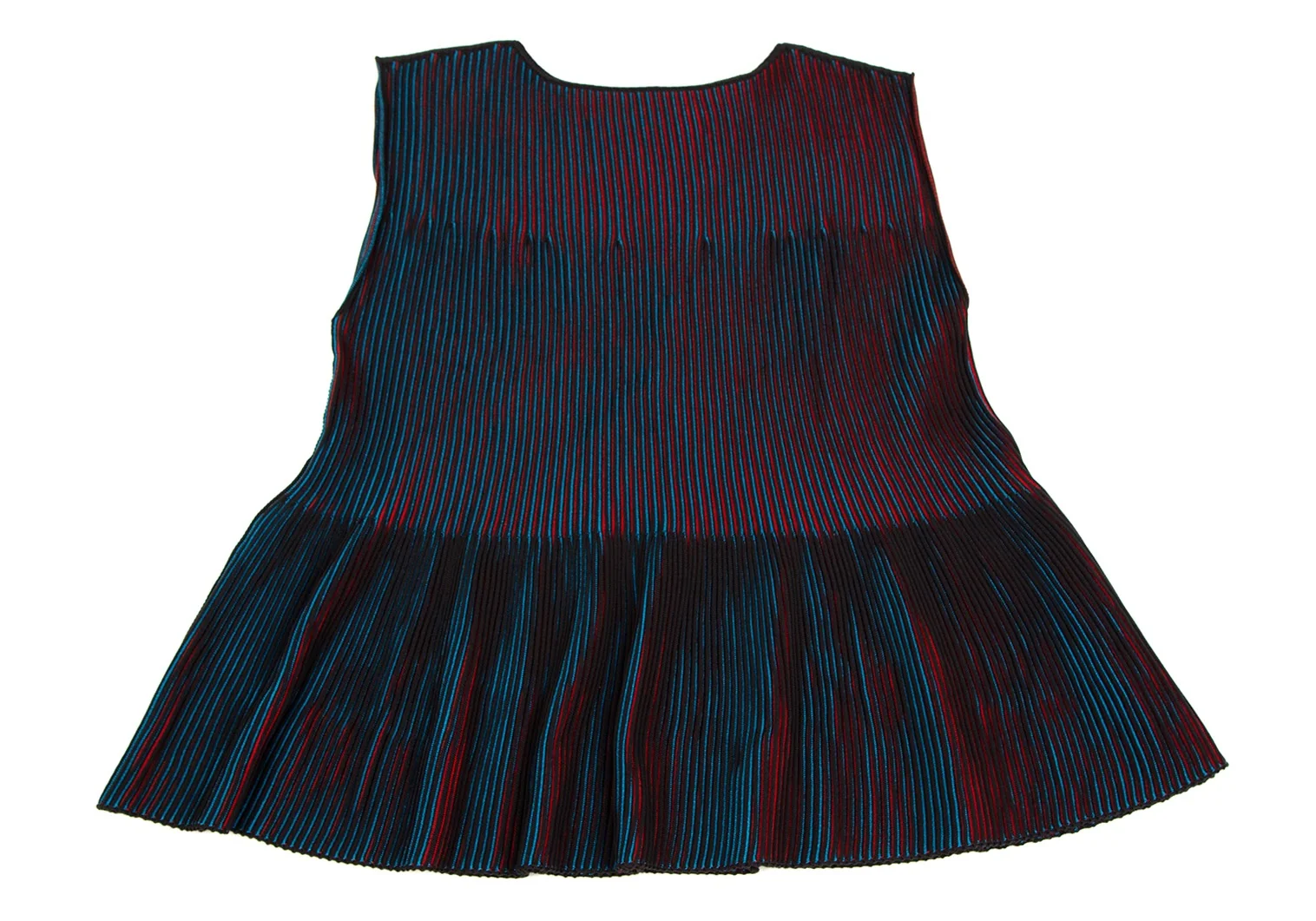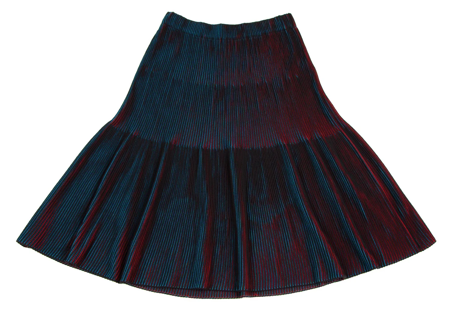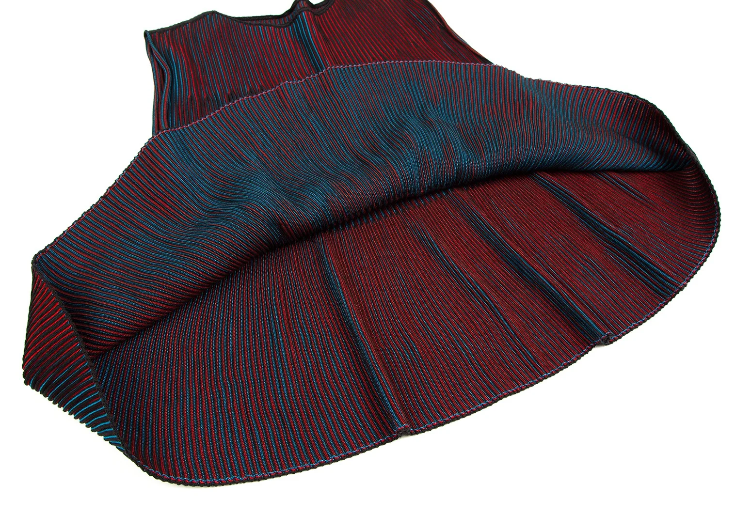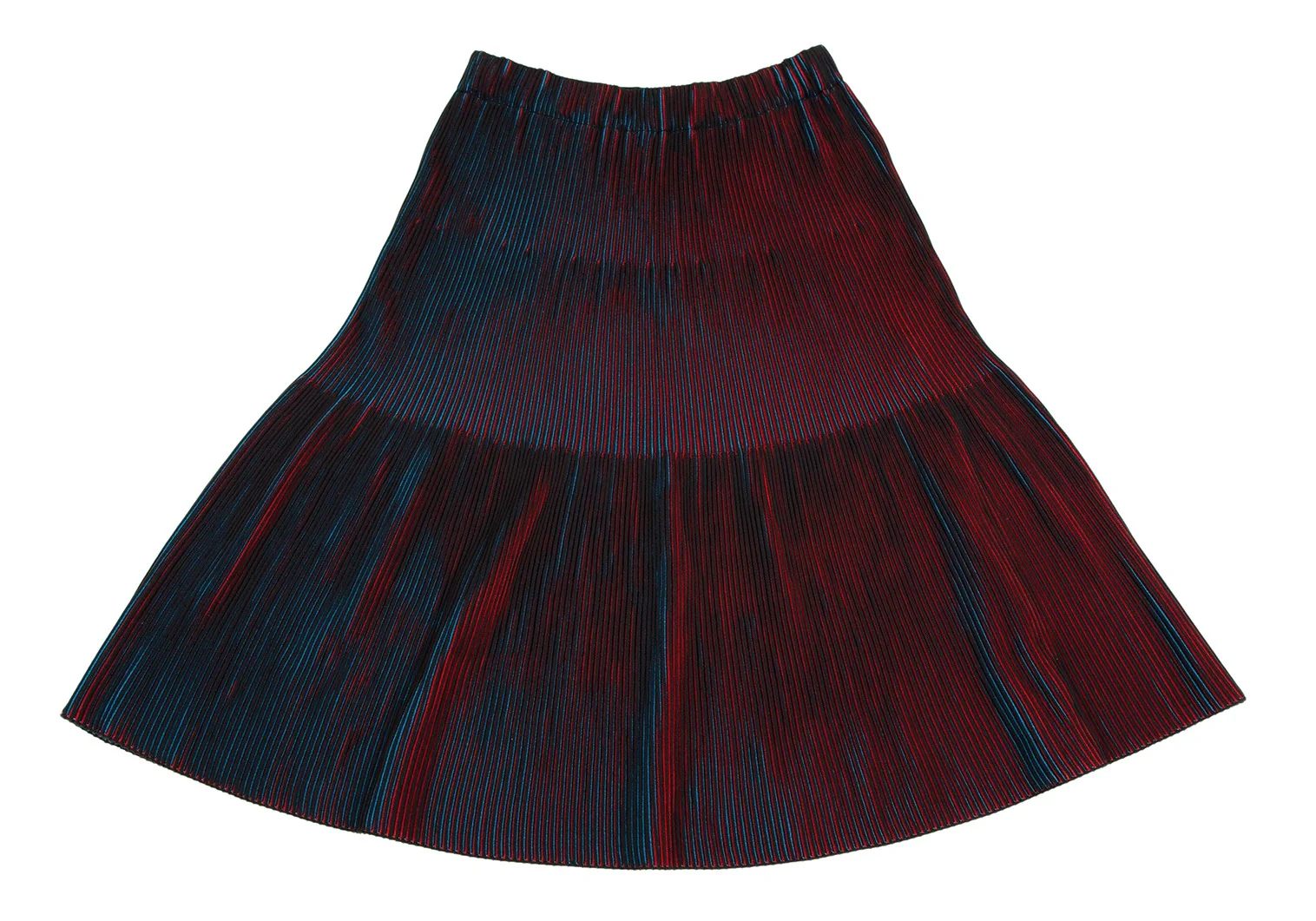 イッセイミヤケ ミーISSEY MIYAKE me ストライプリブフレアセットアップ 黒赤青F