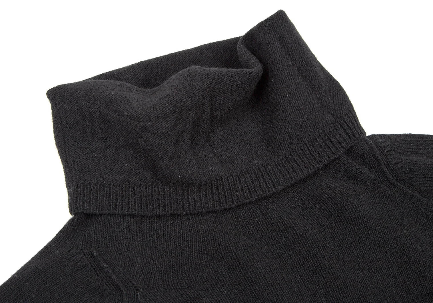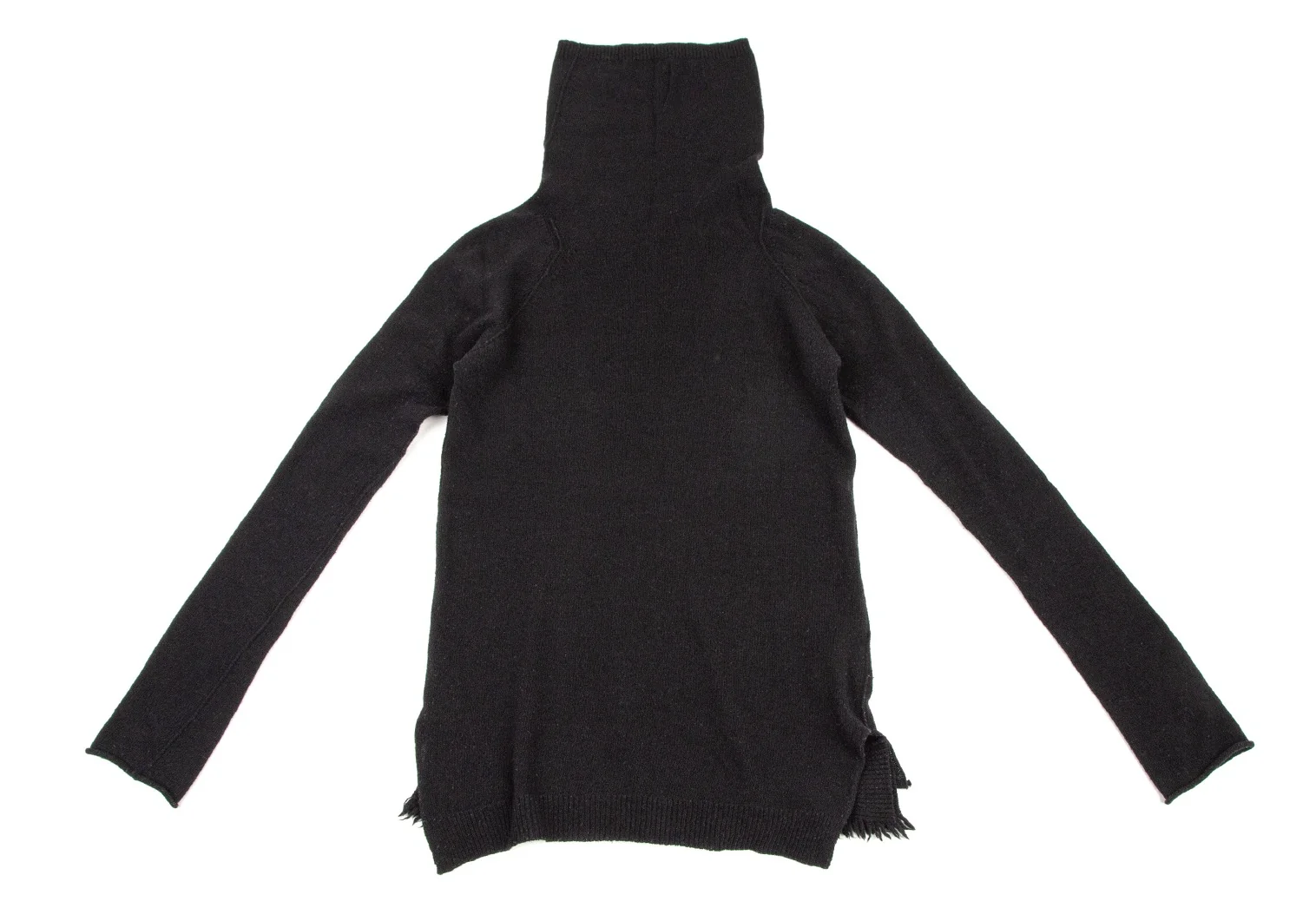ワイズY's ウール裾フリンジタートルネックニット 黒2