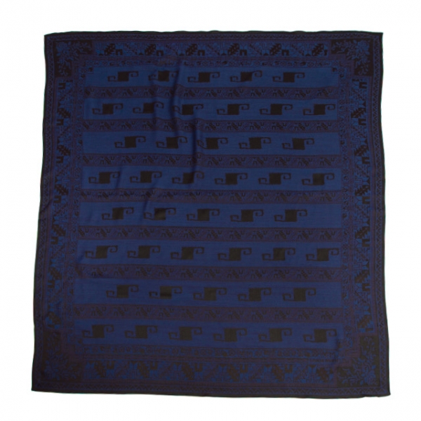 ソニアリキエルSONIA RYKIEL ウールシルクジャガード大判スカーフ 青チャコール