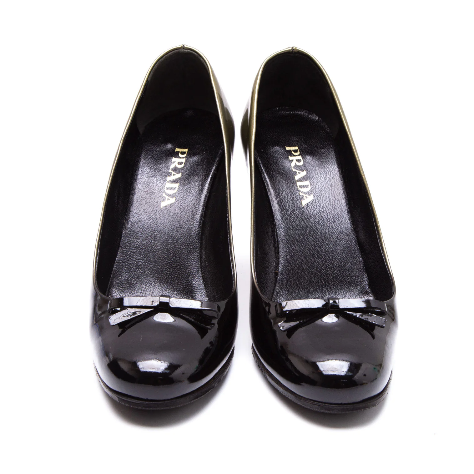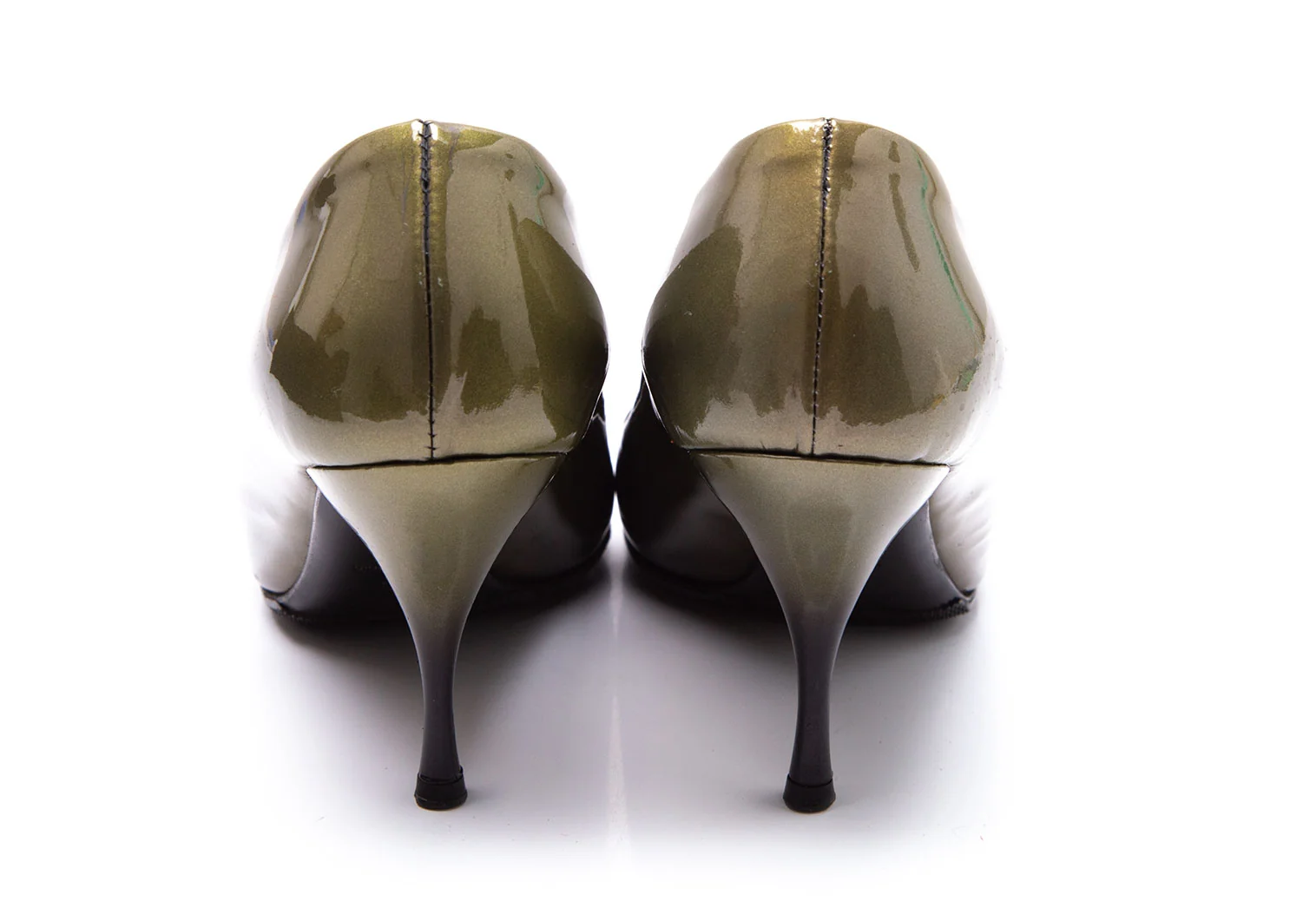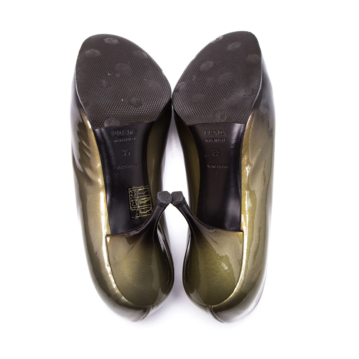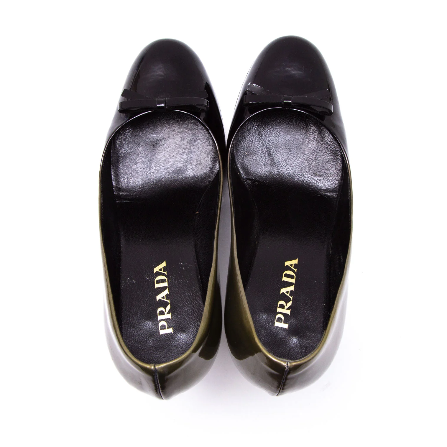 プラダPRADA グラデーションエナメルヒールパンプス ブロンズ黒35(22.5位)