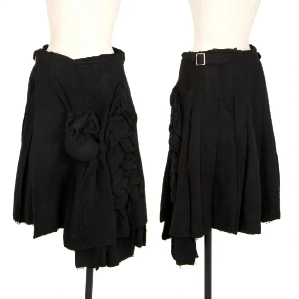 新品!コムデギャルソンCOMME des GARCONS製品染めノット装飾コットン巻きプリーツスカート 黒M