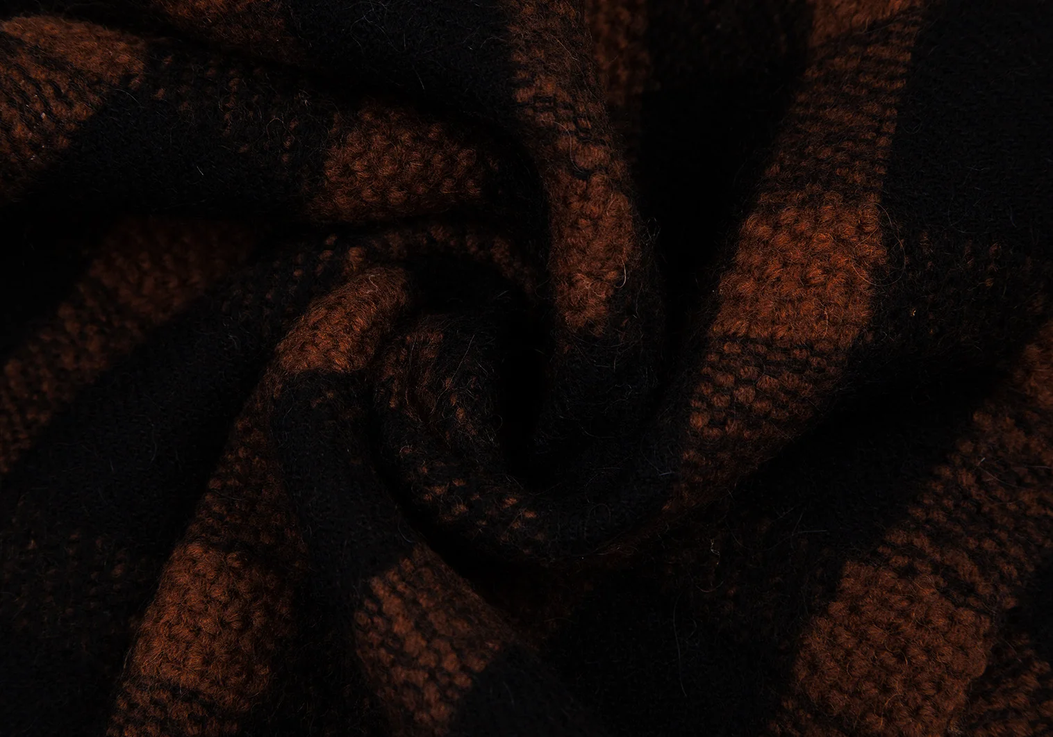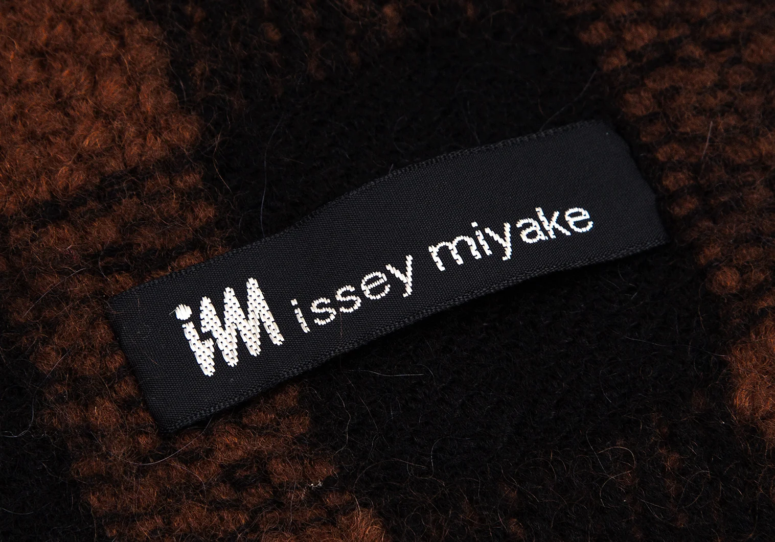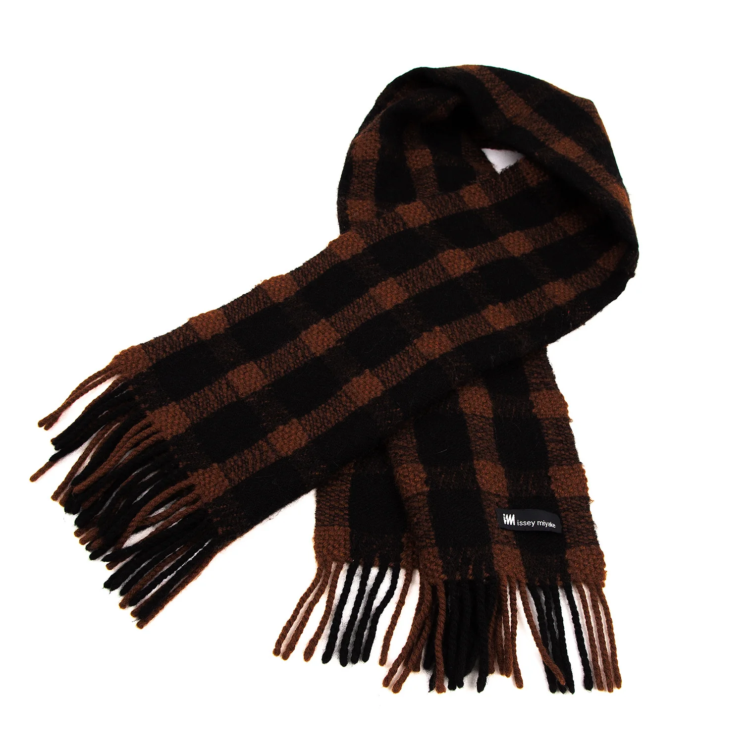 イッセイミヤケISSEY MIYAKE ブロックチェックフリンジニットマフラー 茶黒