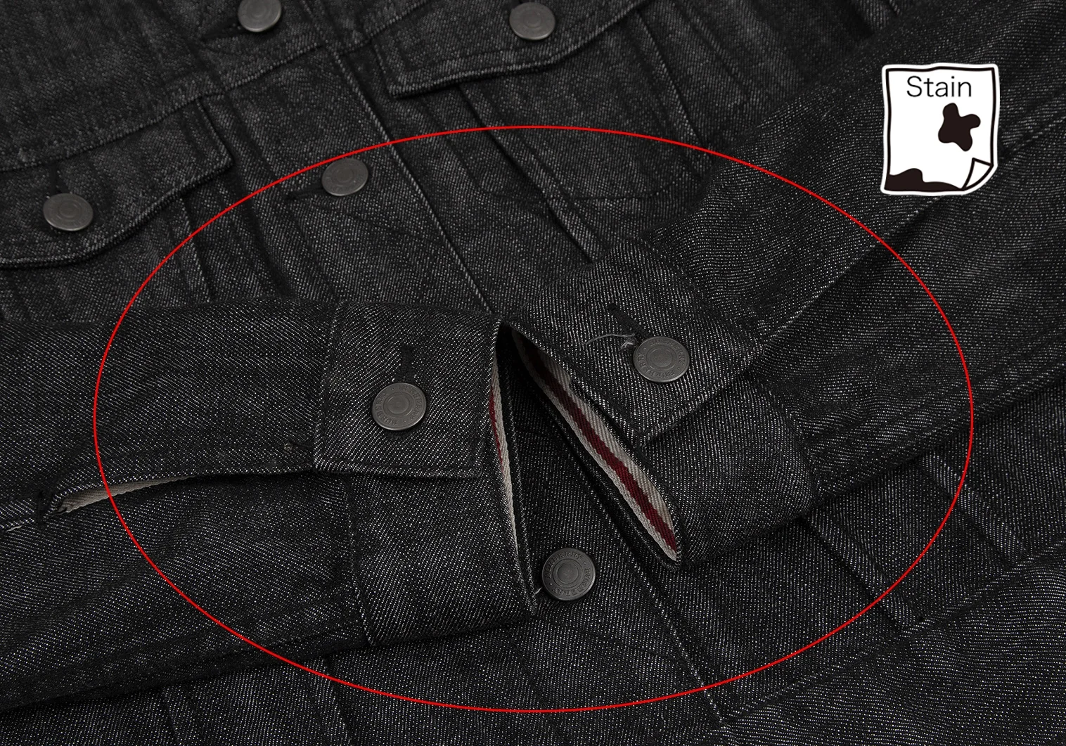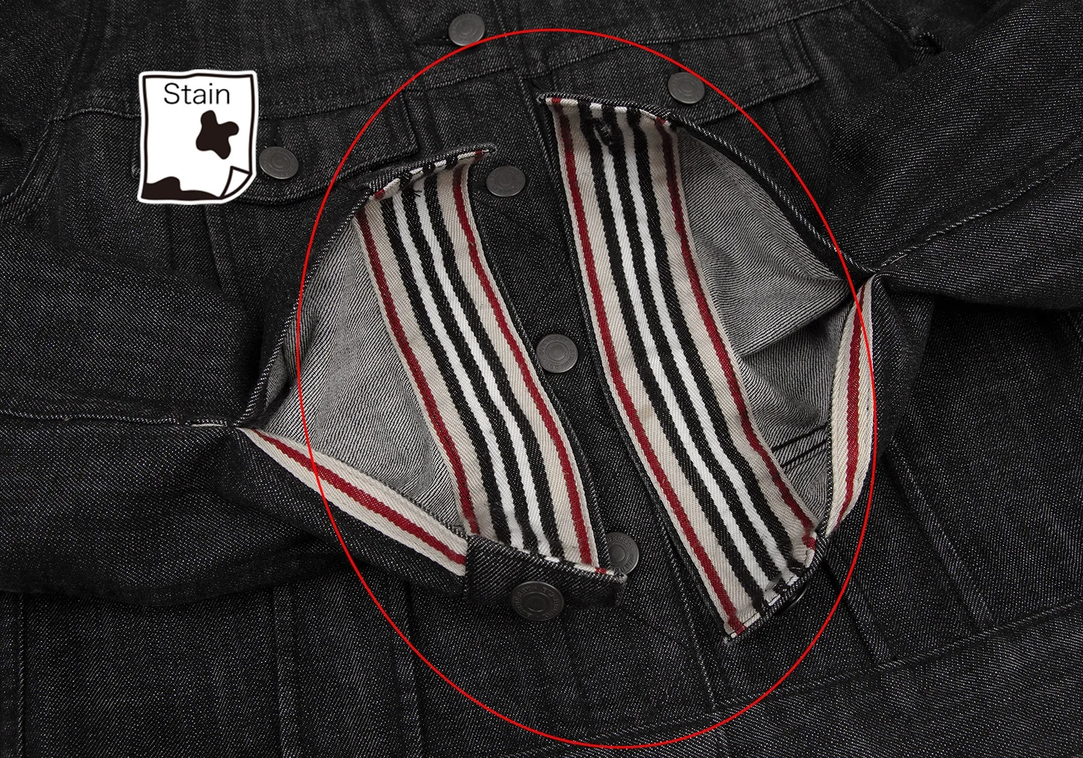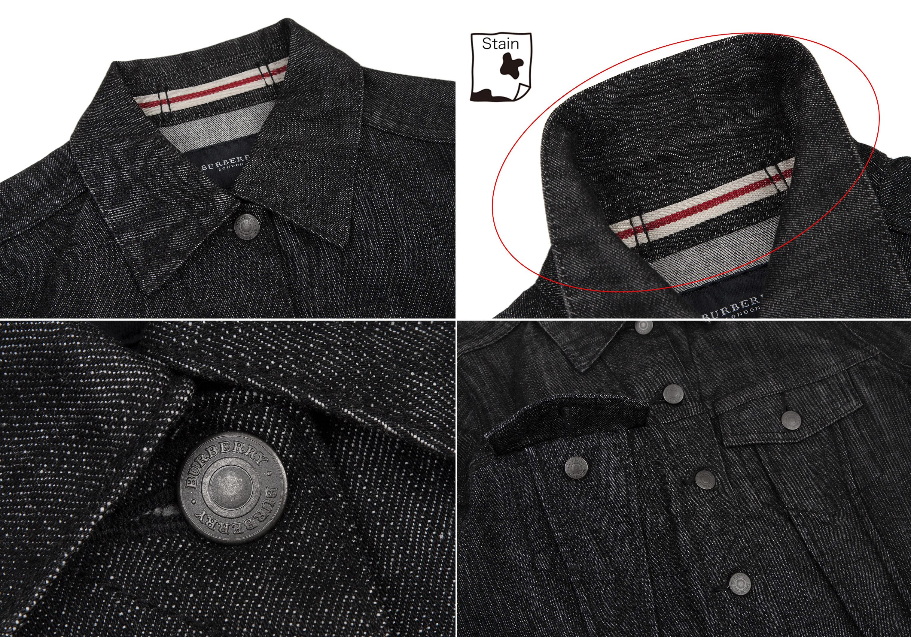 ジャケットの襟裏に薄汚れ、袖先・袖裏にシミがあります。(画像参照)その他目立ったシミ、汚れ、ほつれ等なくいい状態です。クリーニング済み