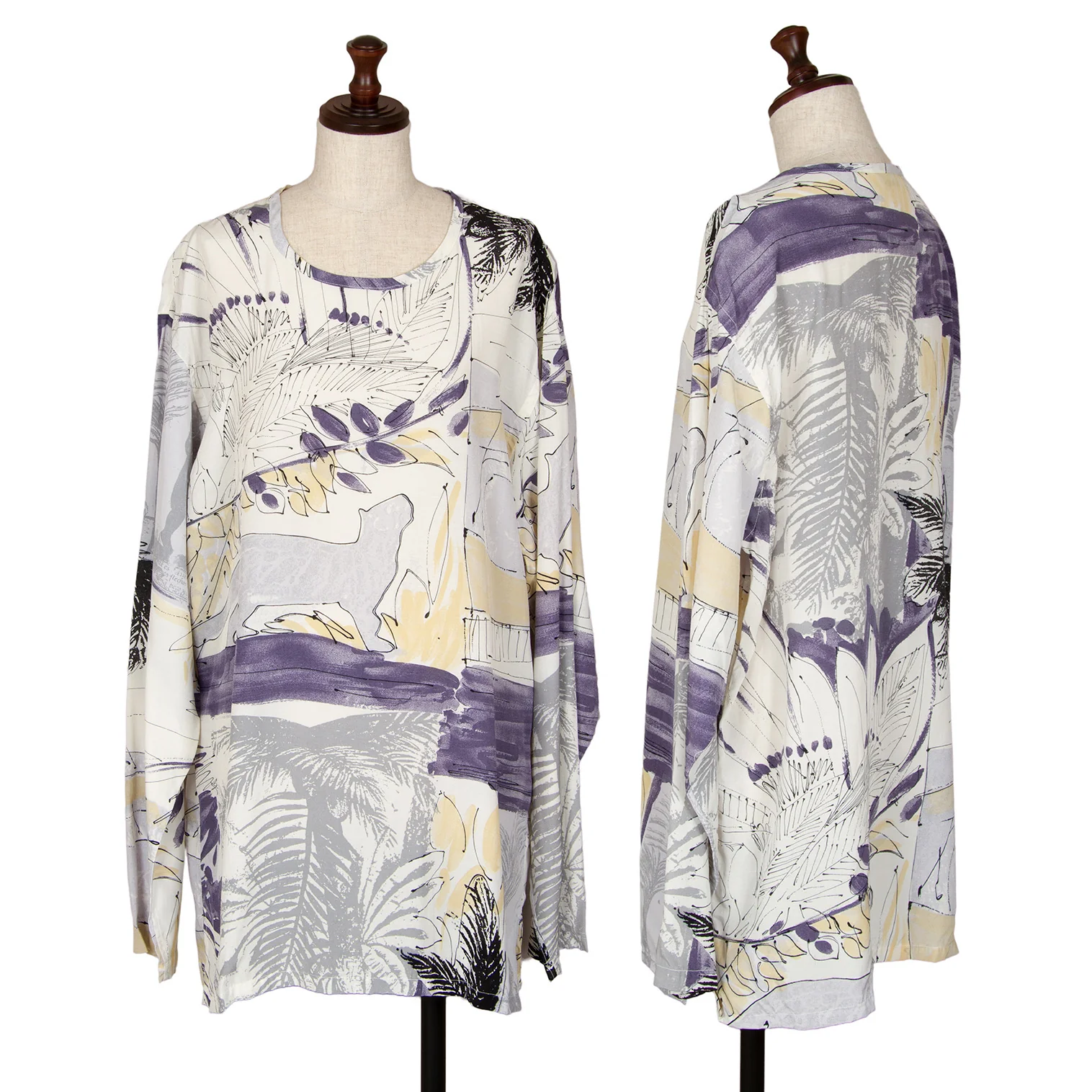 バジュラbajra ボタニカルグラフィックプリントトップス 白グレー他L位
