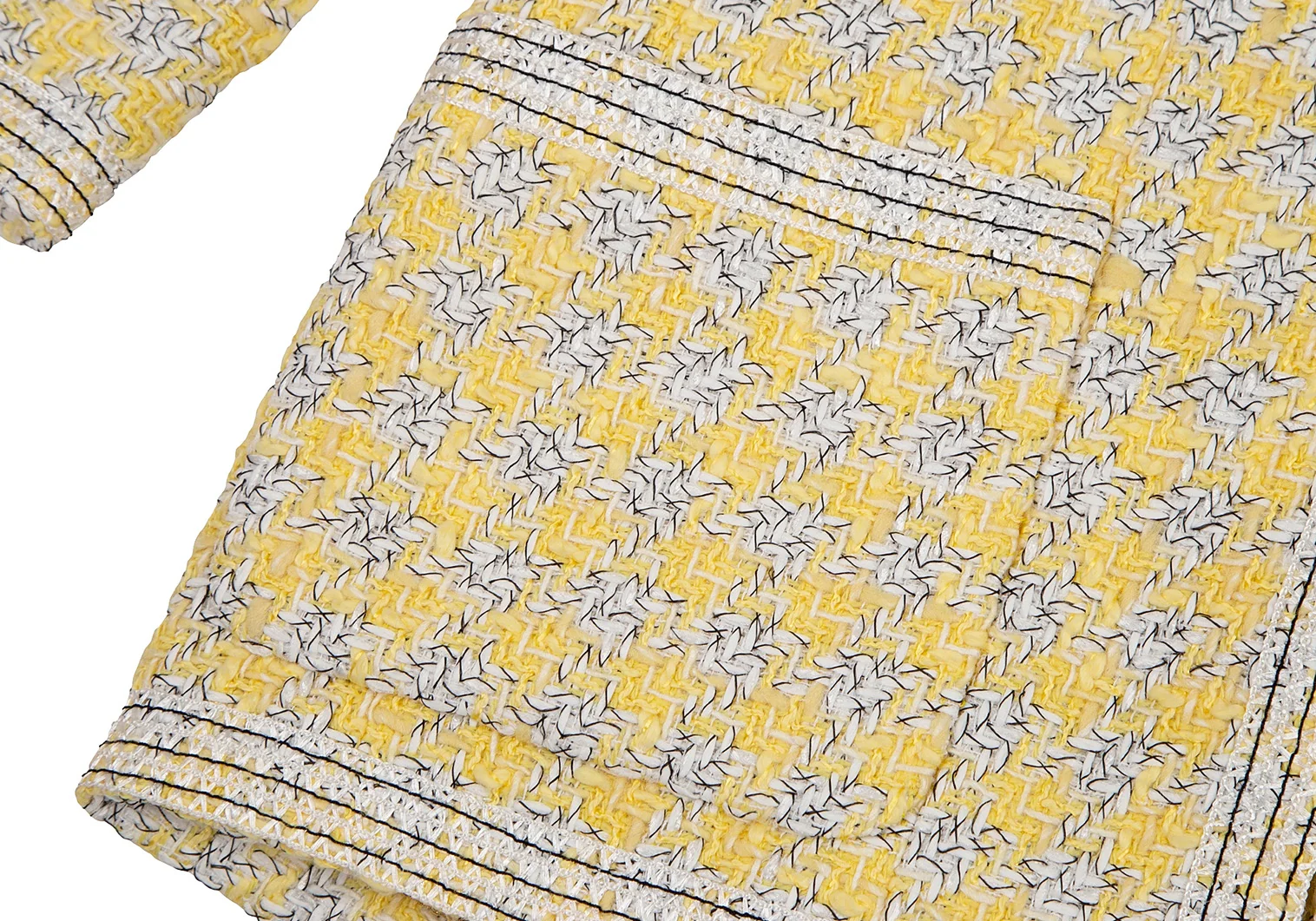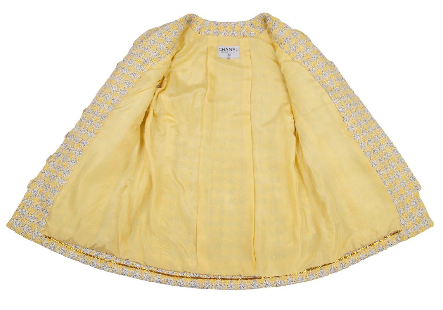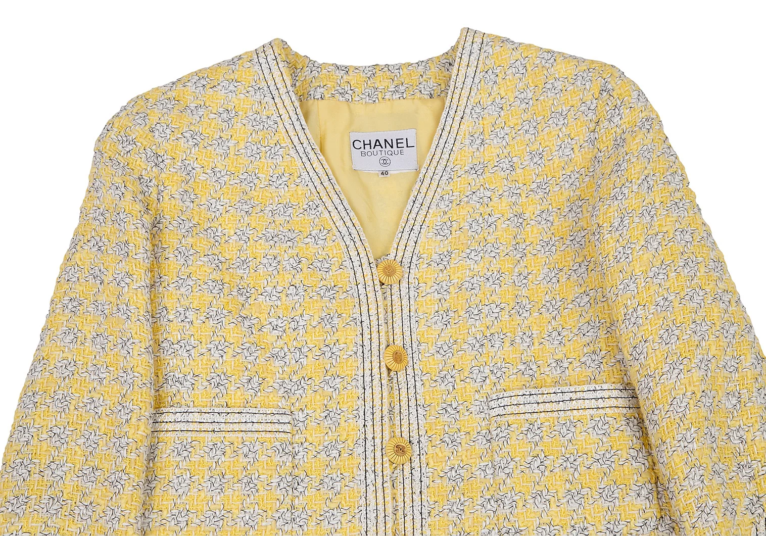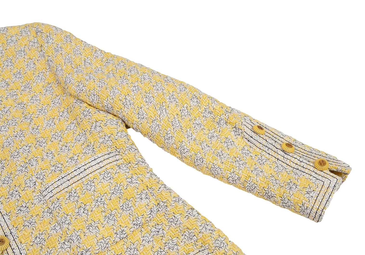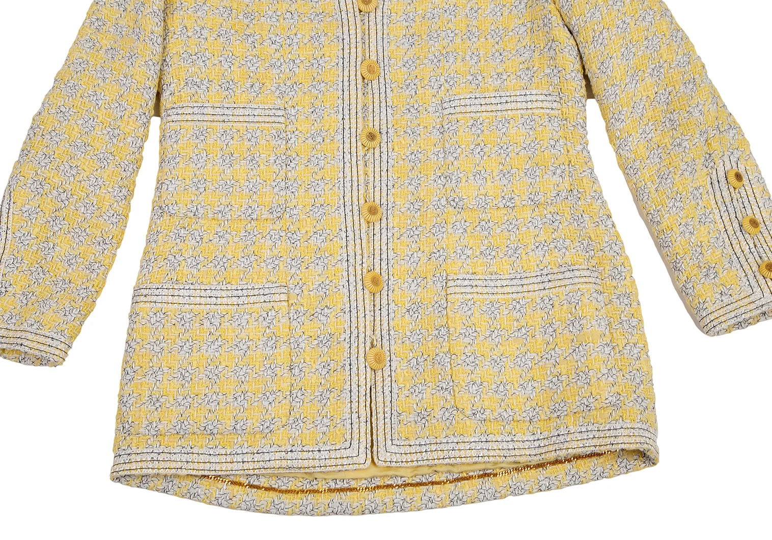 シャネルCHANEL ファンシーツイードハウンドトゥースノーカラージャケット 黄40