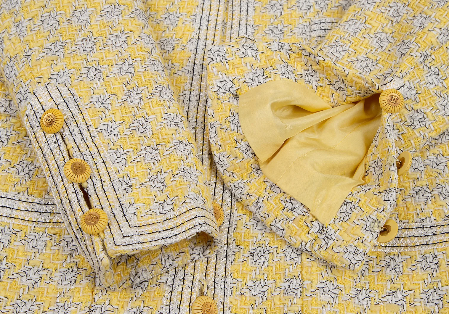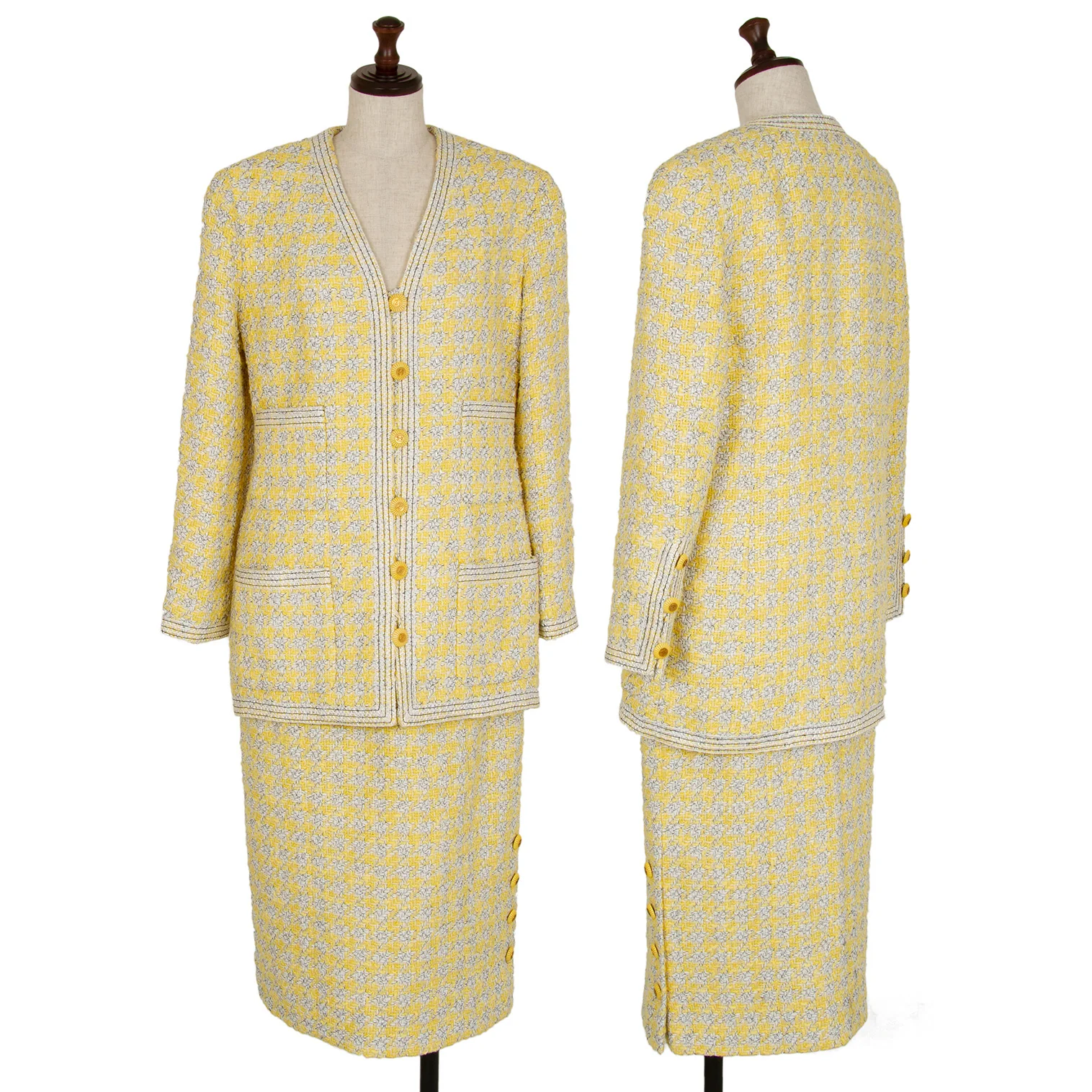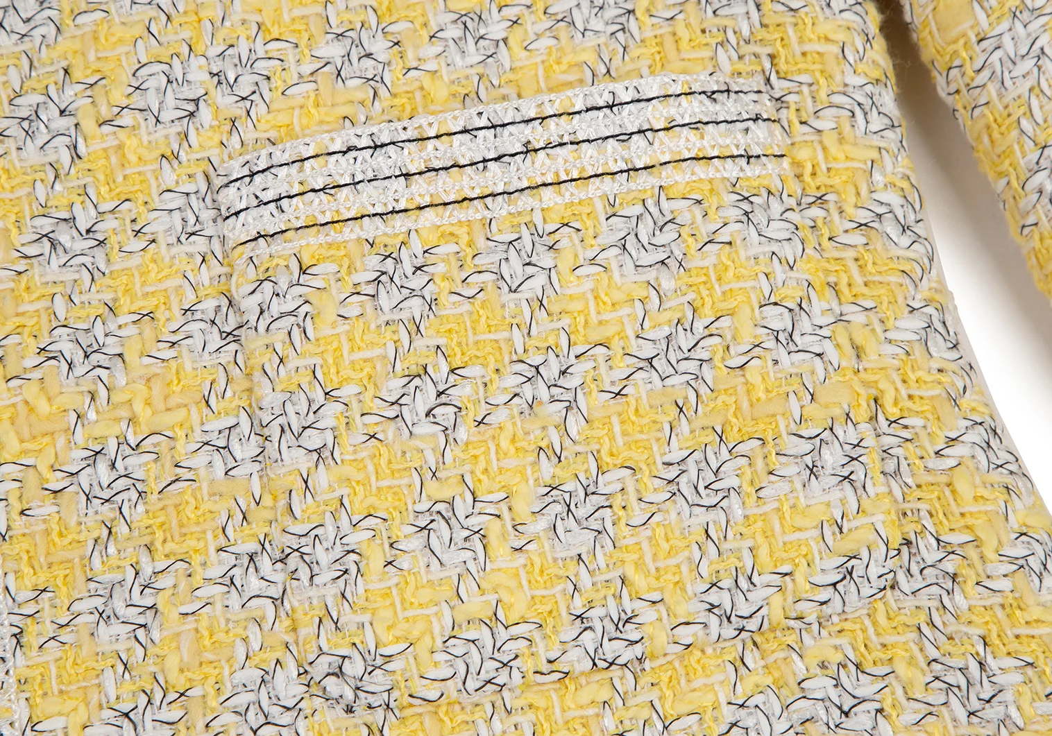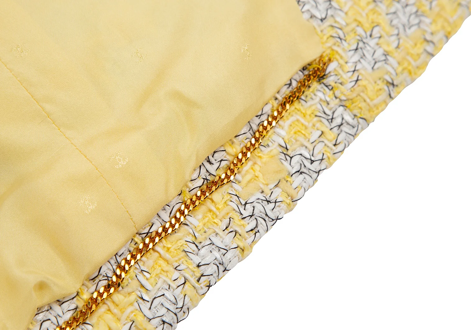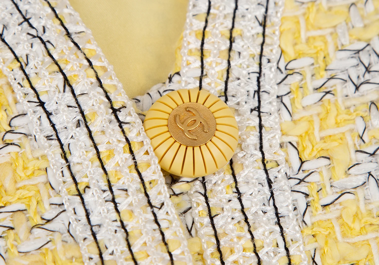 シャネルCHANEL ファンシーツイードハウンドトゥースノーカラージャケット 黄40