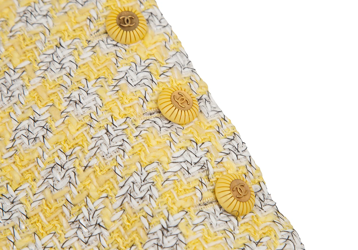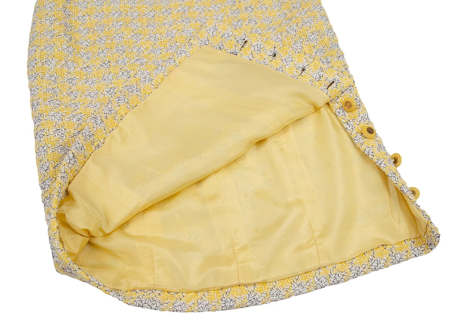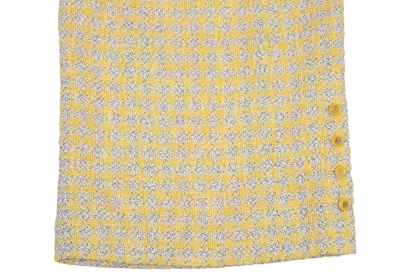 シャネルCHANEL ファンシーツイードハウンドトゥースボタンスリットスカート 40 黄M位