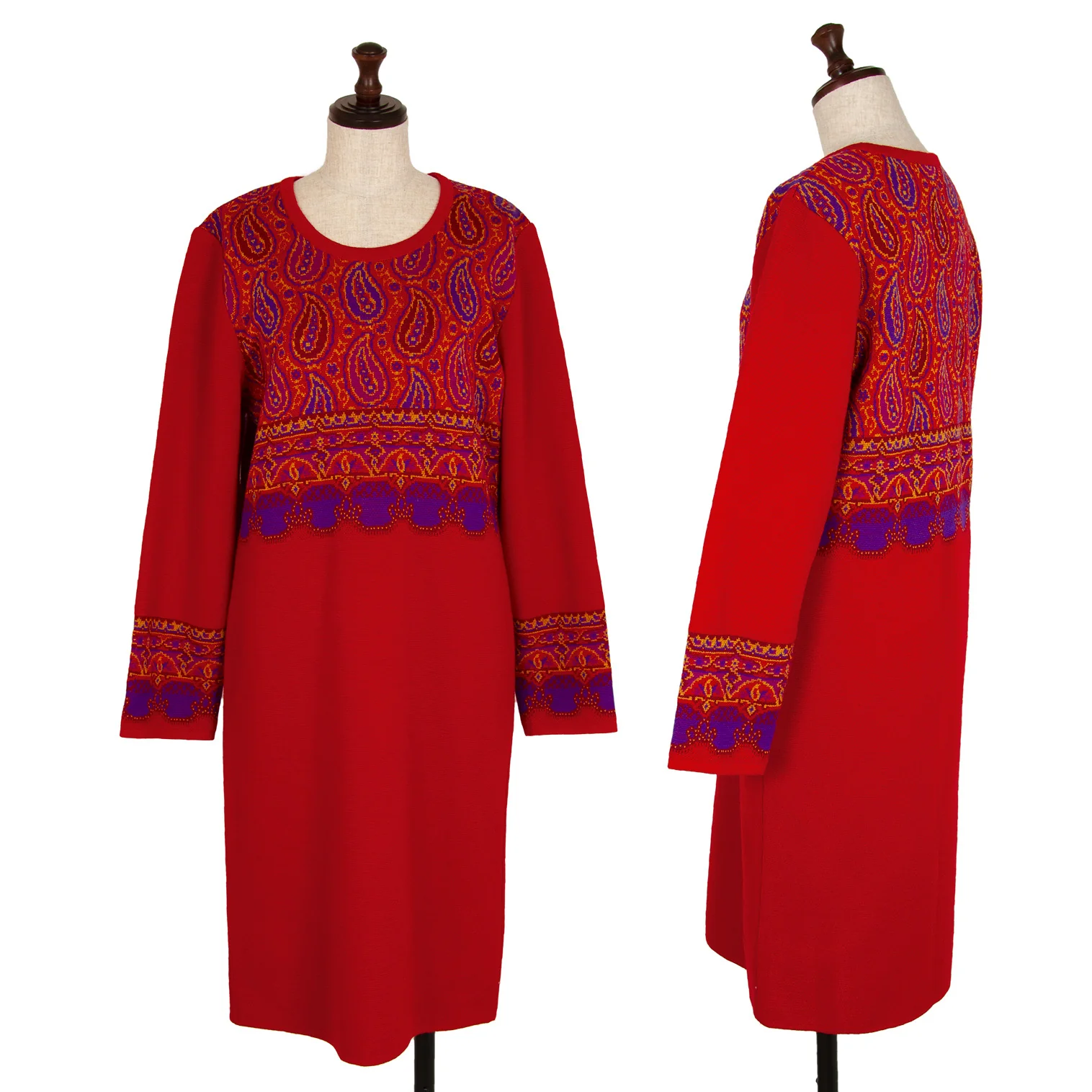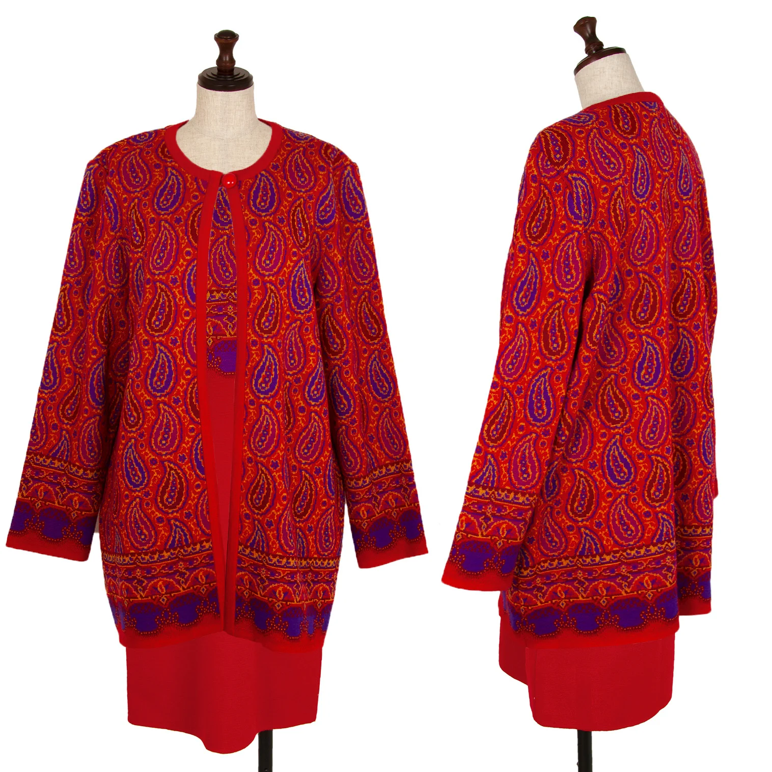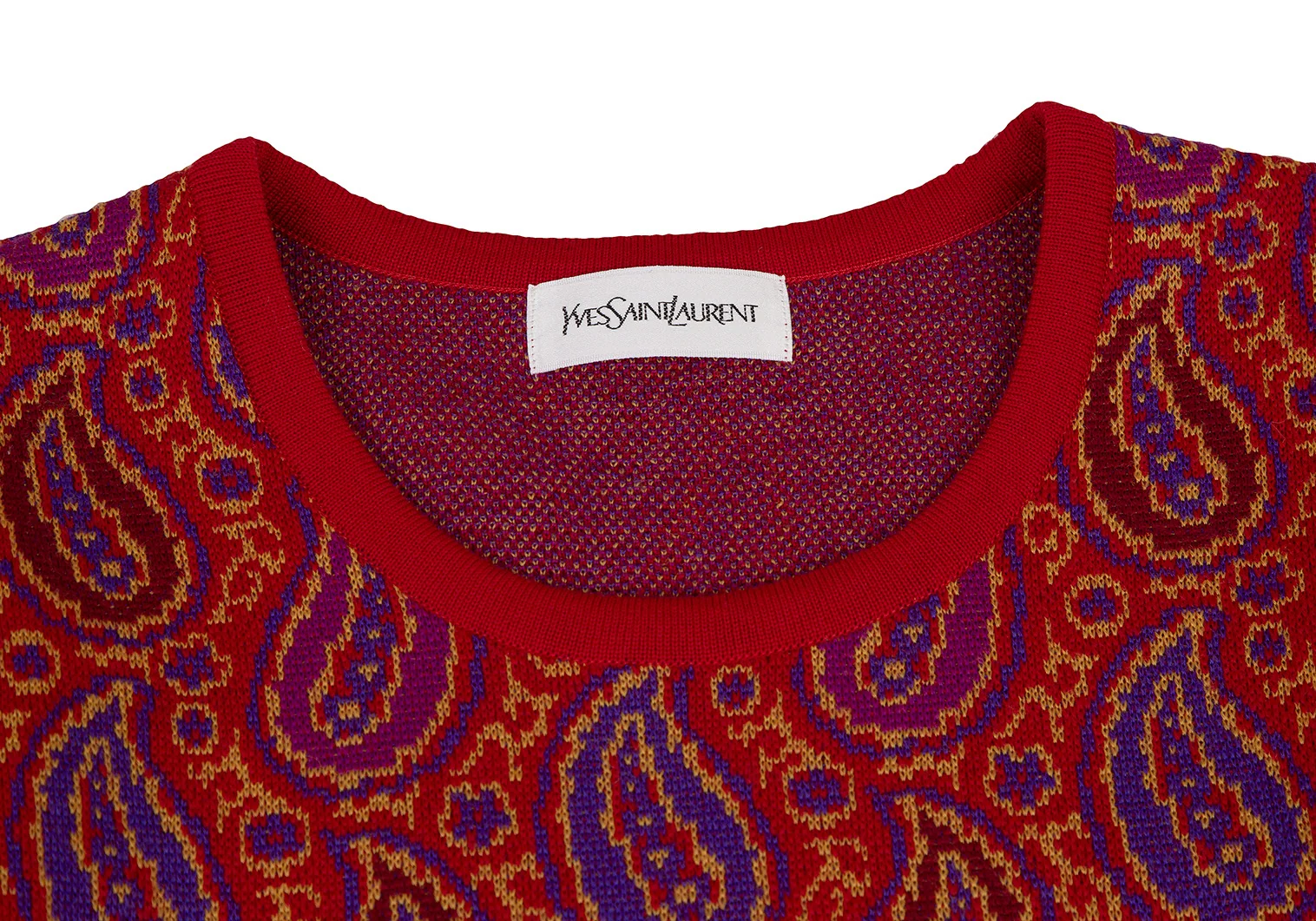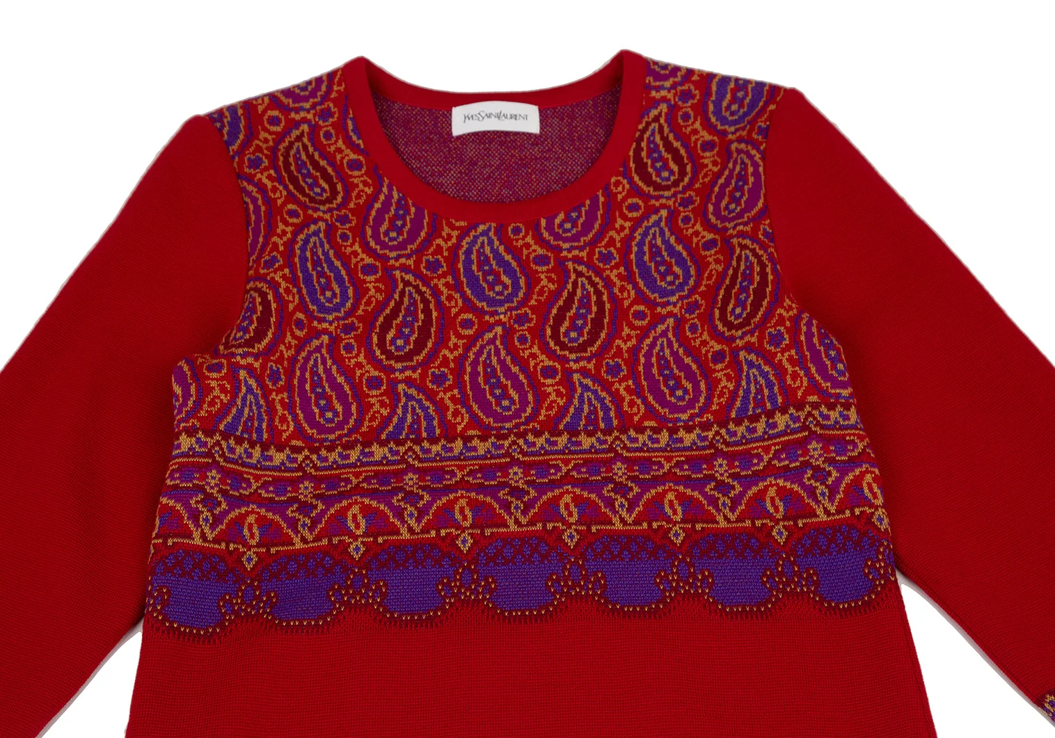 イヴサンローランYves Saint Laurent ペイズリージャガードニットワンピース 赤M