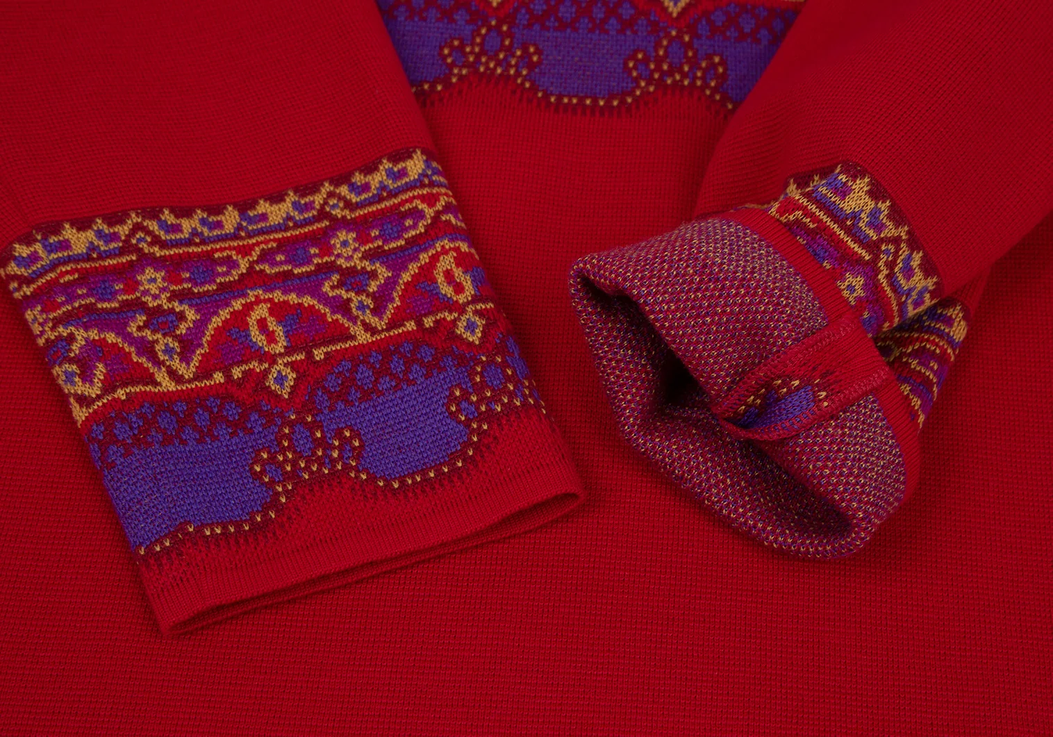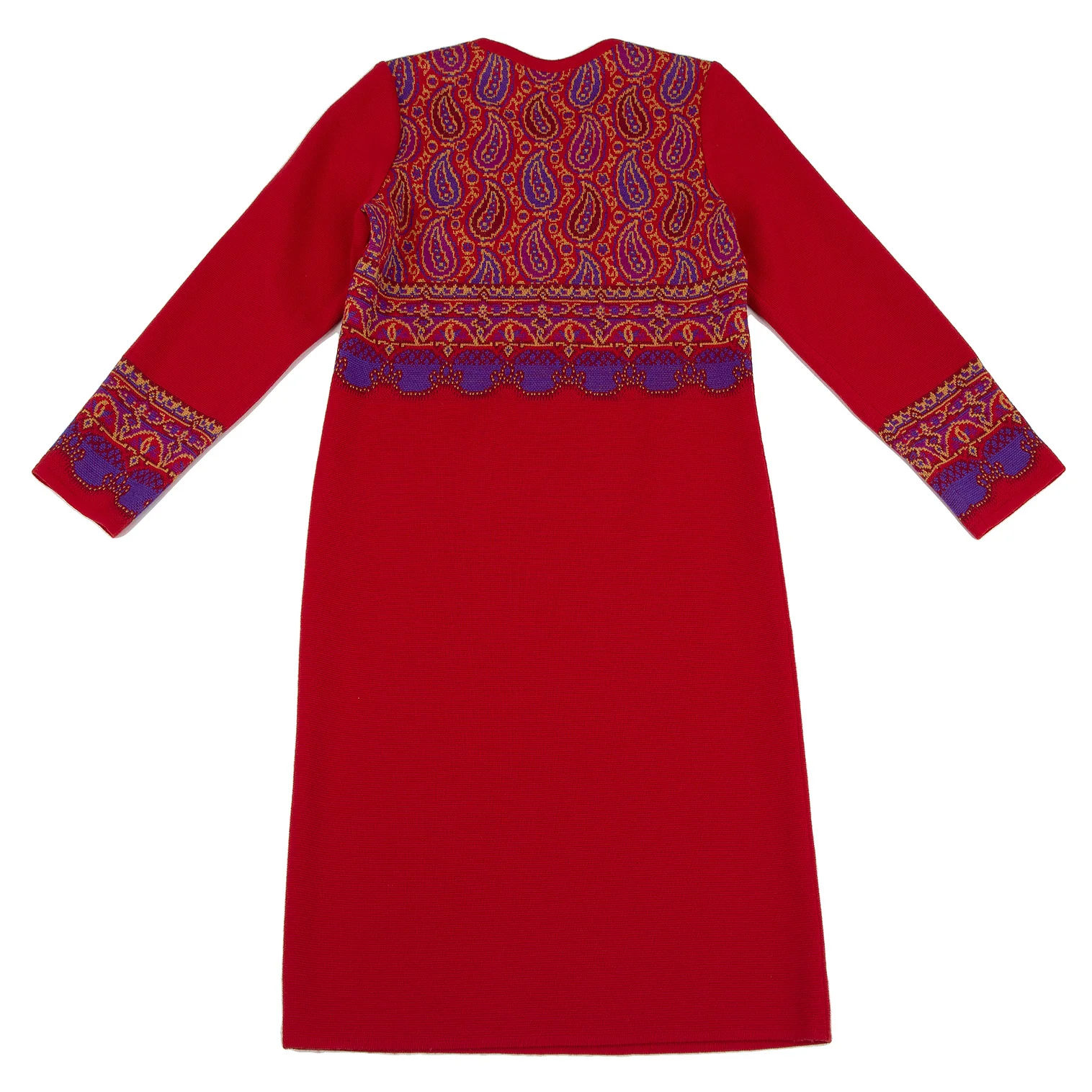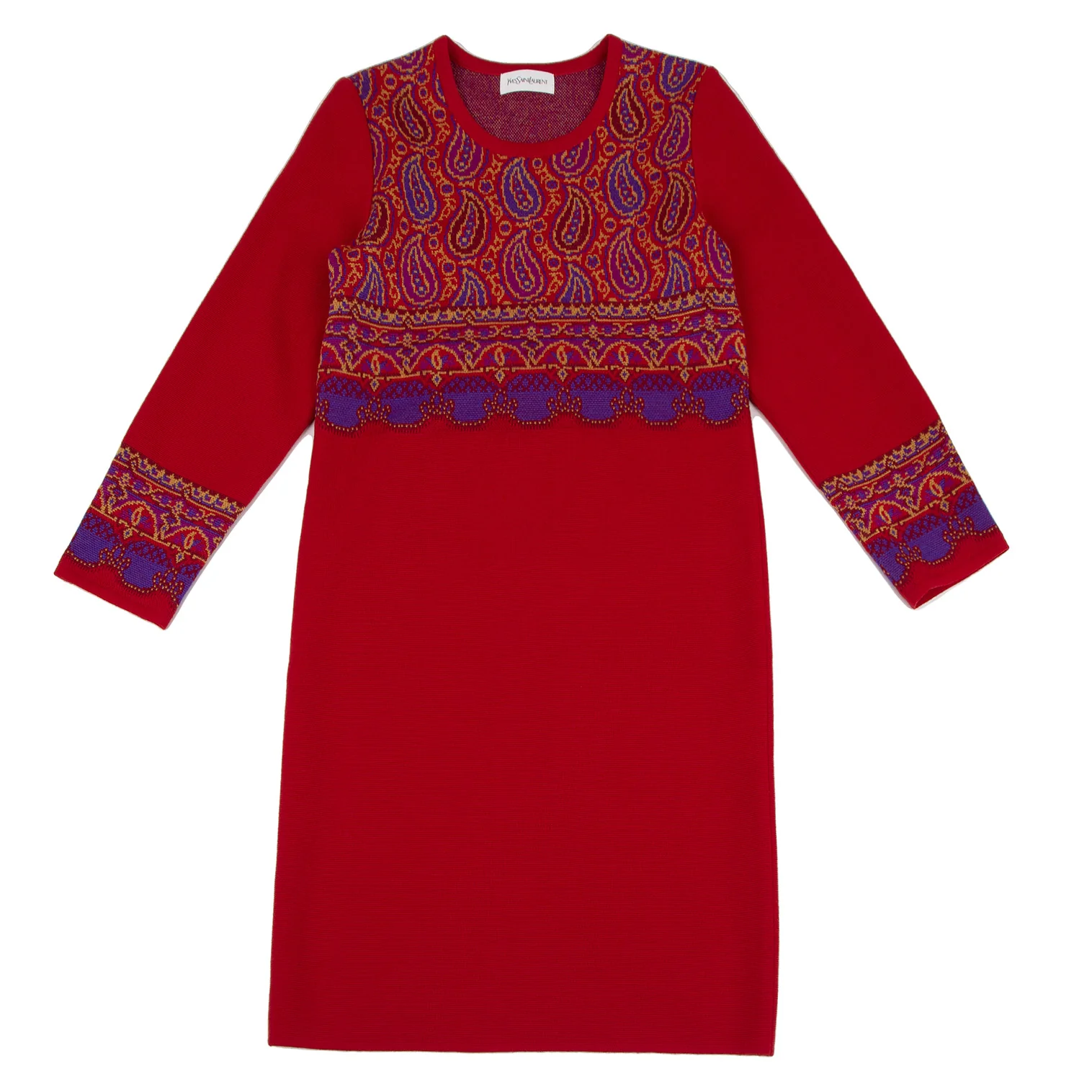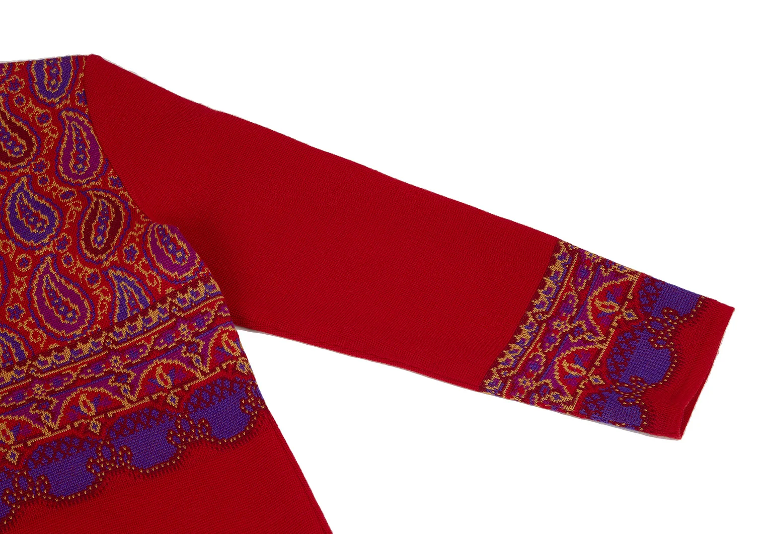 イヴサンローランYves Saint Laurent ペイズリージャガードニットワンピース 赤M