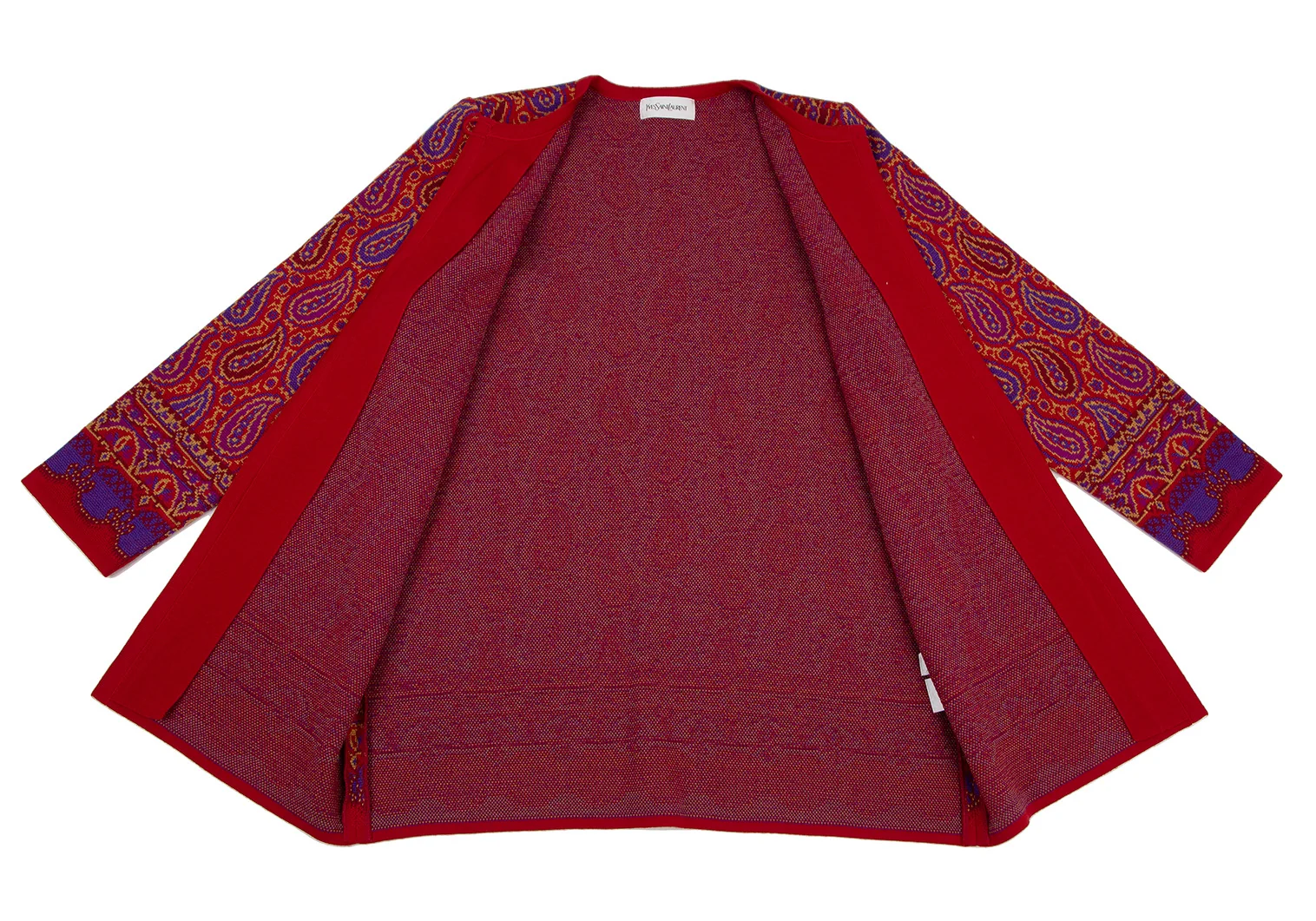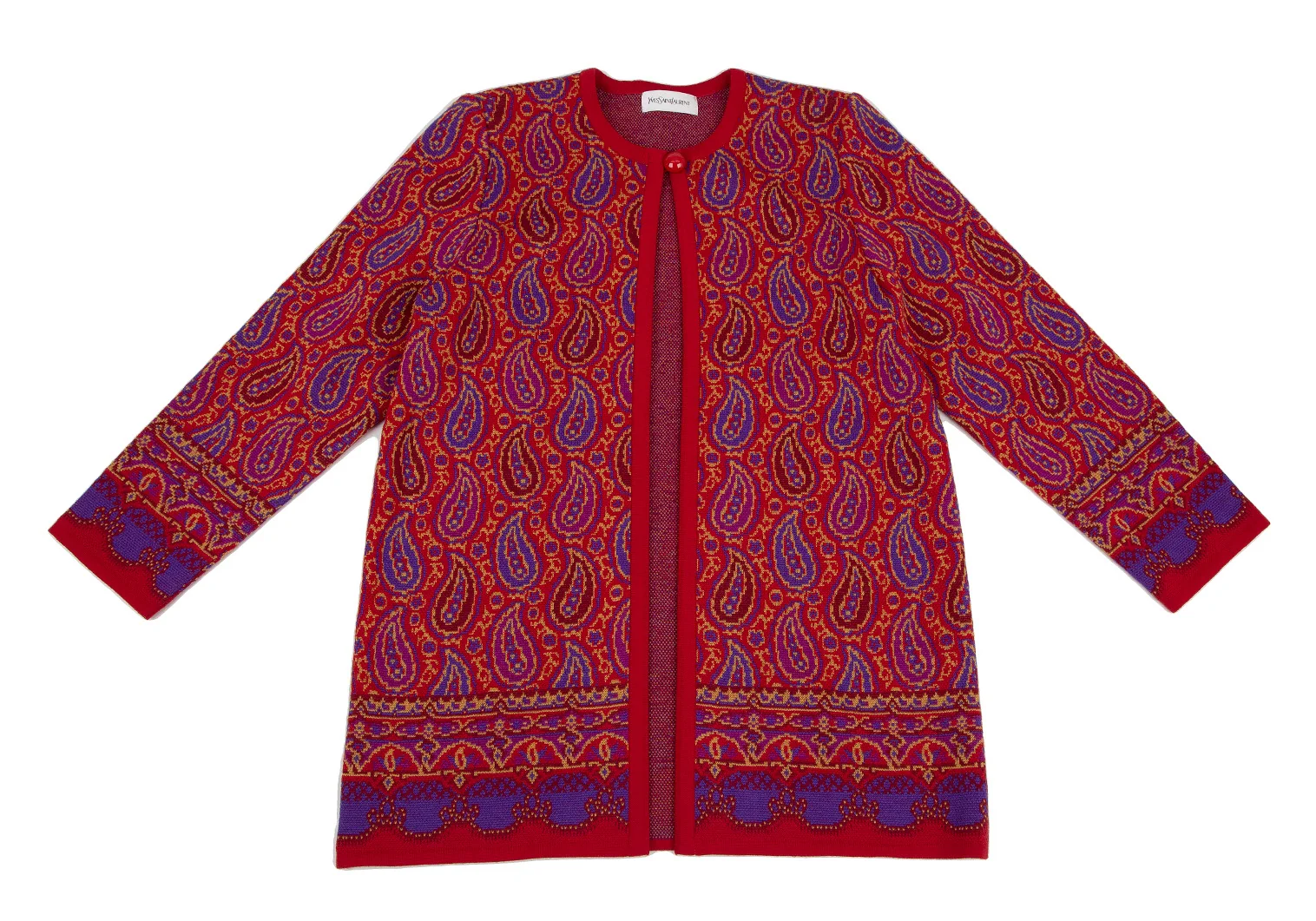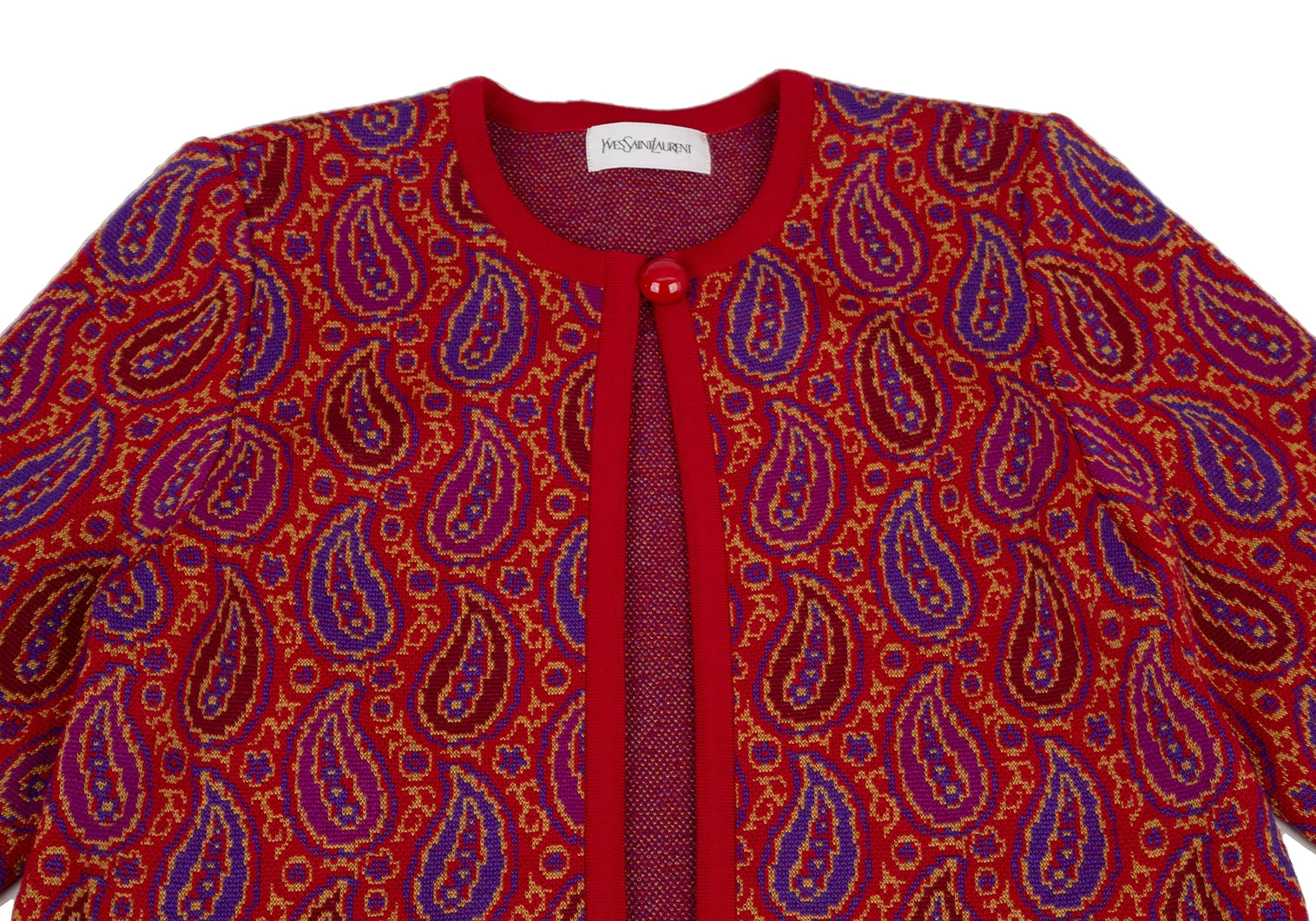 イヴサンローランYves Saint Laurent ペイズリージャガードニットカーディガン 赤M