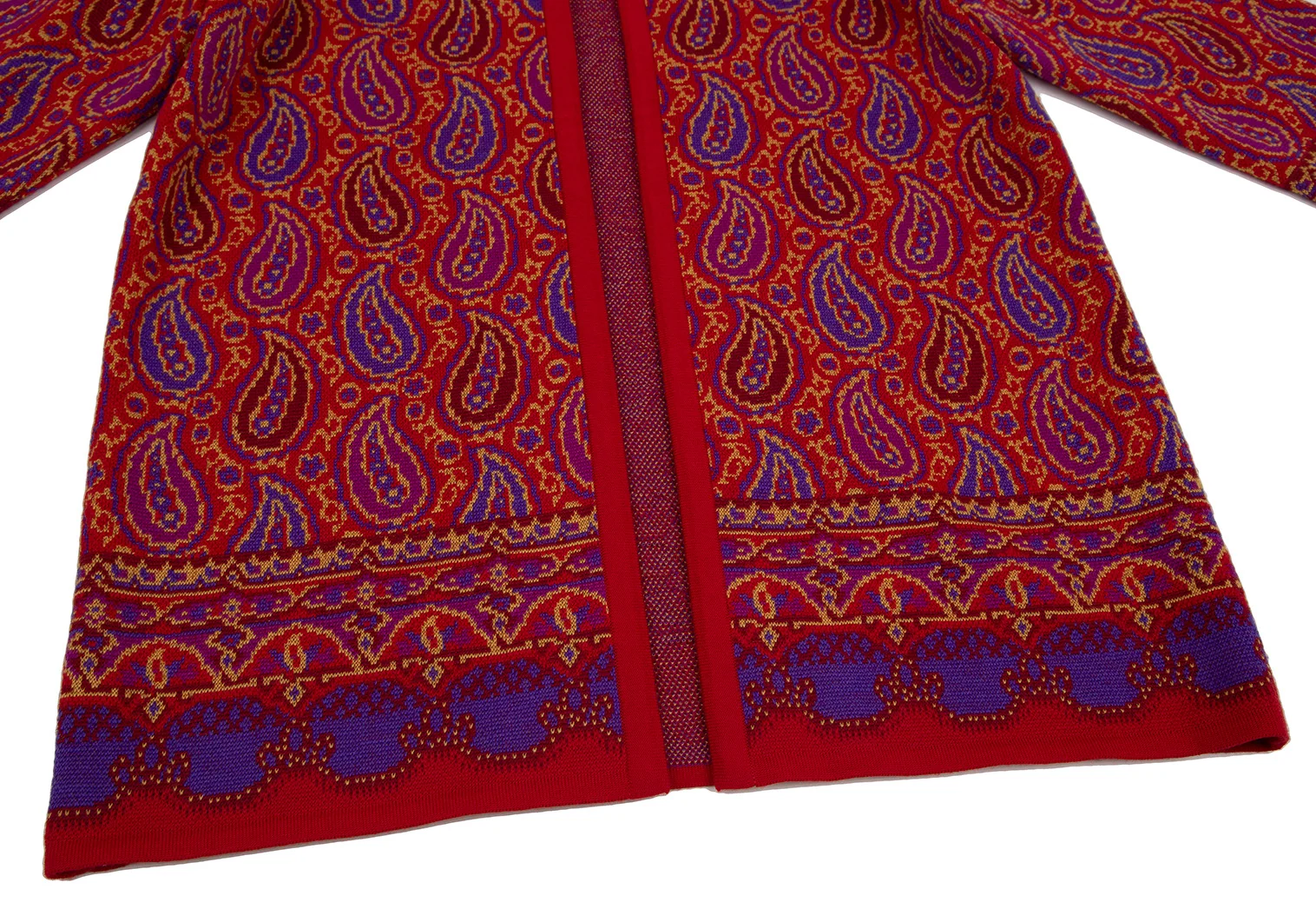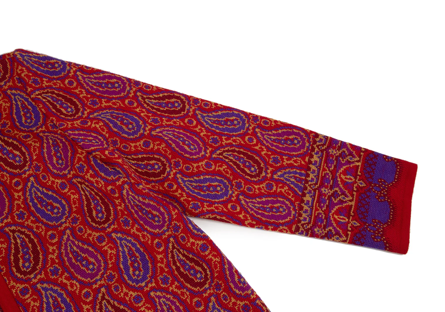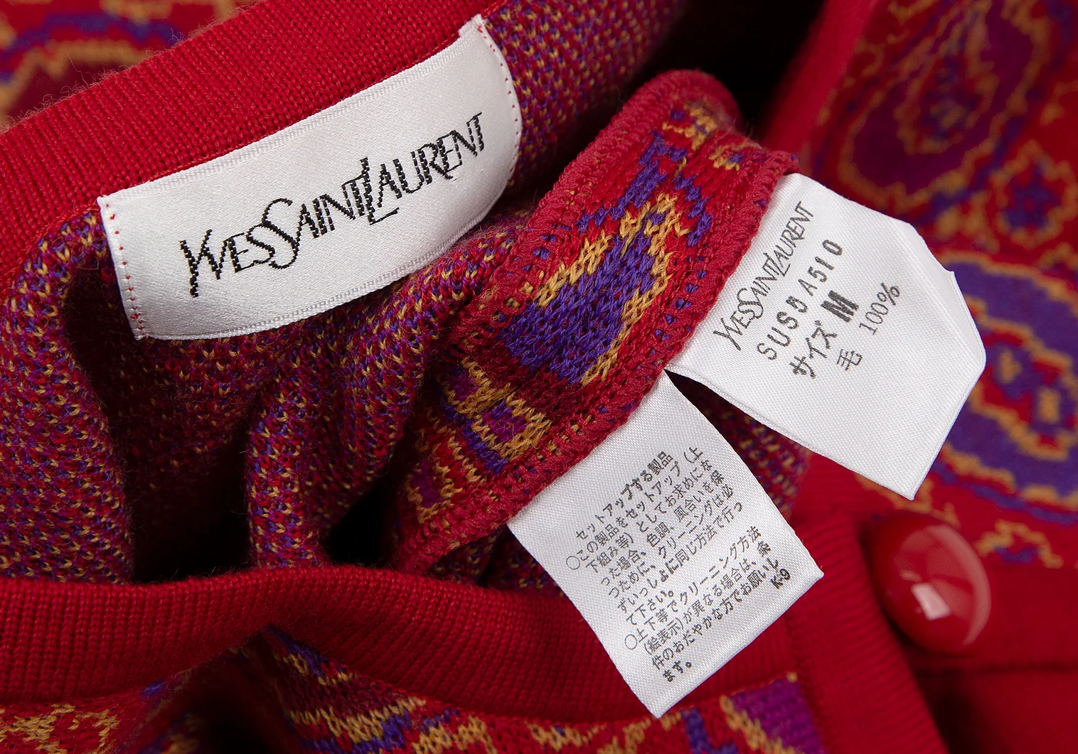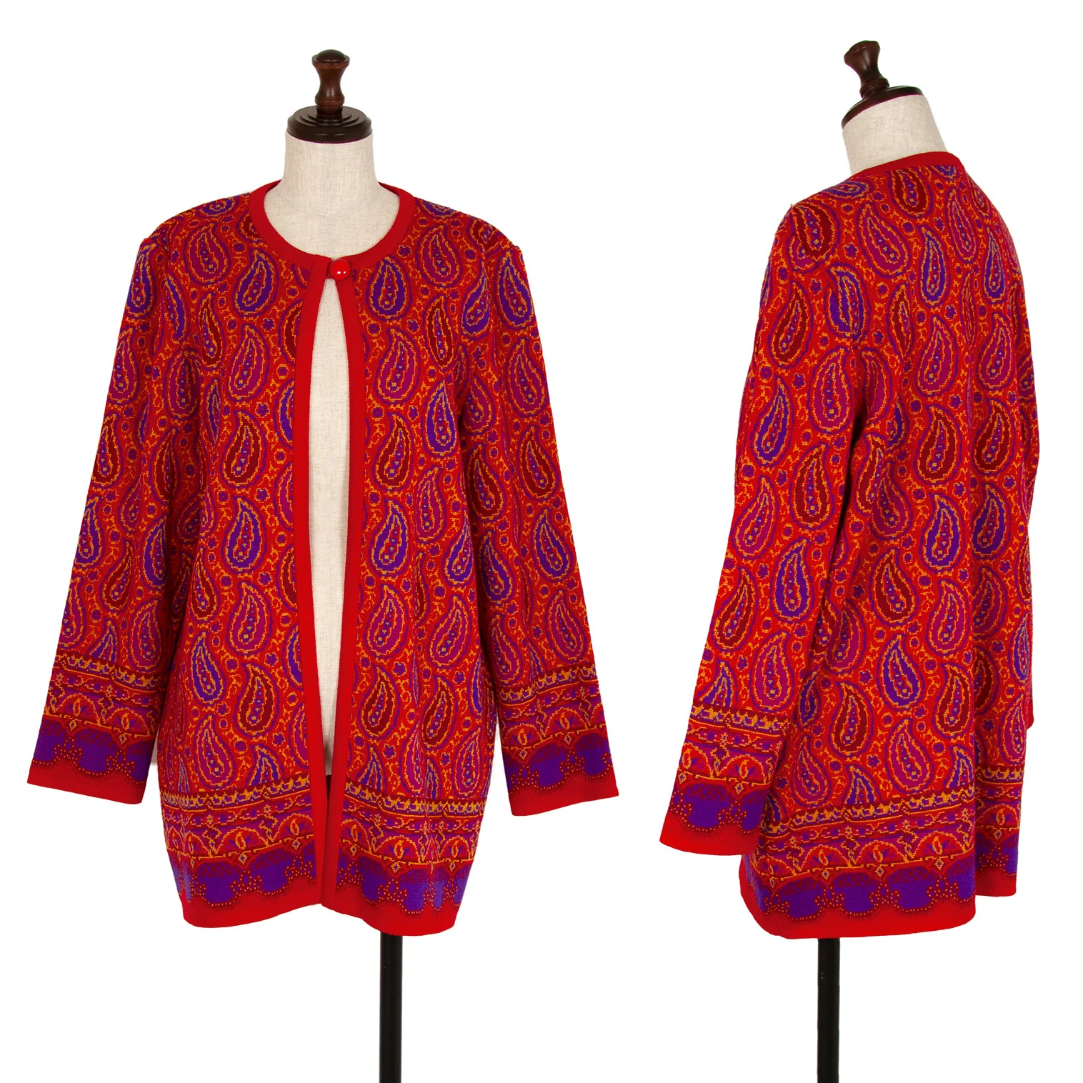 イヴサンローランYves Saint Laurent ペイズリージャガードニットカーディガン 赤M