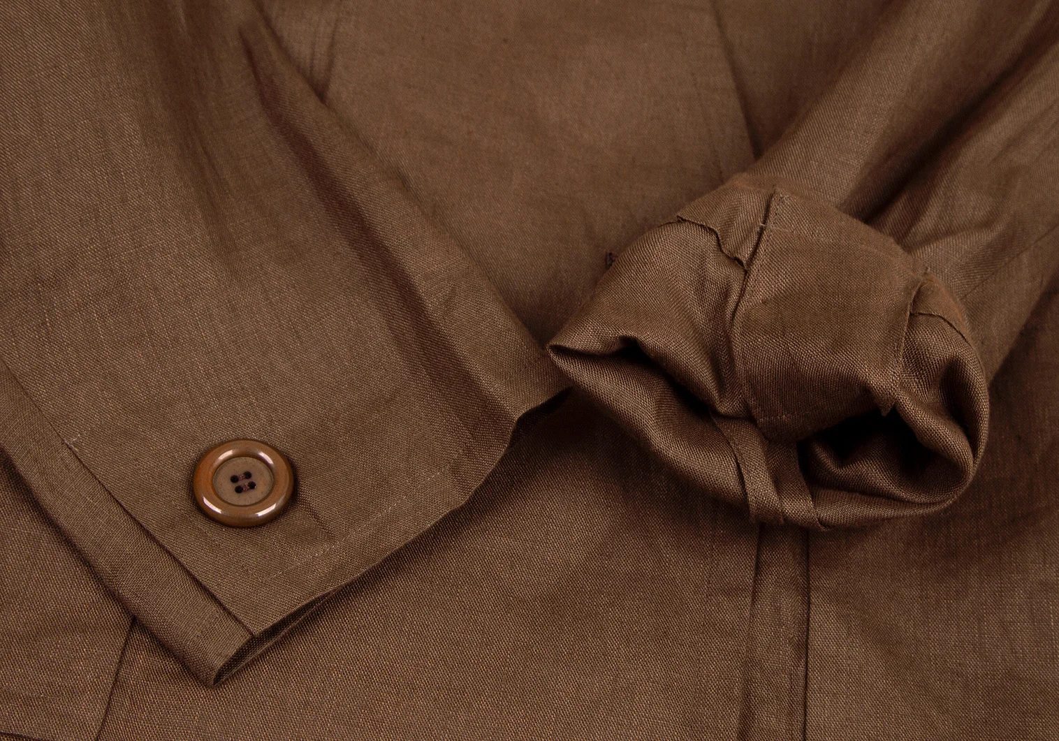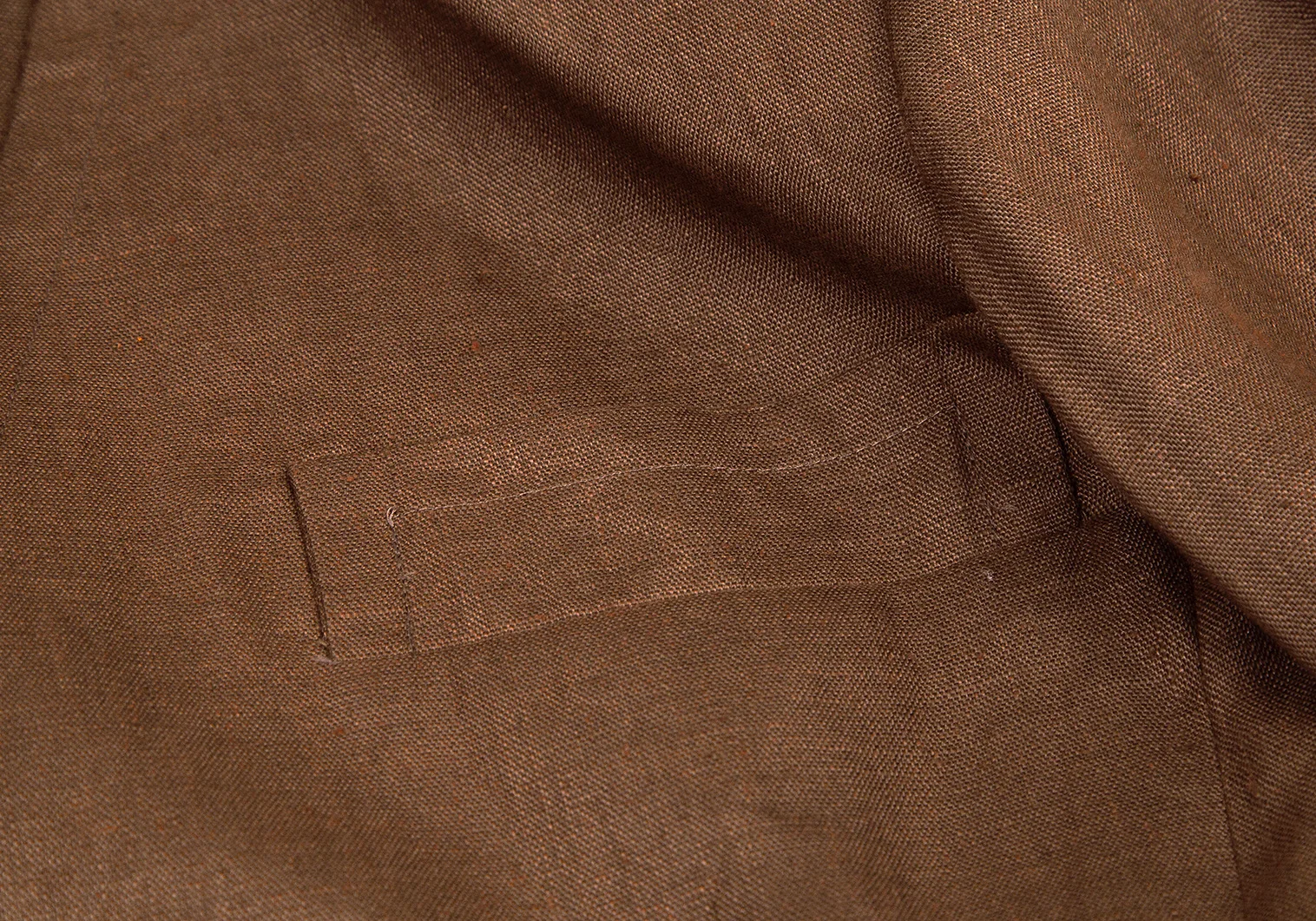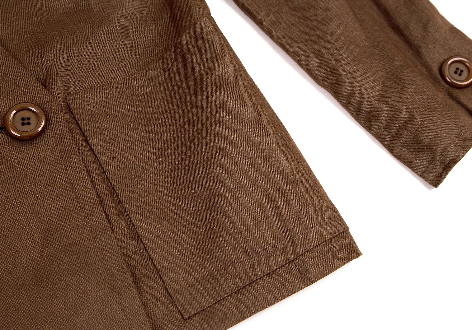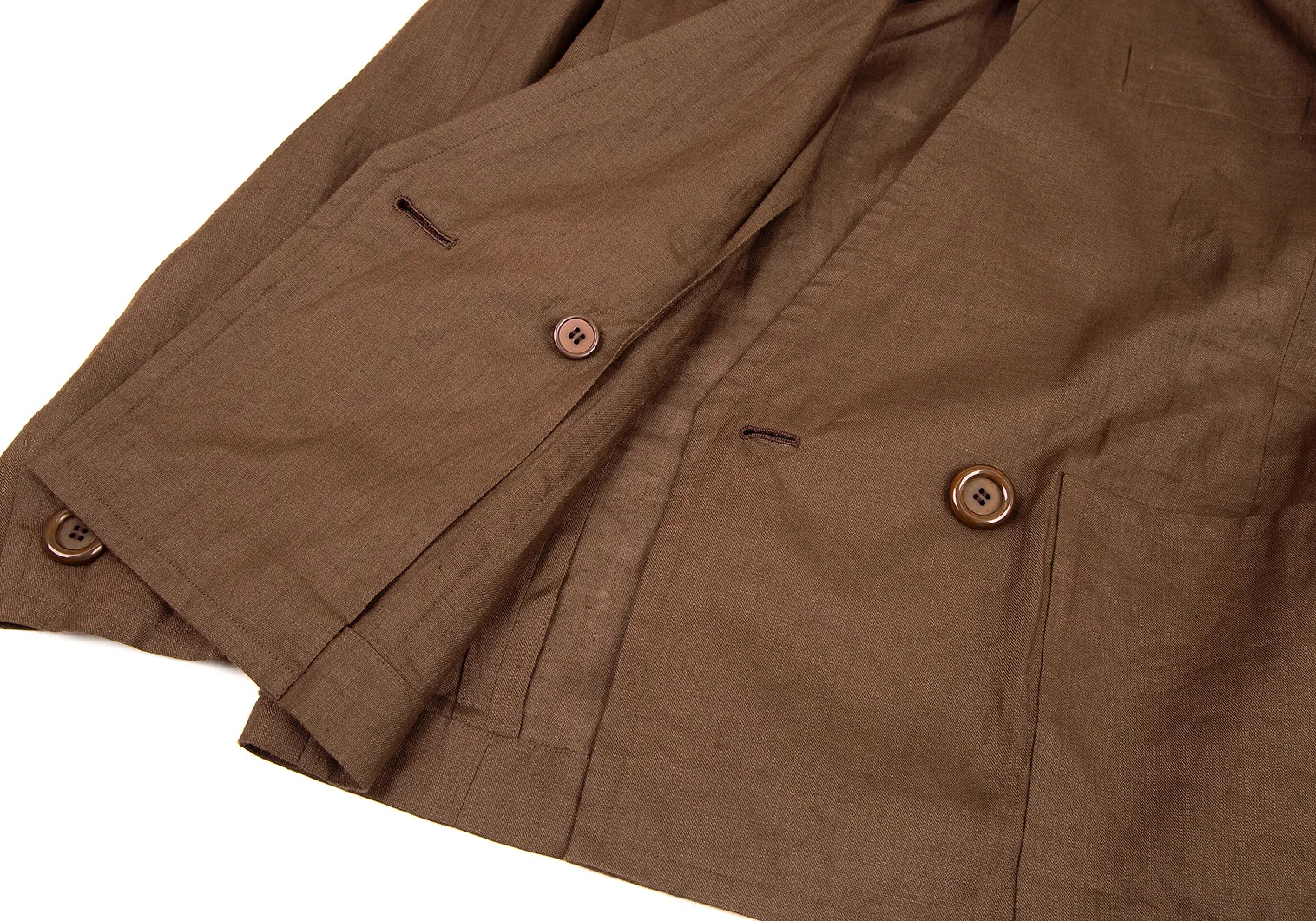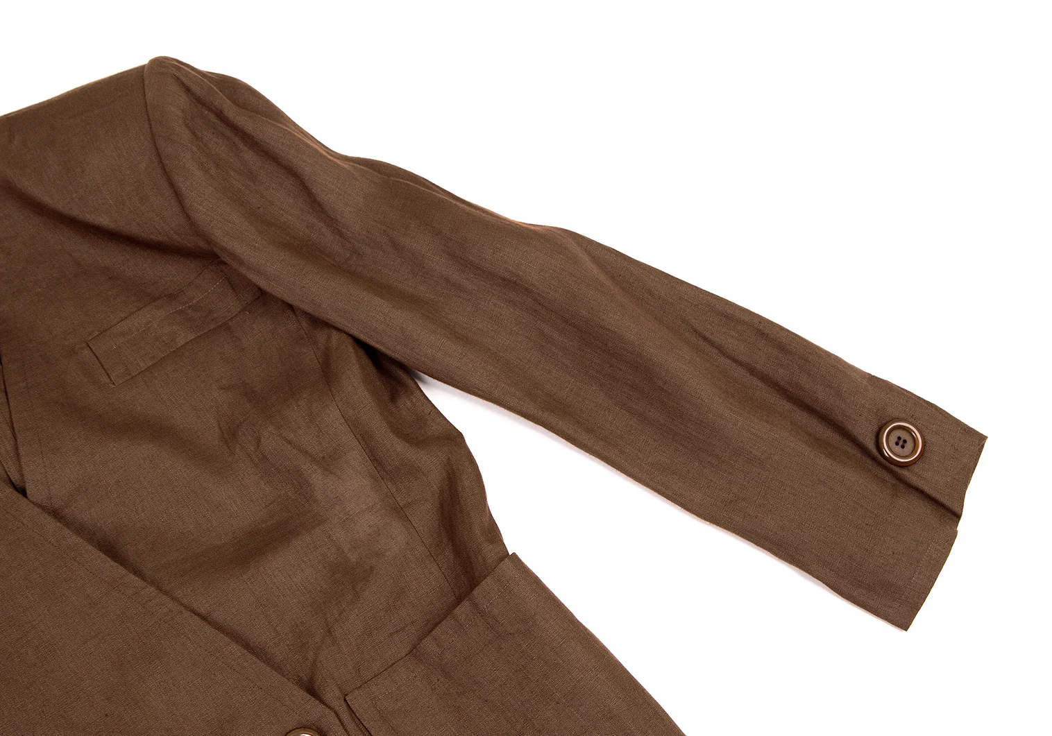 イヴサンローランYves Saint Laurent リネンノーカラーダブルジャケット 茶S