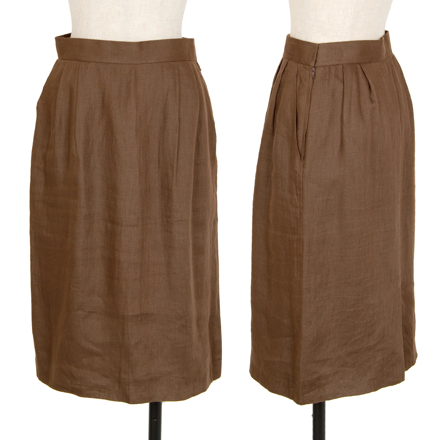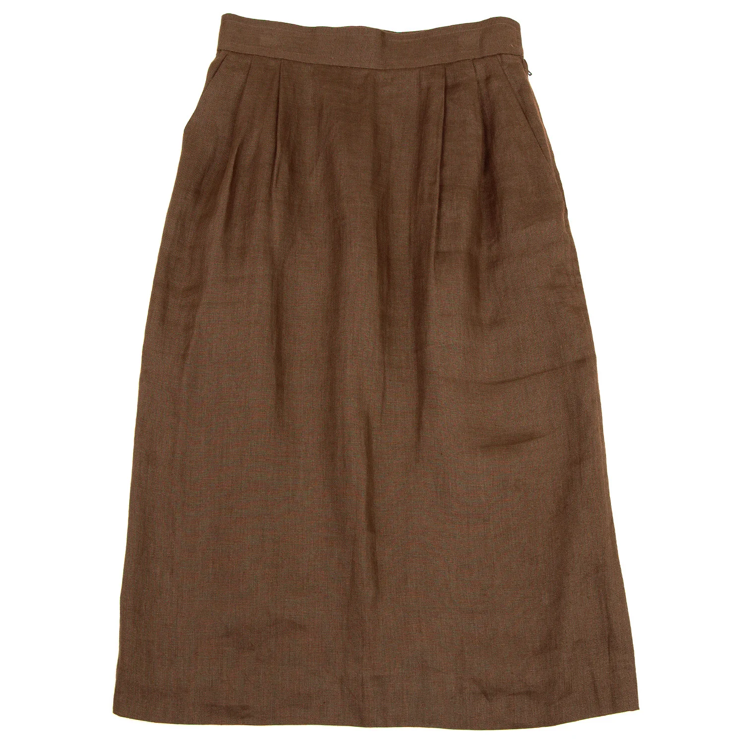 イヴサンローランYves Saint Laurent リネン台形スカート 茶M