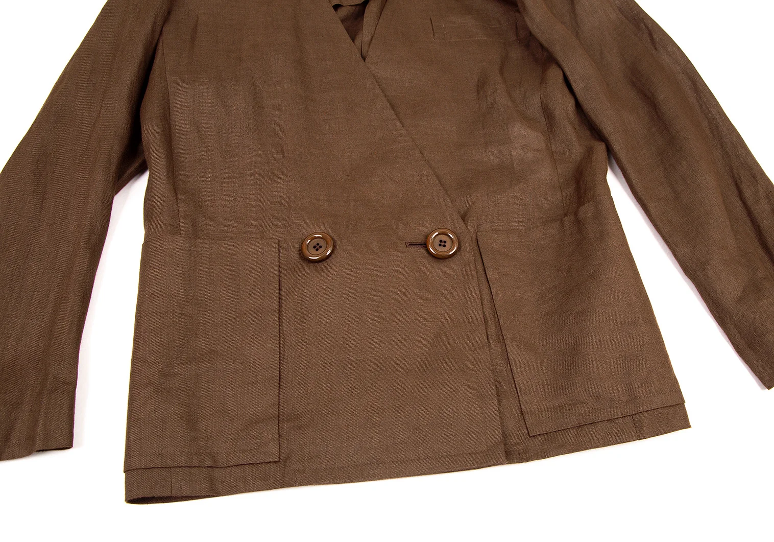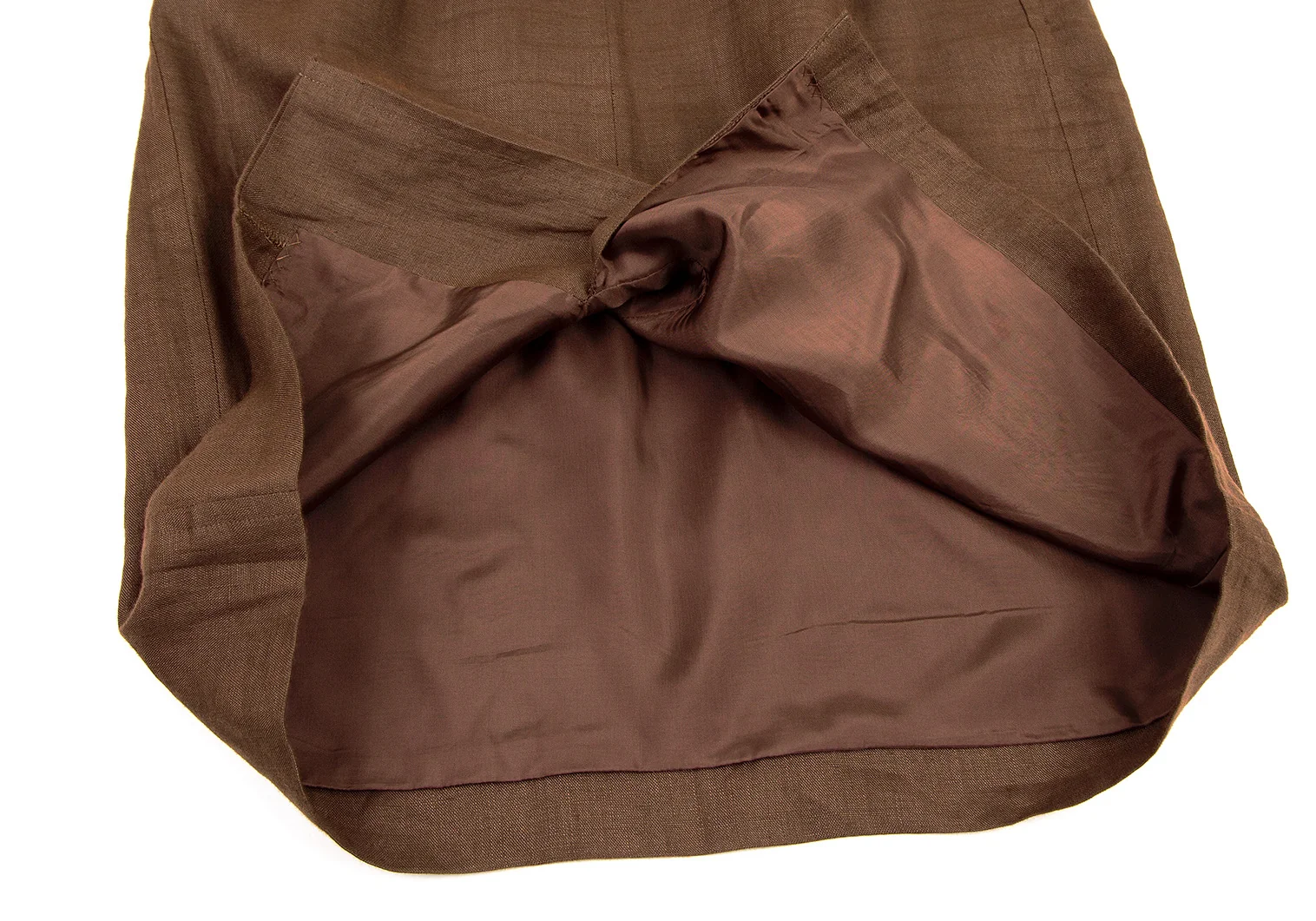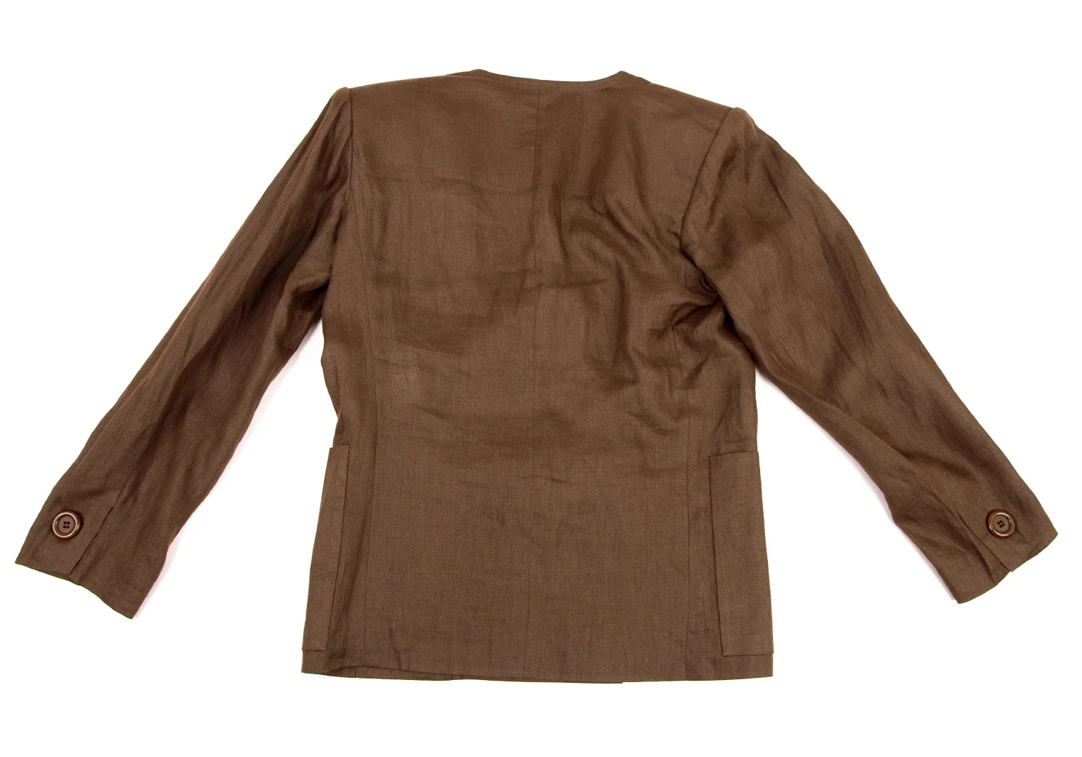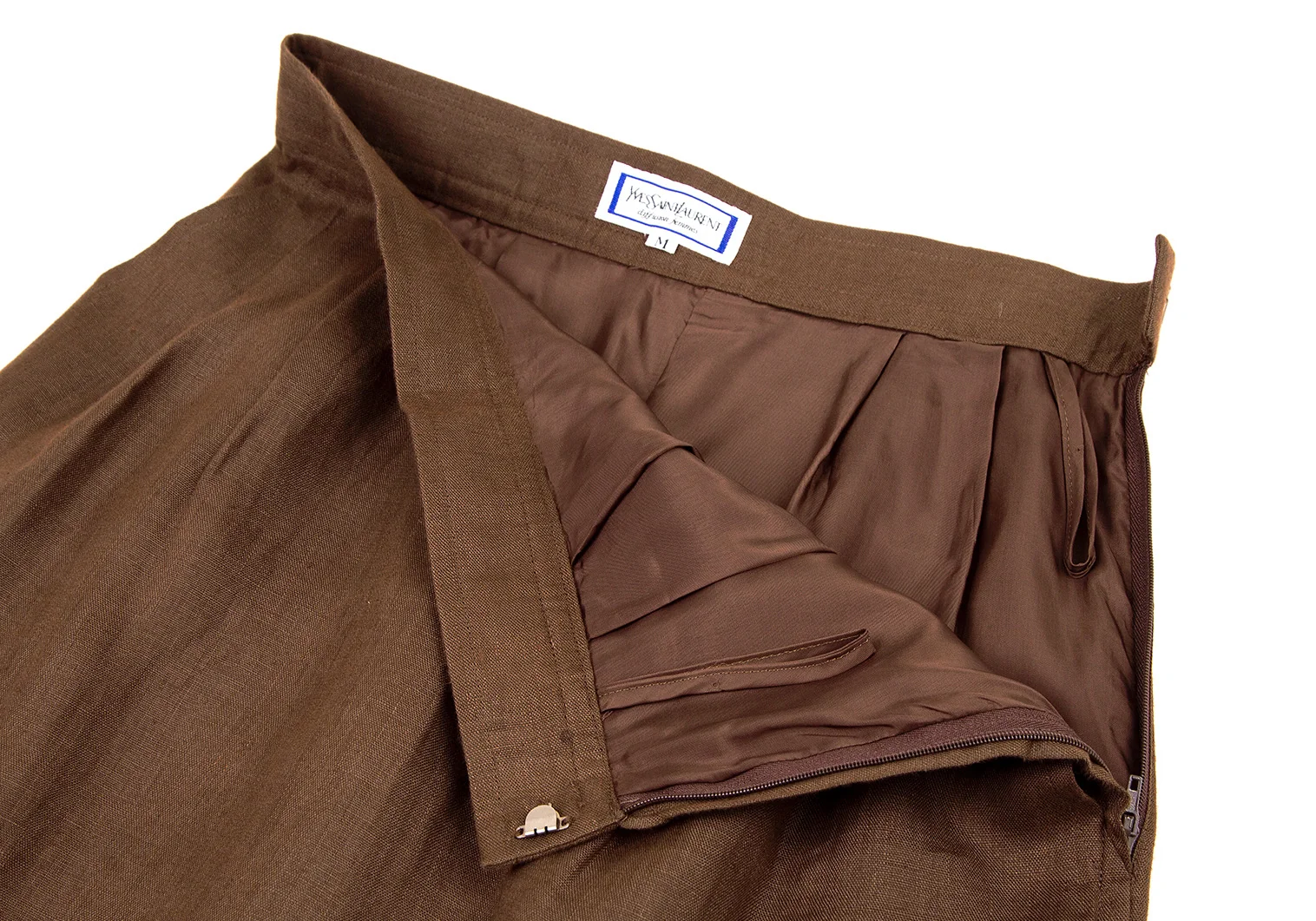 イヴサンローランYves Saint Laurent リネンノーカラーダブルセットアップスーツ 茶S・M