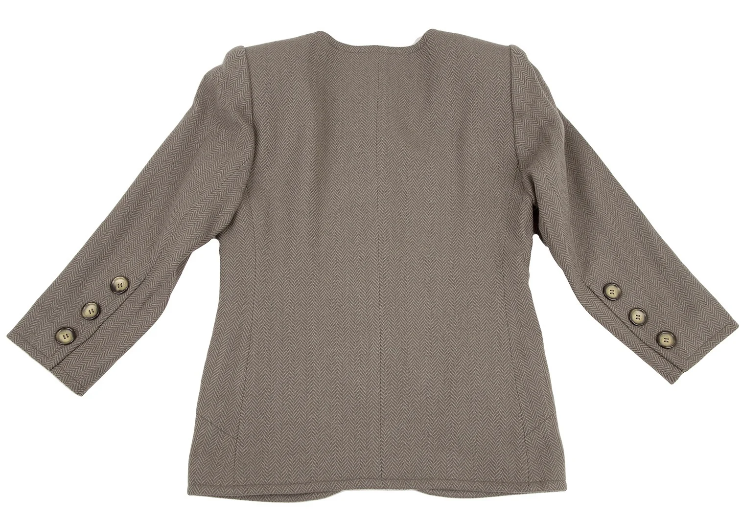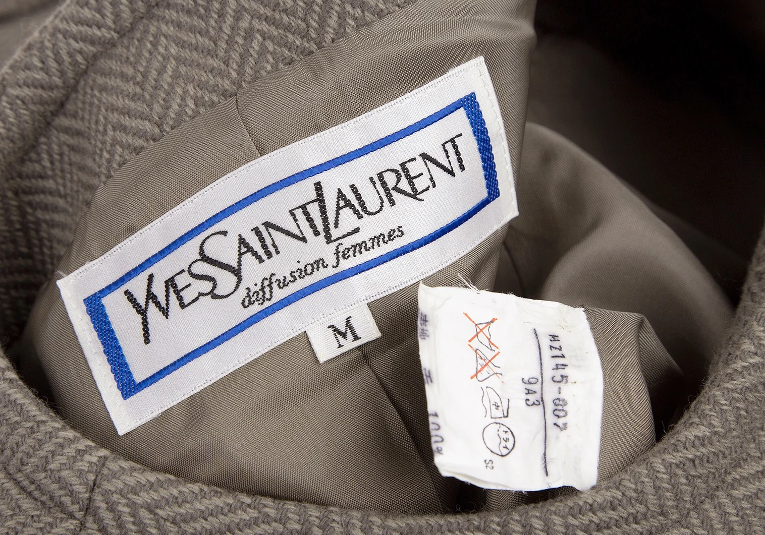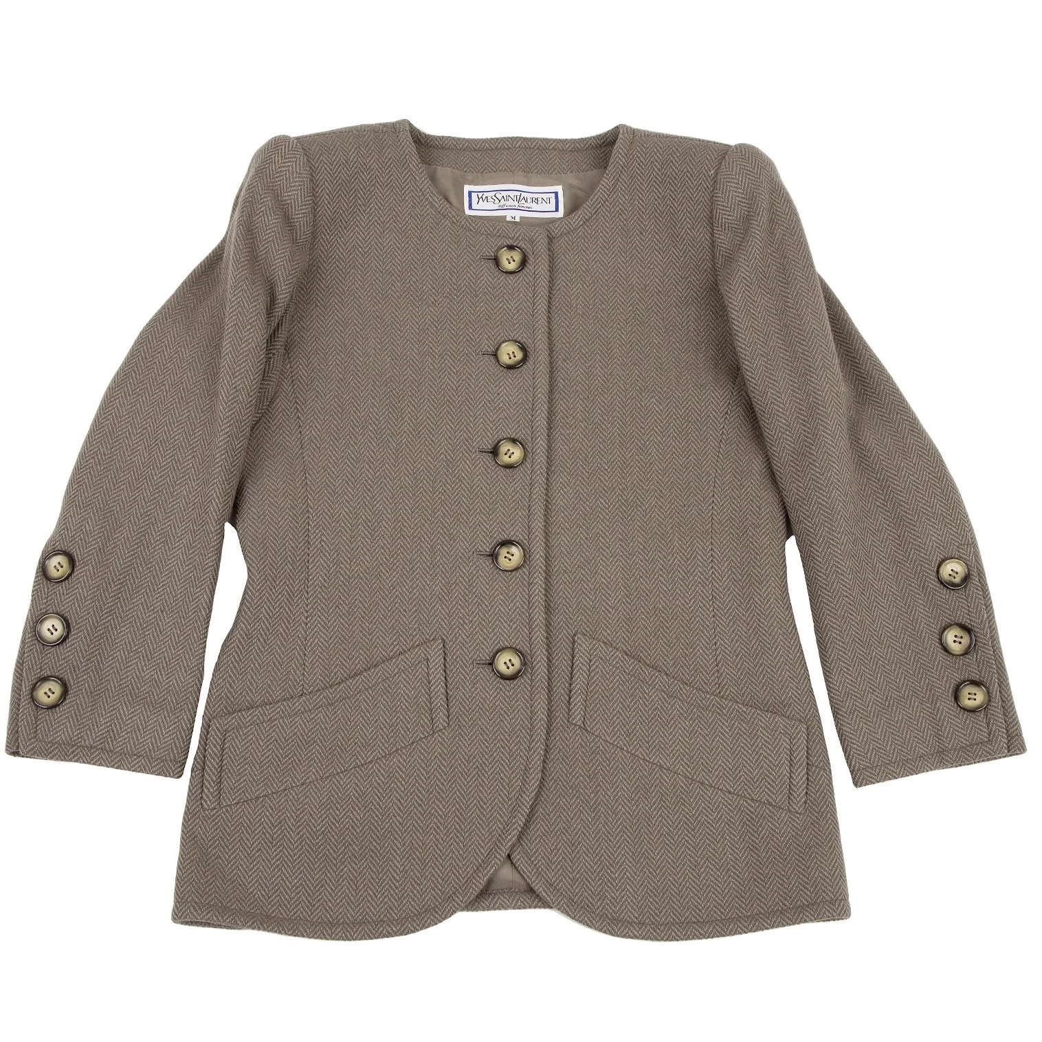 イヴサンローランYves Saint Laurent ウールヘリンボーンノーカラージャケット モスグレーM
