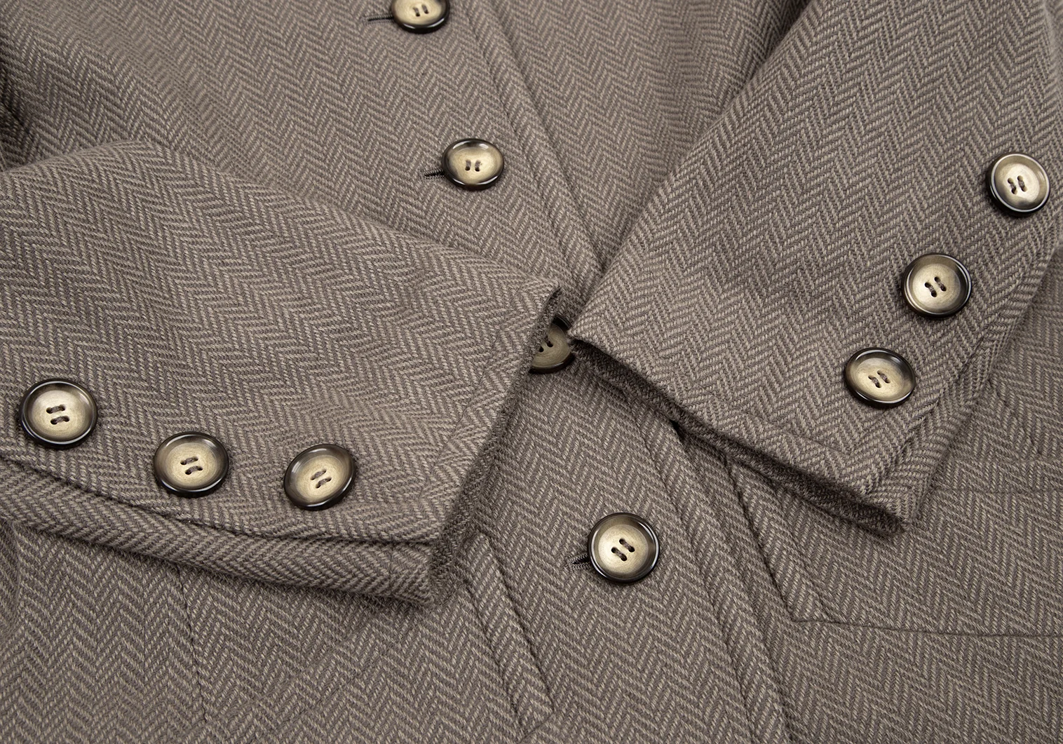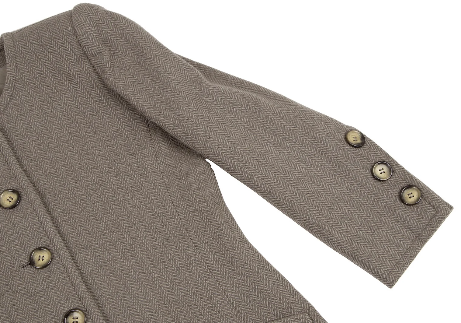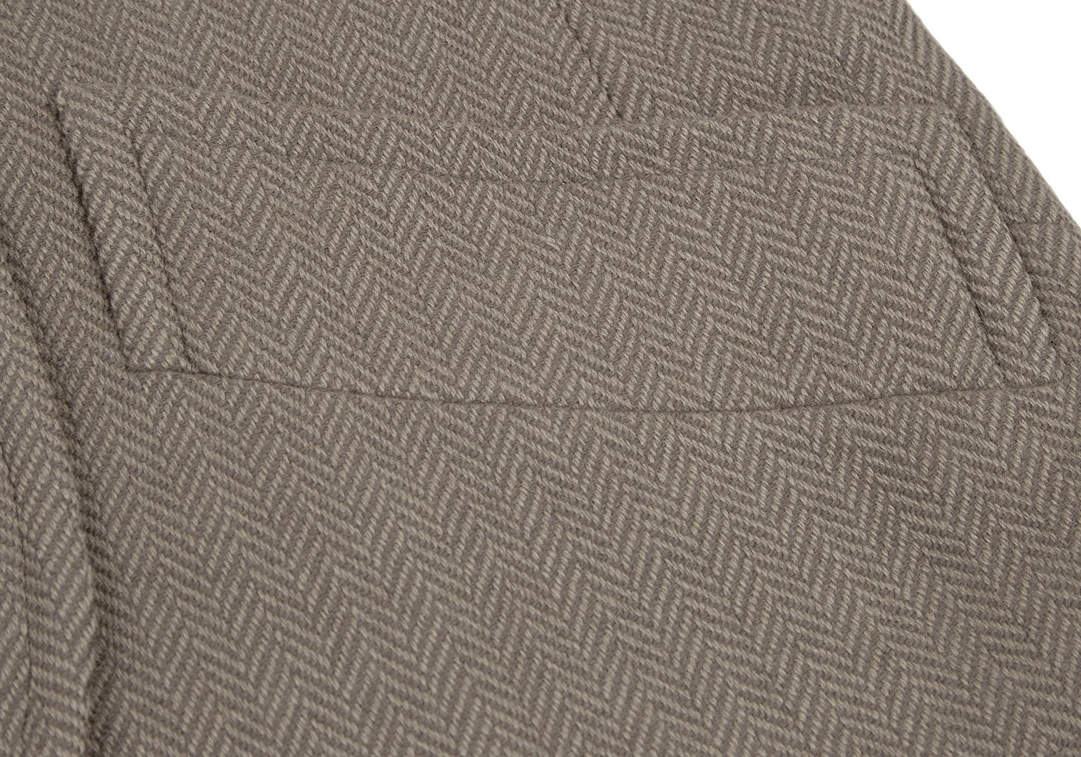 イヴサンローランYves Saint Laurent ウールヘリンボーンノーカラージャケット モスグレーM