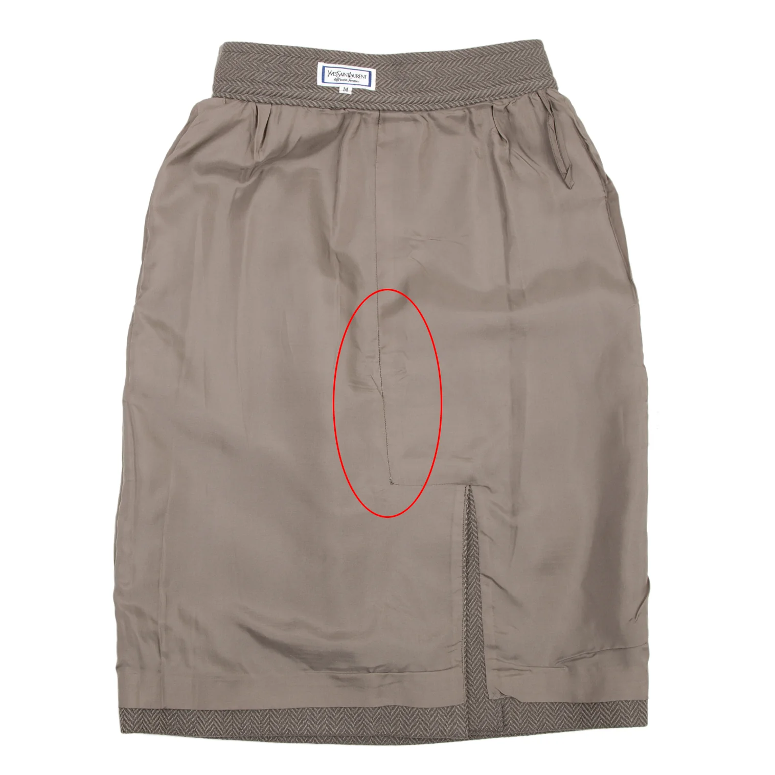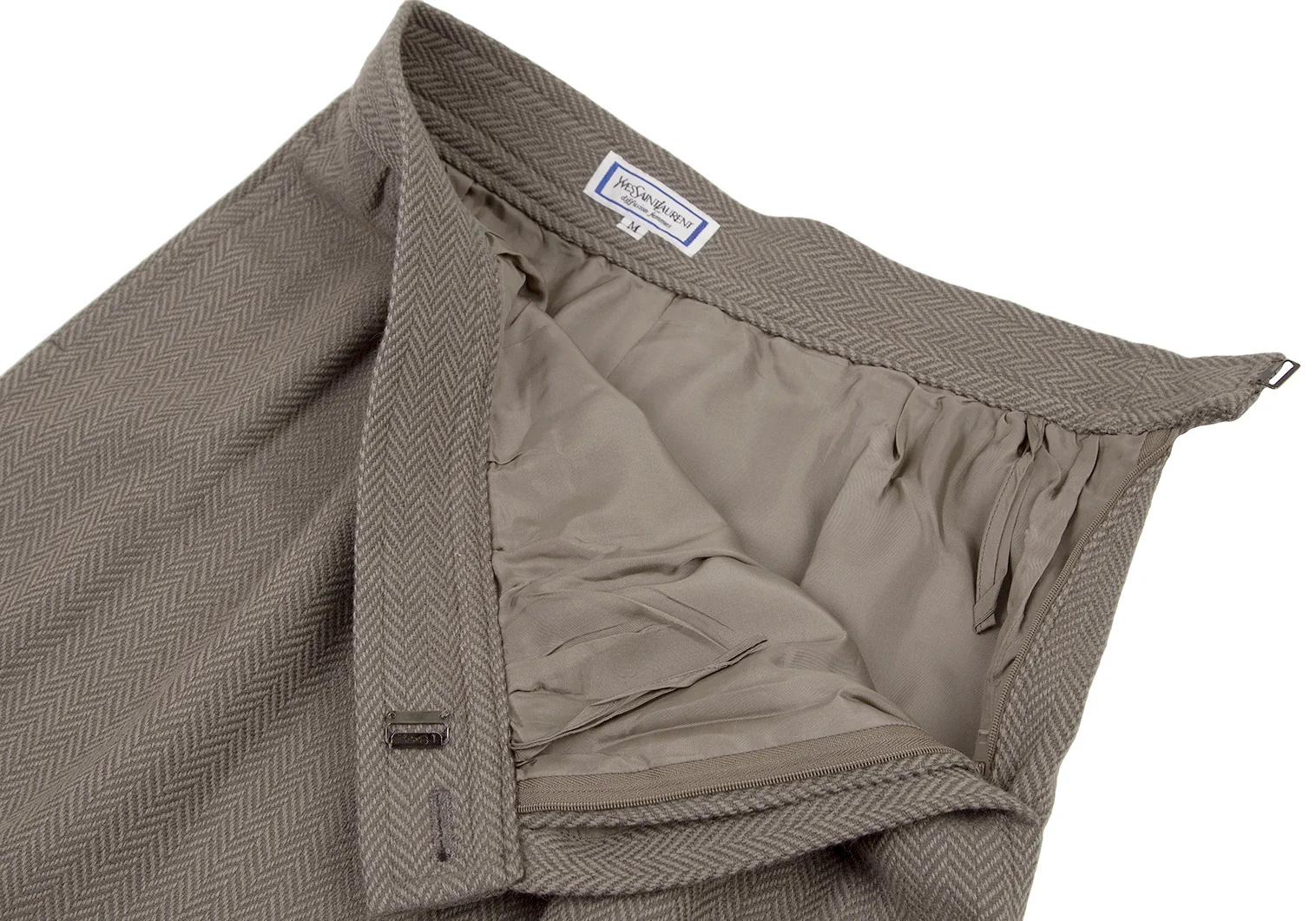 イヴサンローランYves Saint Laurent ウールヘリンボーンスカート モスグレーM