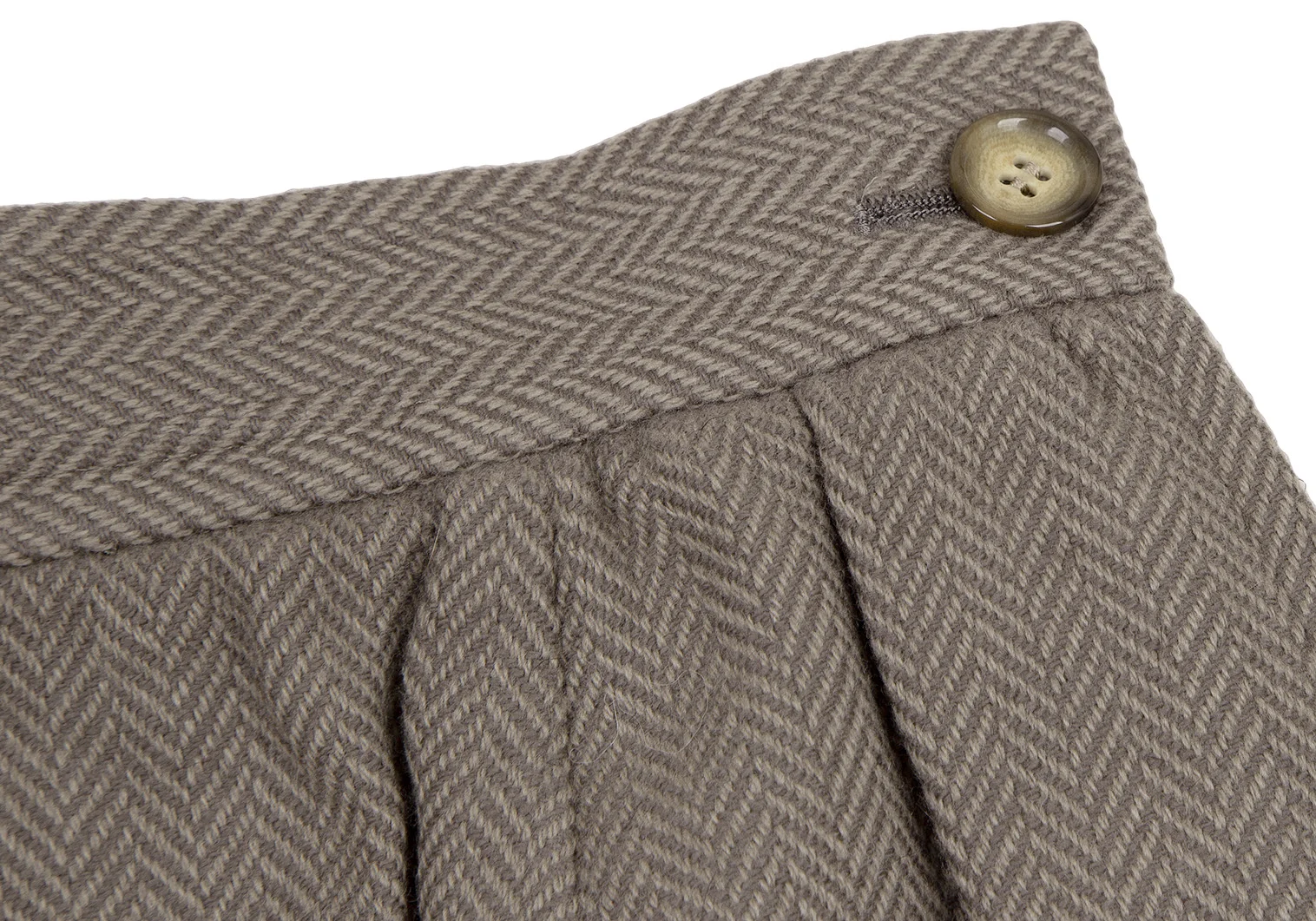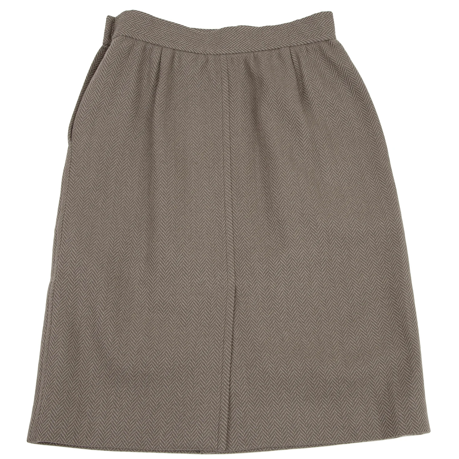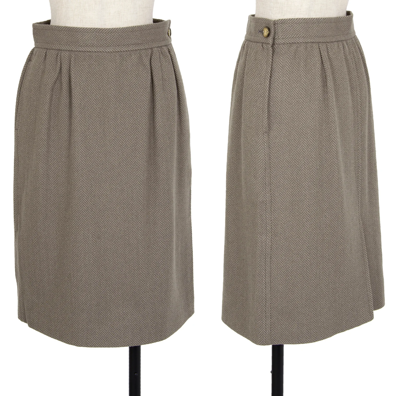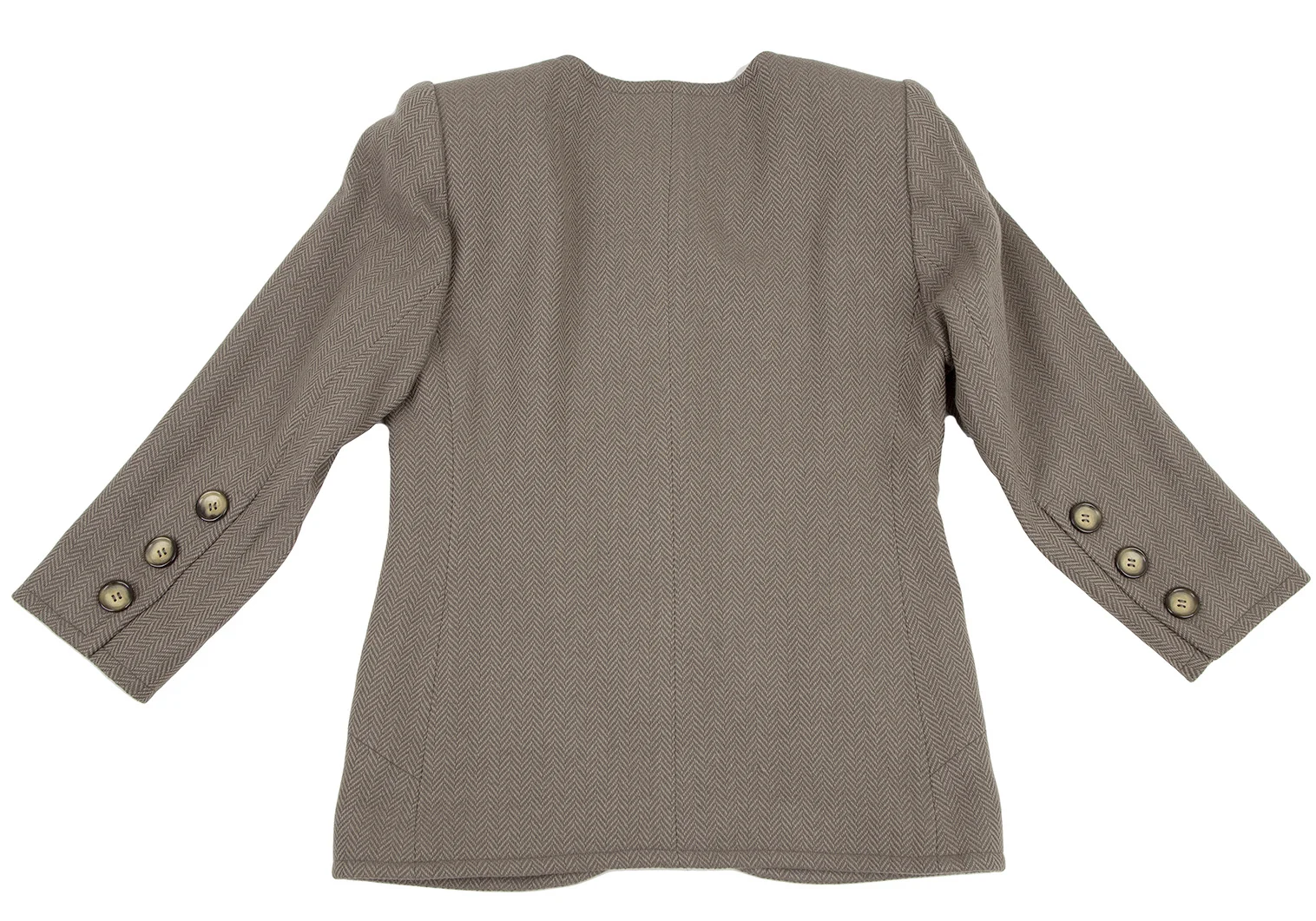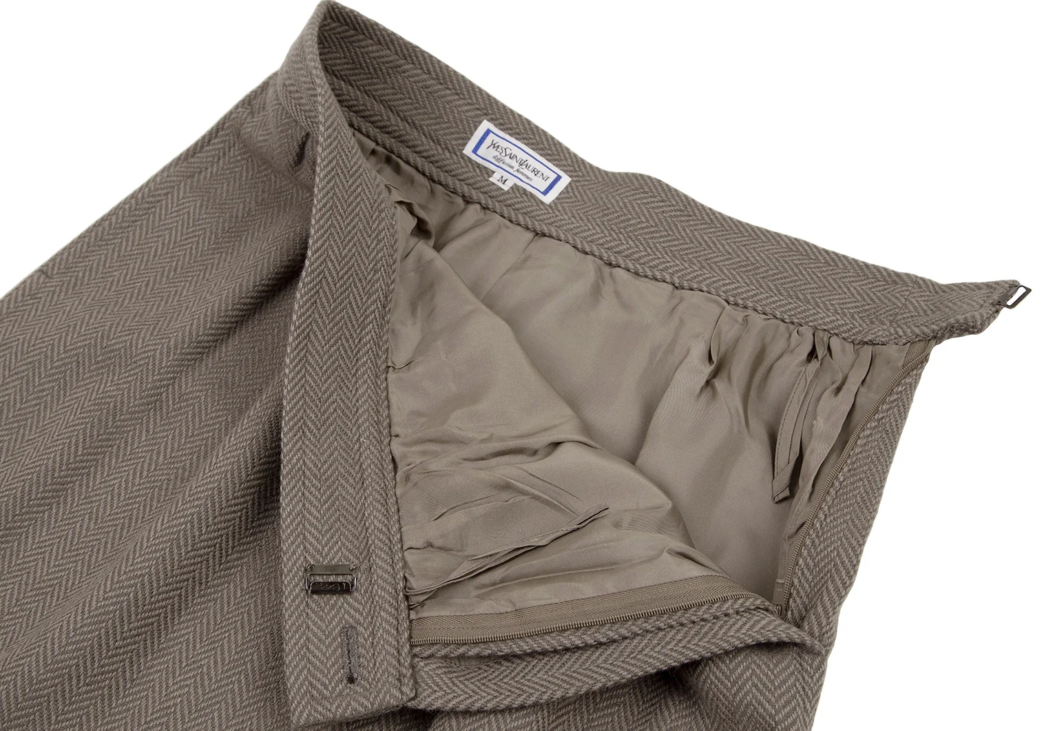 イヴサンローランYves Saint Laurent ウールヘリンボーンノーカラーセットアップスーツ モスグレーM