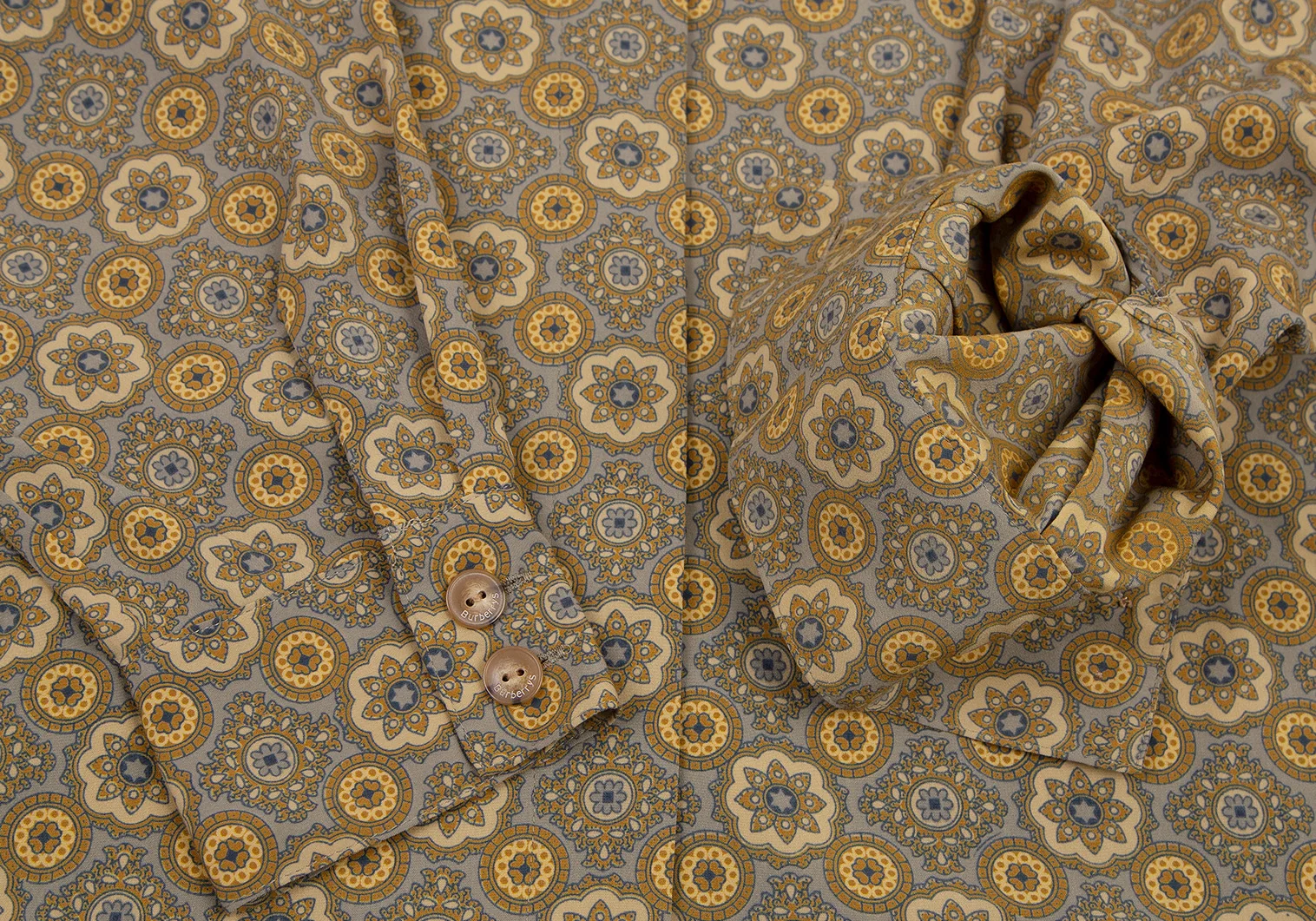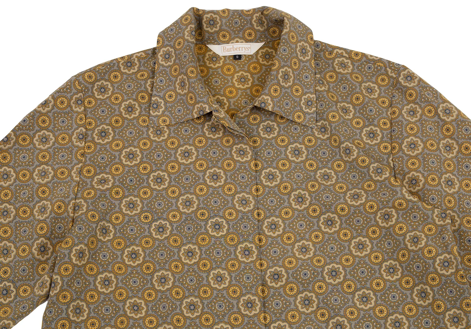 バーバリーズBurberrys' ダマスクプリントフライフロントシャツ からしグレー9