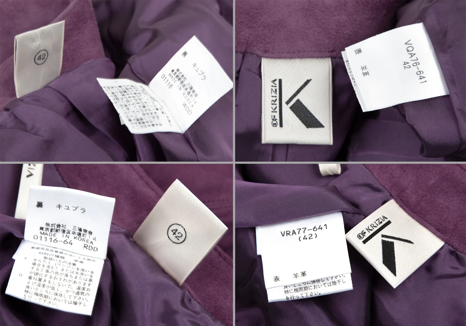 Kオブクリツィア K OF KRIZIA シープスウェードジップアップノーカラーセットアップスーツ 紫42