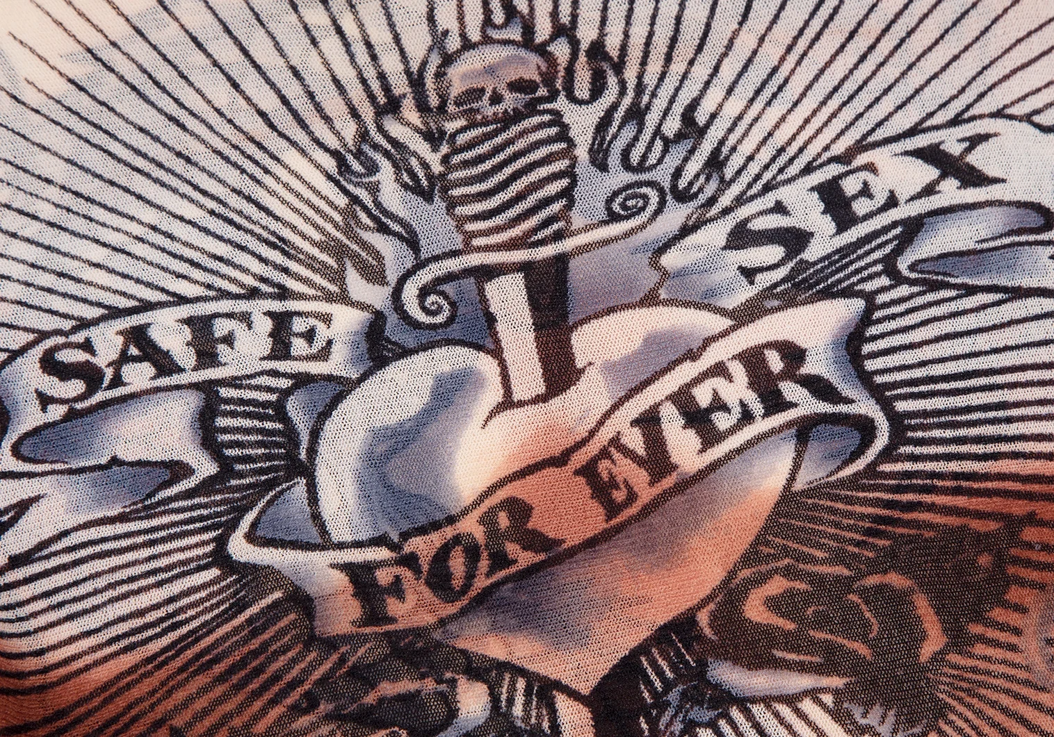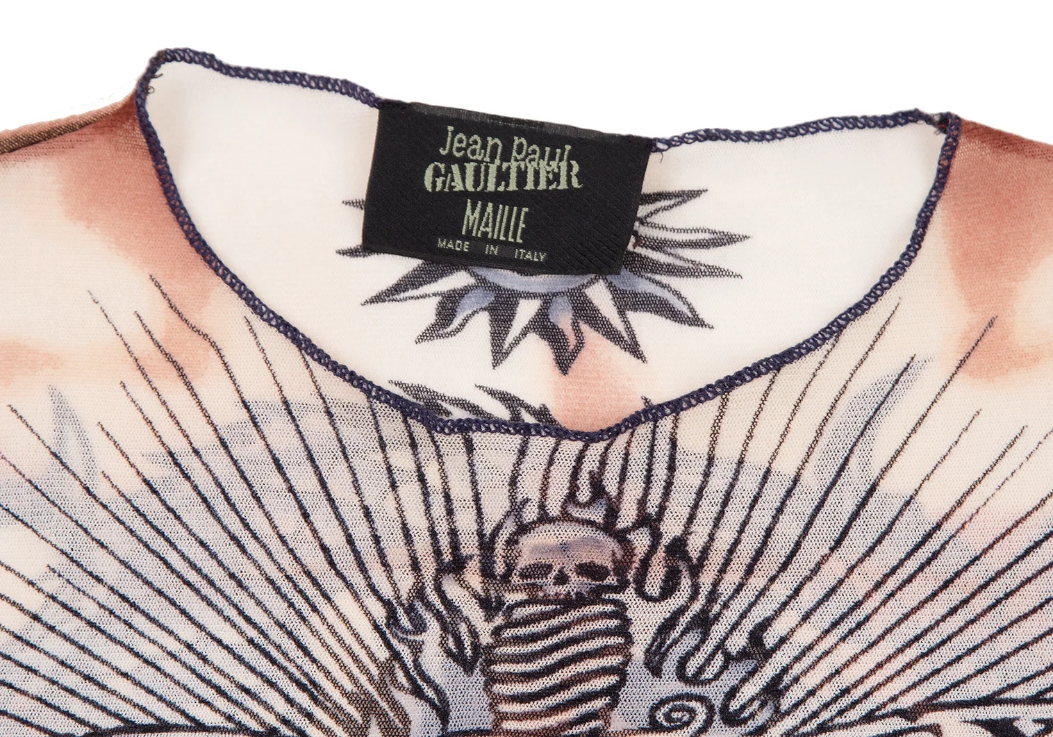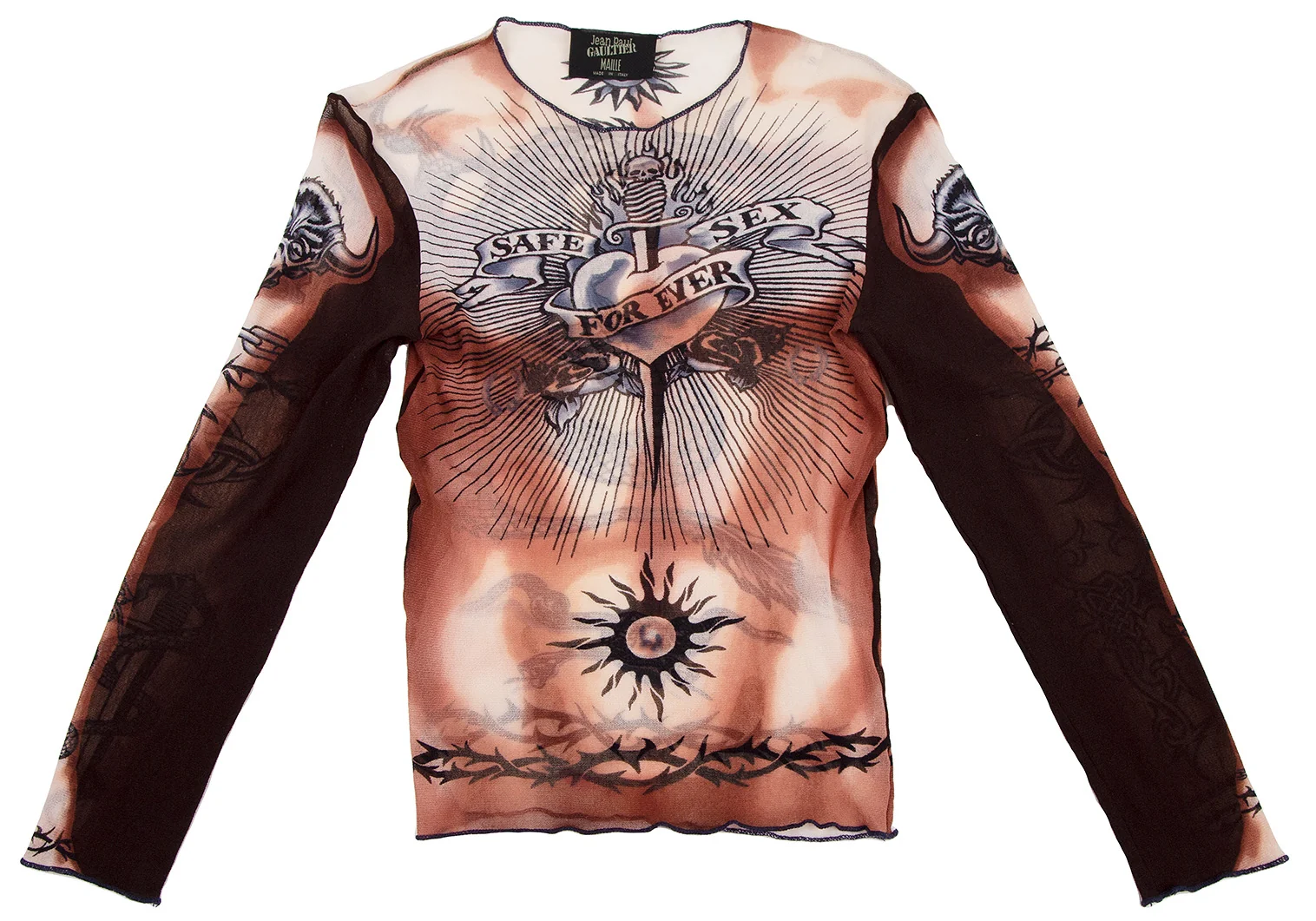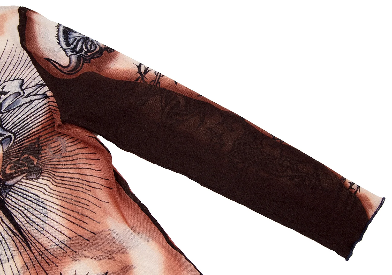 ジャンポールゴルチエ マイユJean Paul GAULTIER MAILLE タトゥープリントパワーネットカットソー 茶クリーム他S