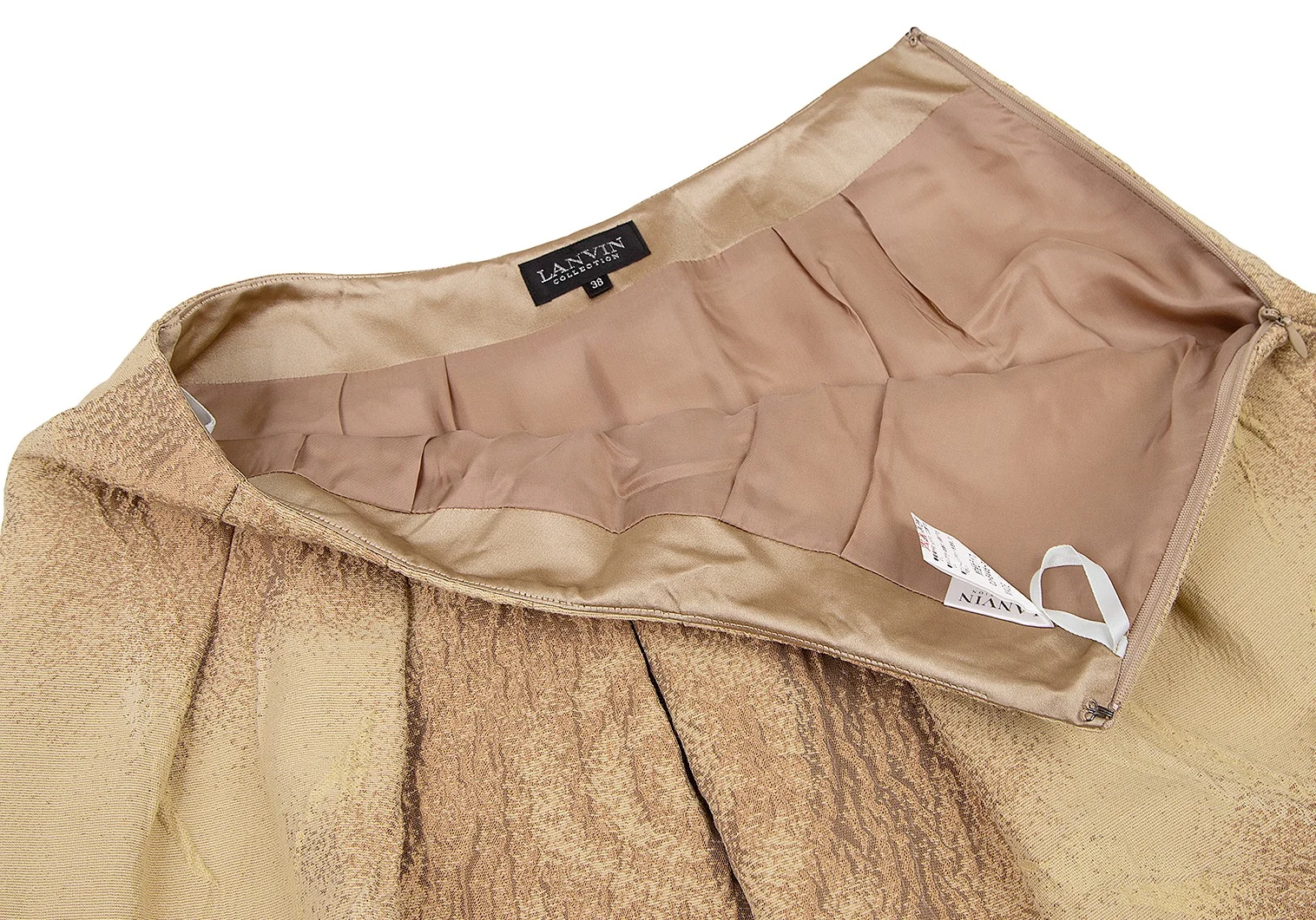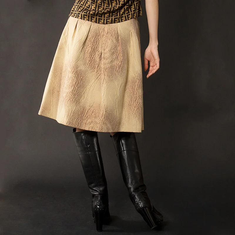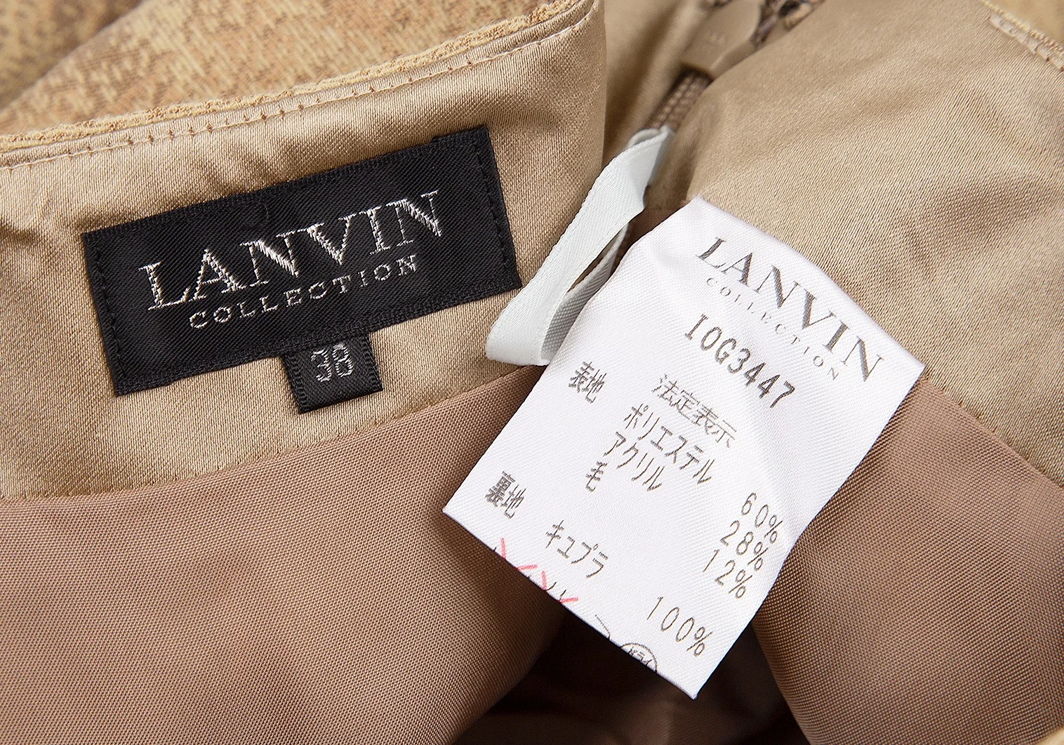 ランバンコレクションLANVIN collection ウール混ローズジャガード台形スカート ベージュ茶38
